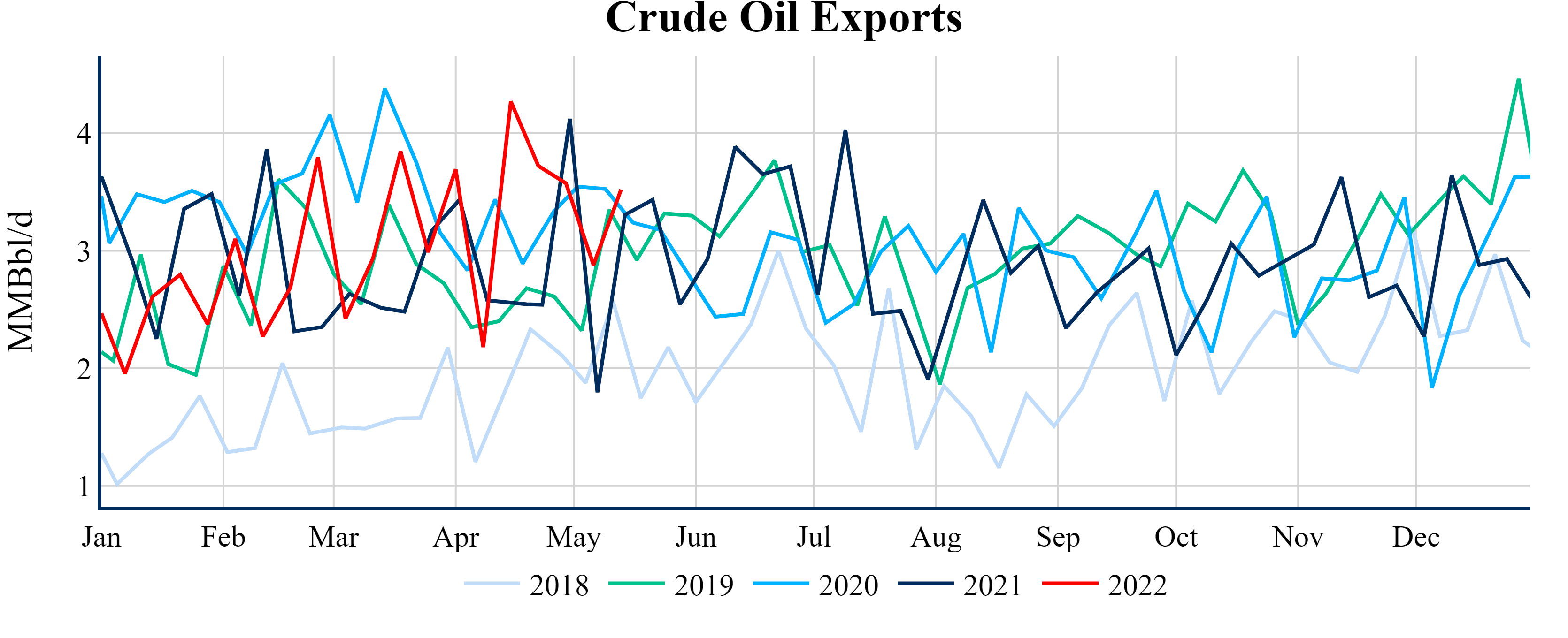 Inventories for the U.S. are now at a deficit of 65.00 MMBbls (-13.4%) to last year, and a deficit of 67.70 MMBbls (-13.9%) to the five-year average.