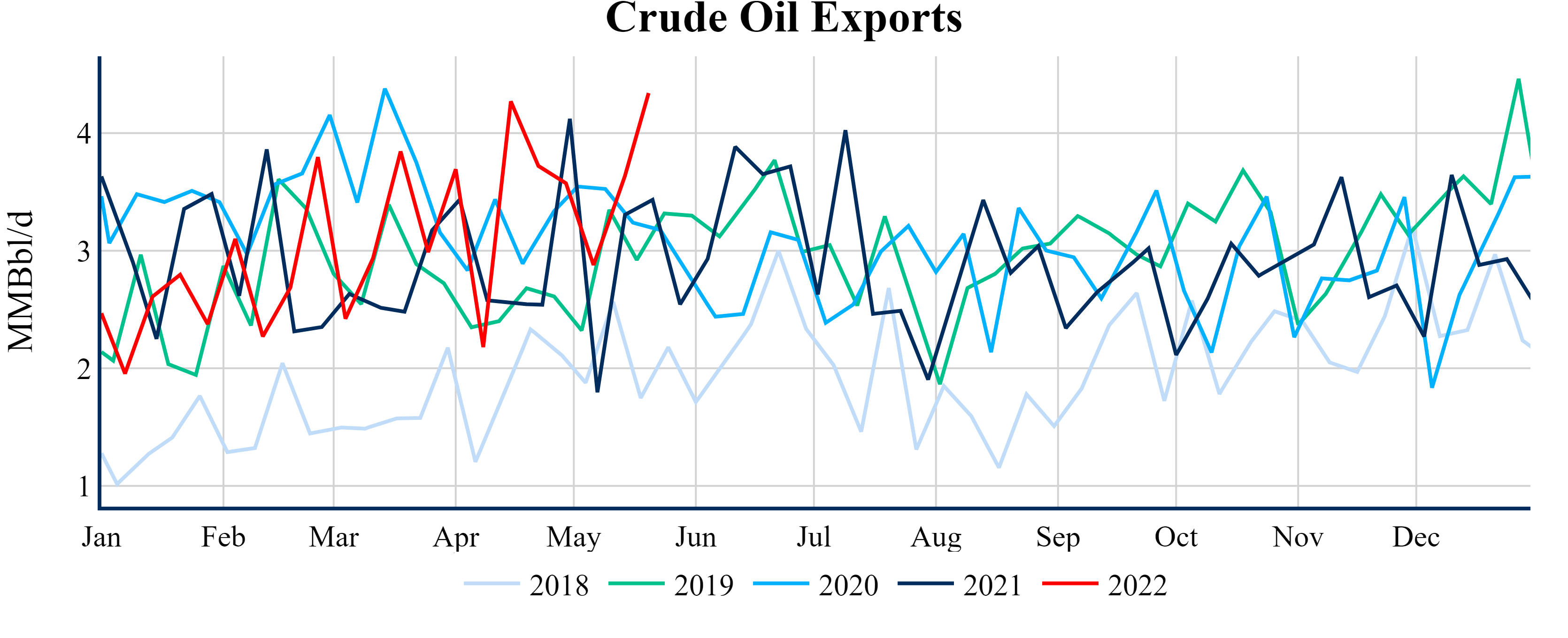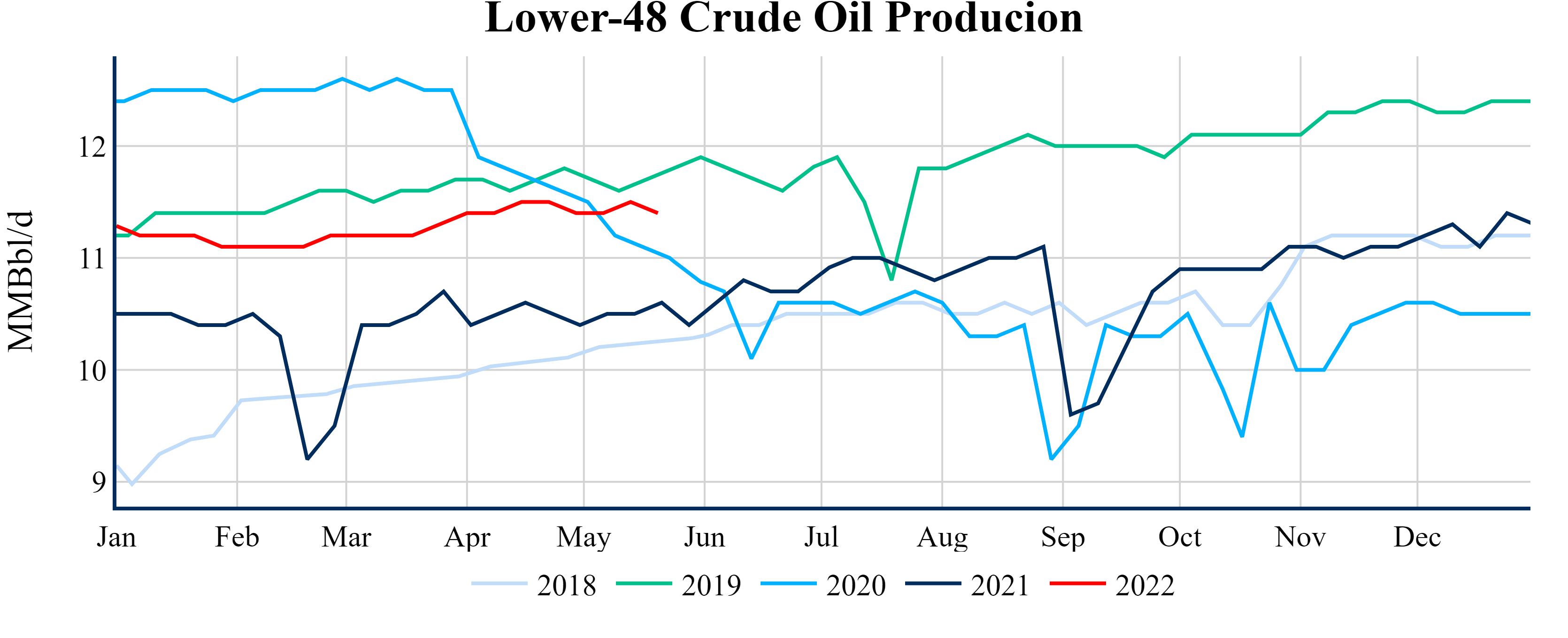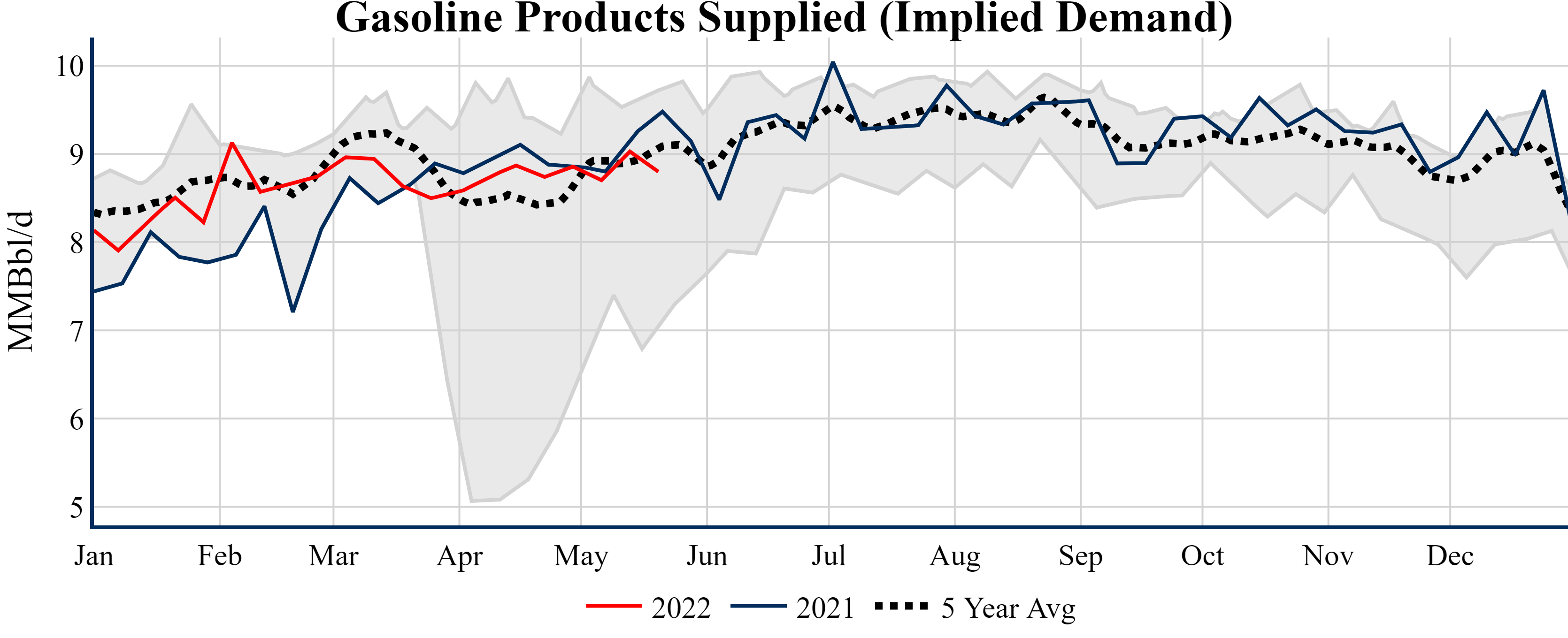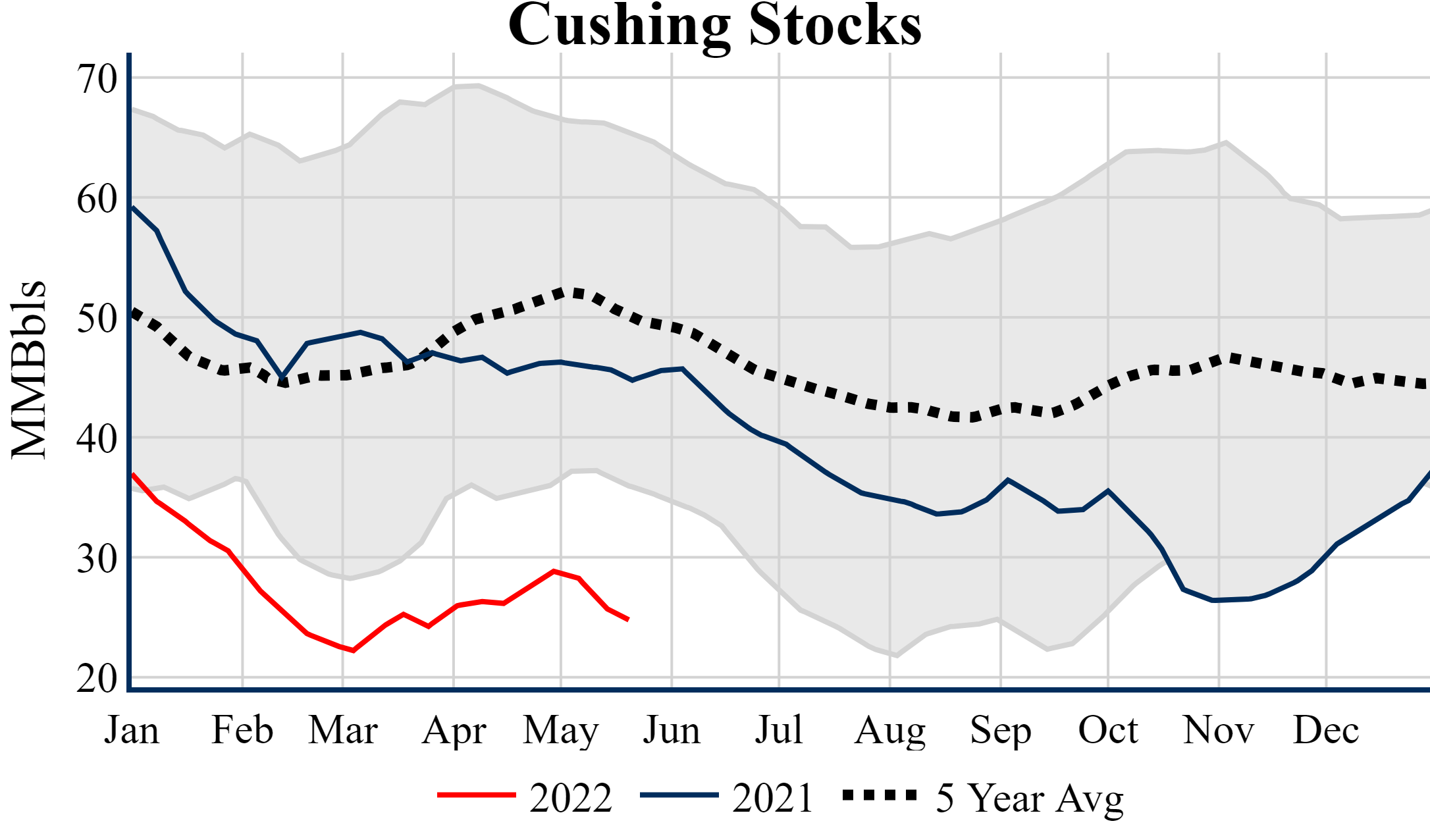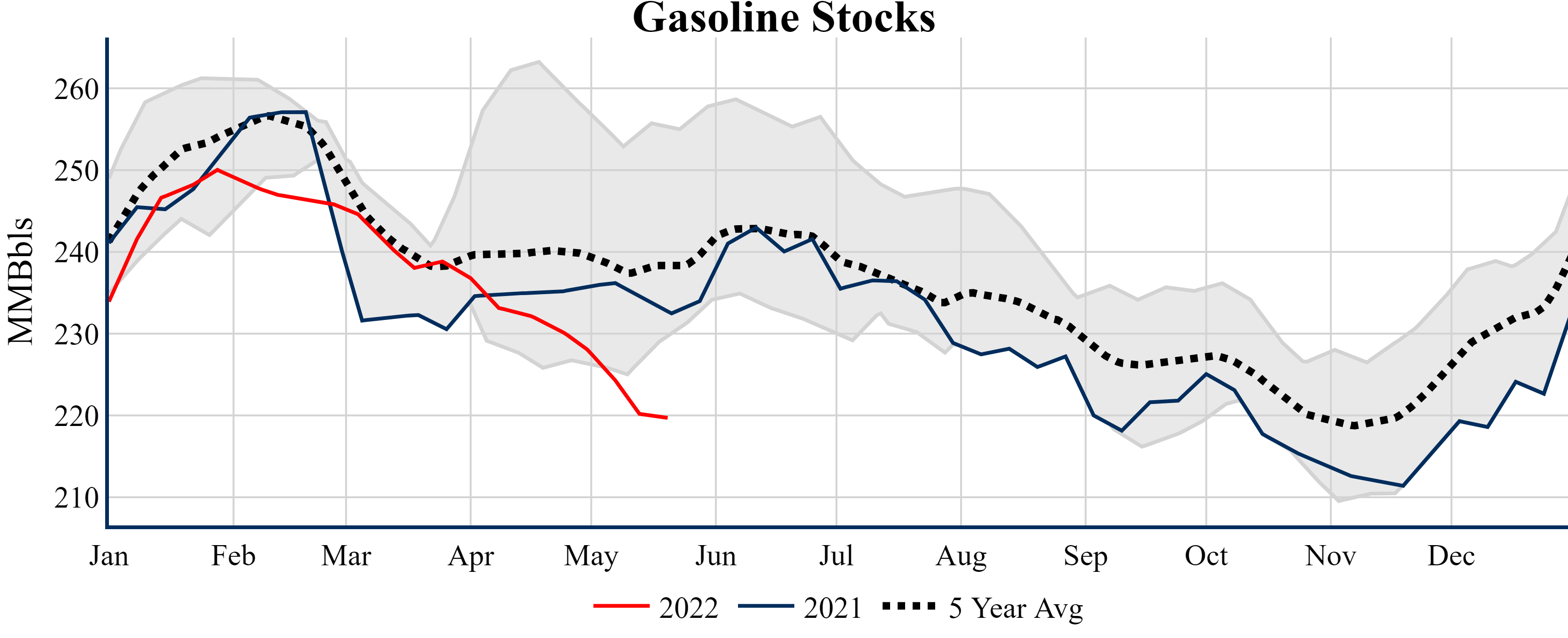 Inventories for the U.S. are now at a deficit of 64.80 MMBbls (-13.4%) to last year, and a deficit of 69.20 MMBbls (-14.1%) to the five-year average.
