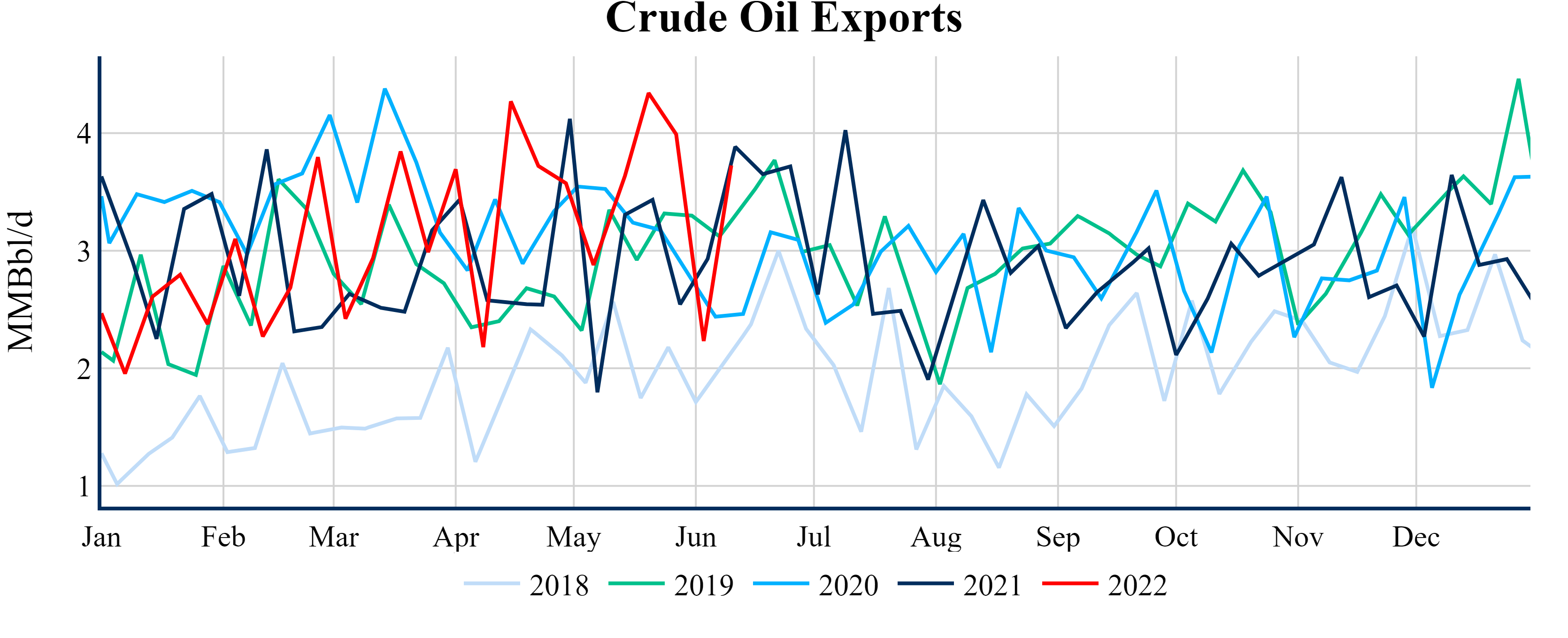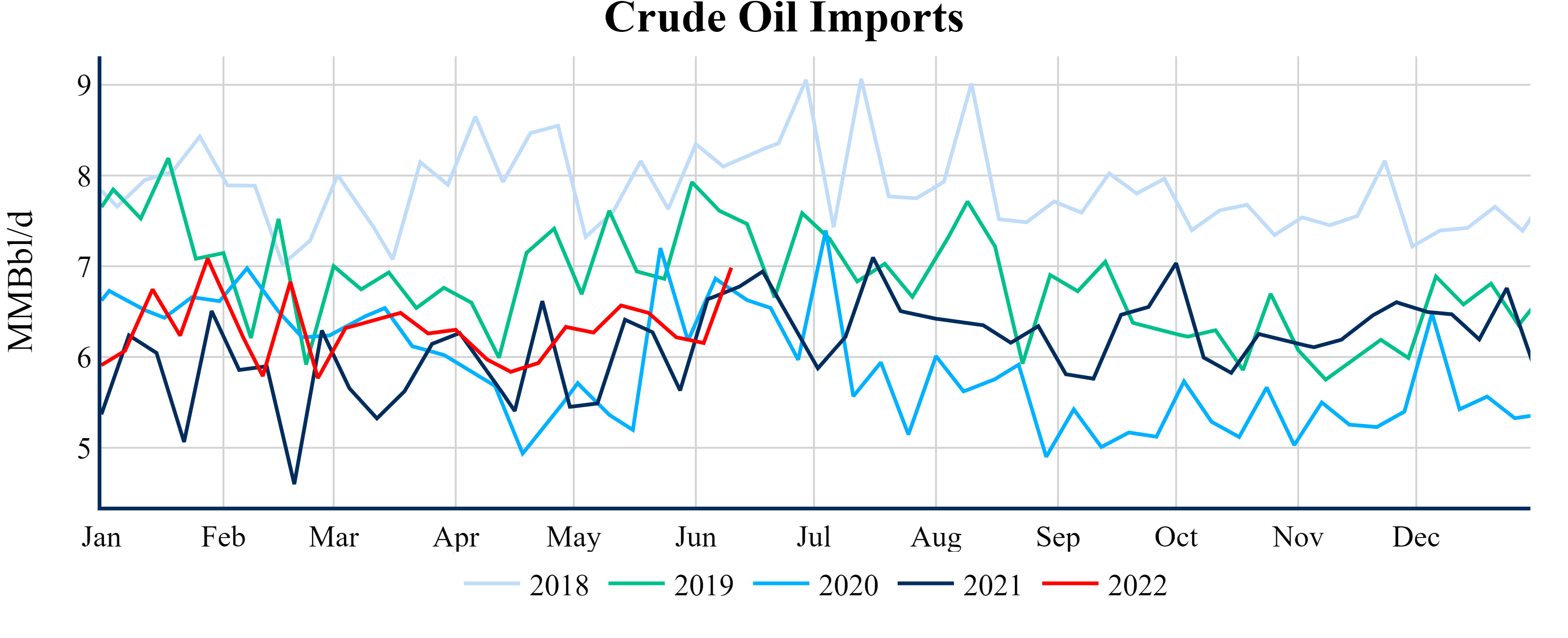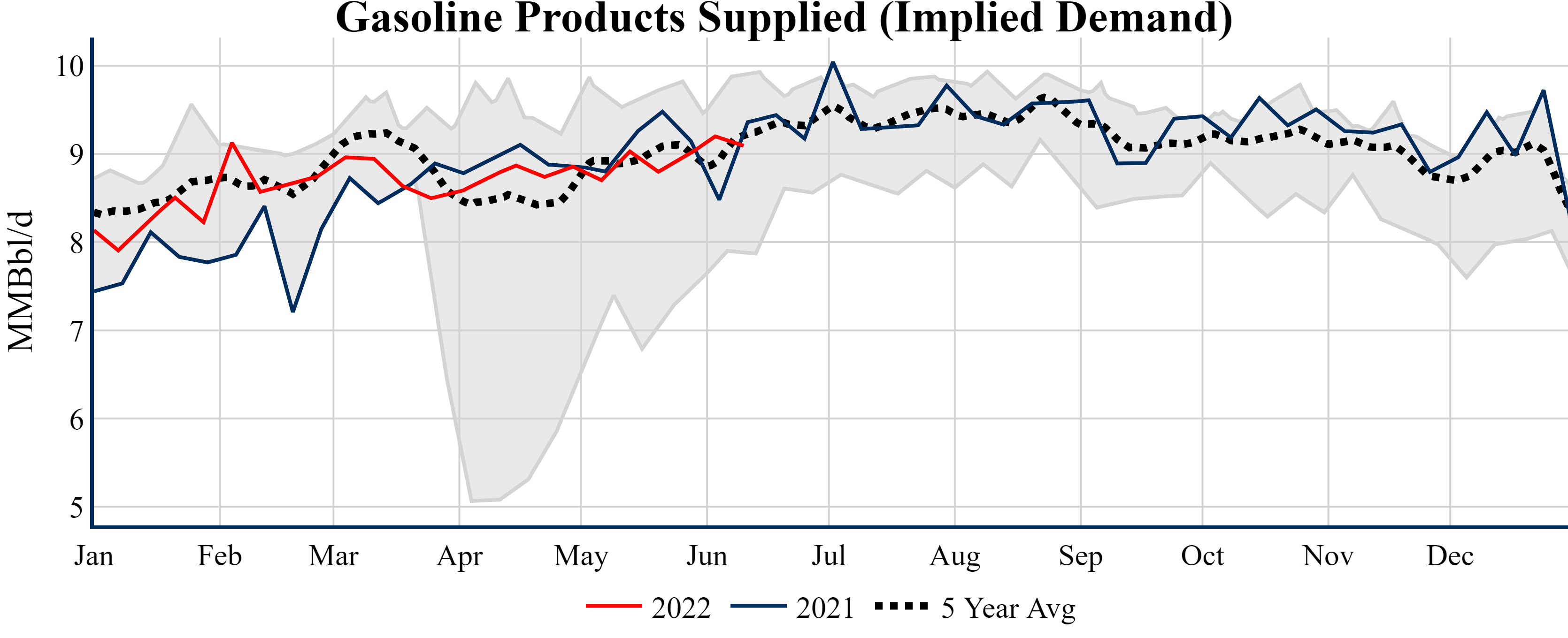 Inventories for the U.S. are now at a deficit of 49.00 MMBbls (-10.5%) to last year, and a deficit of 67.80 MMBbls (-13.9%) to the five-year average.