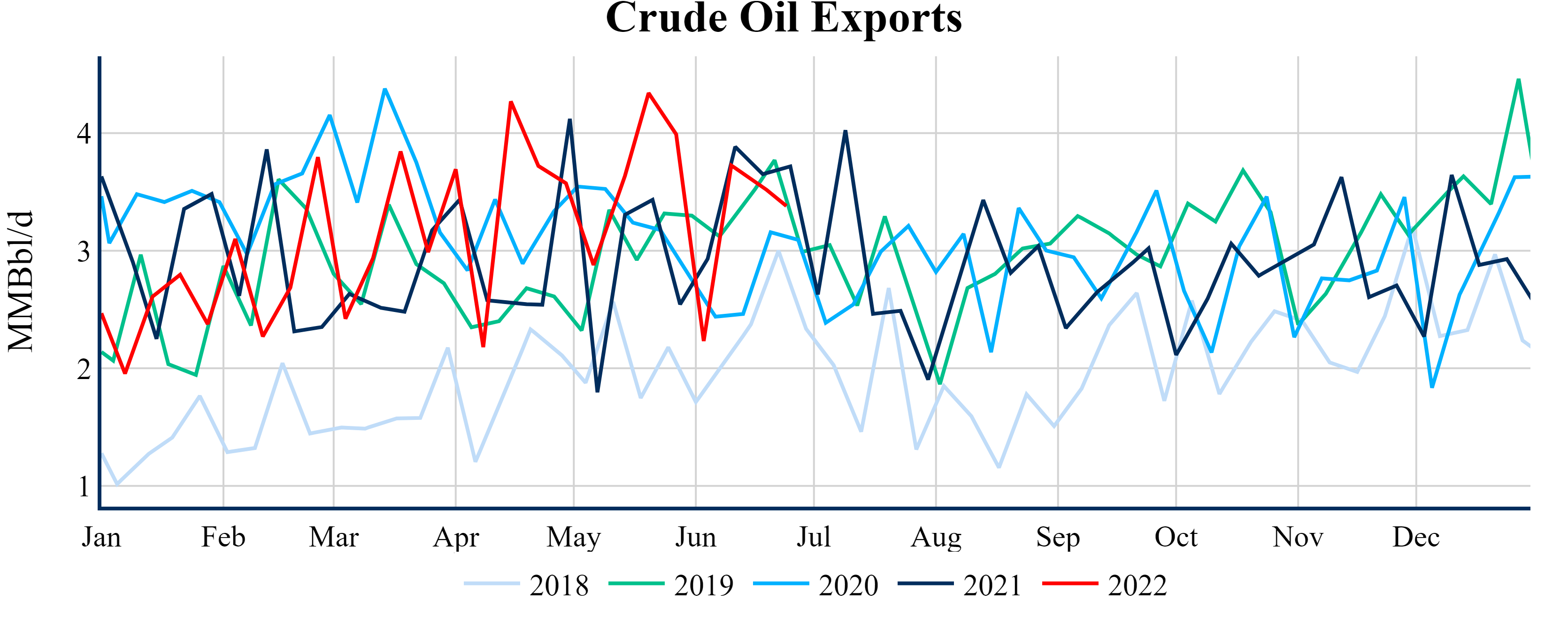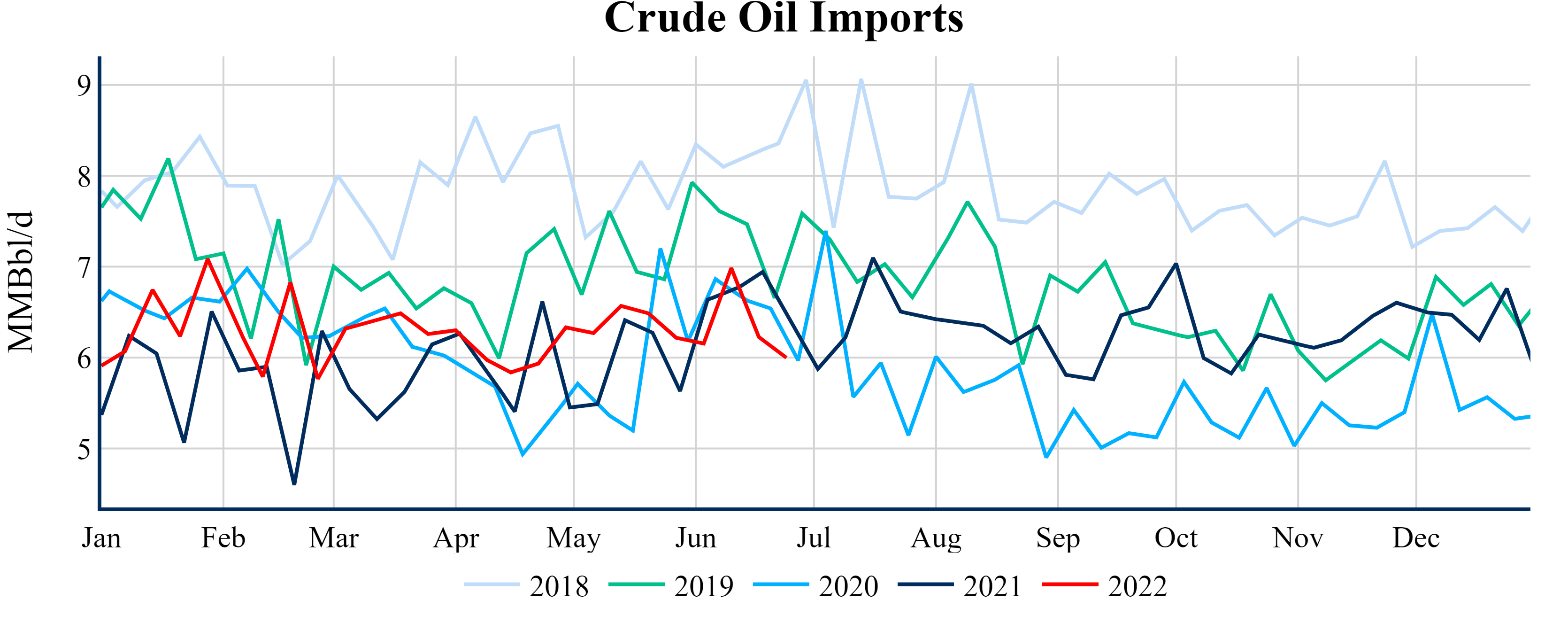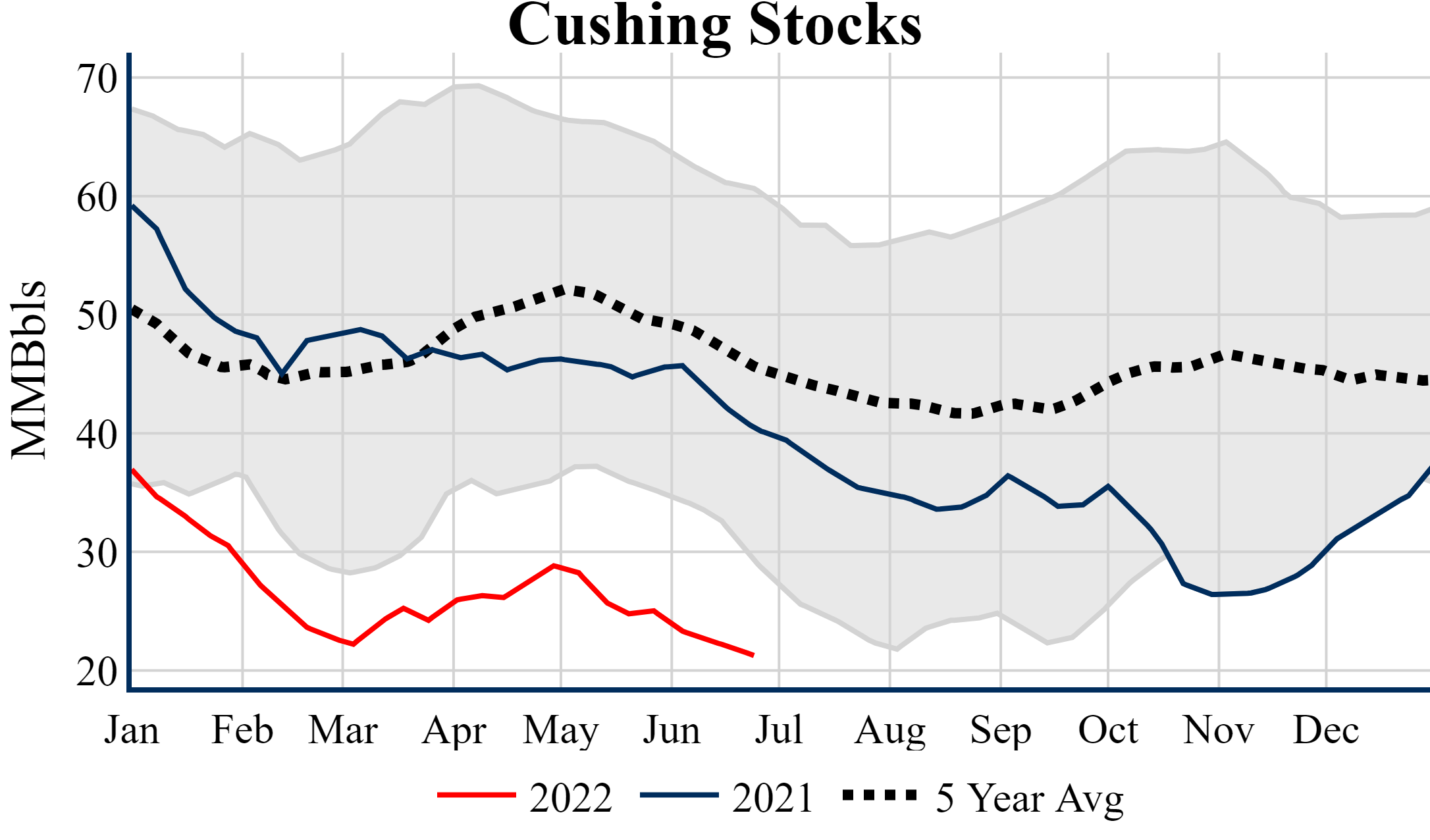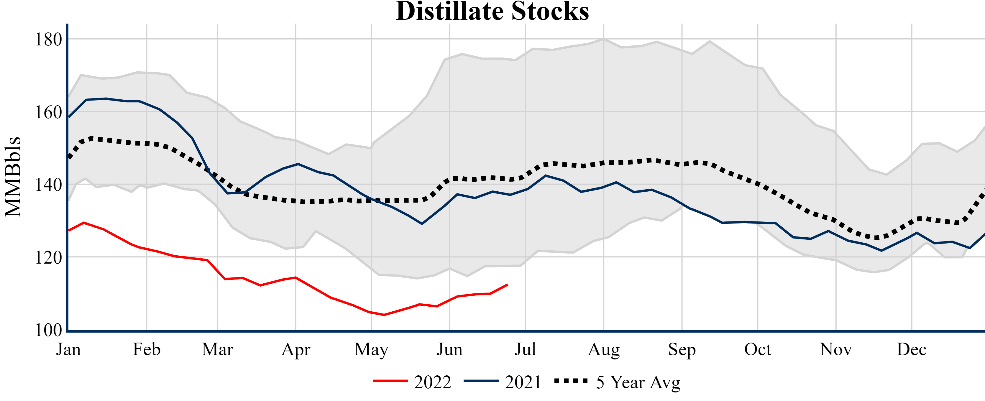 Inventories for the U.S. are now at a deficit of 37.70 MMBbls (-8.3%) to last year, and a deficit of 61.30 MMBbls (-12.9%) to the five-year average.