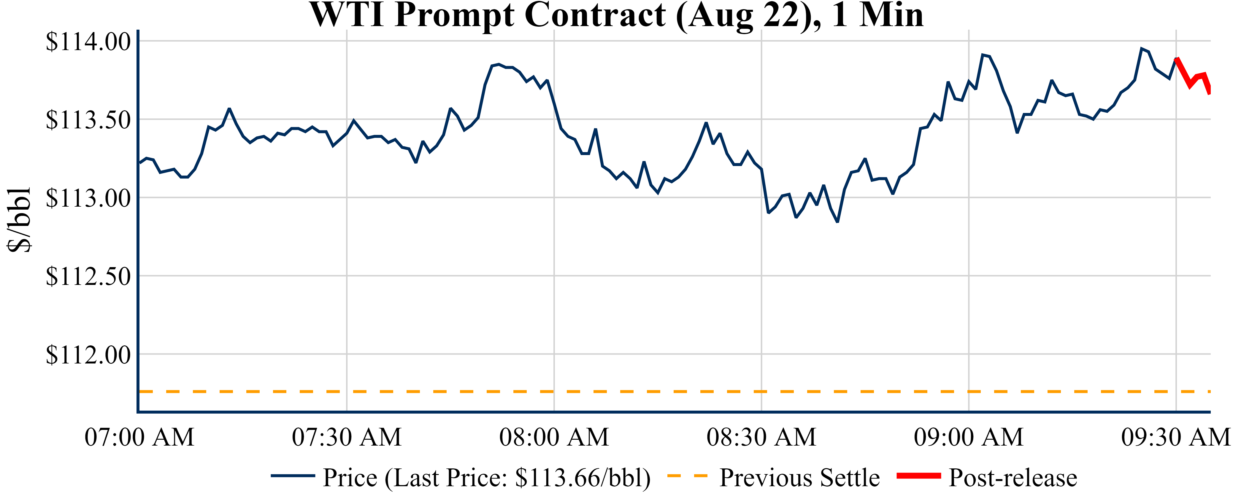 Prices were down in the five minutes following the announcement, to $113.66 from $113.89 just before 09:30 AM.