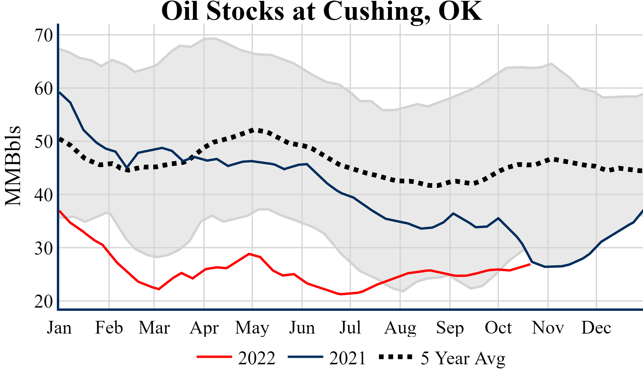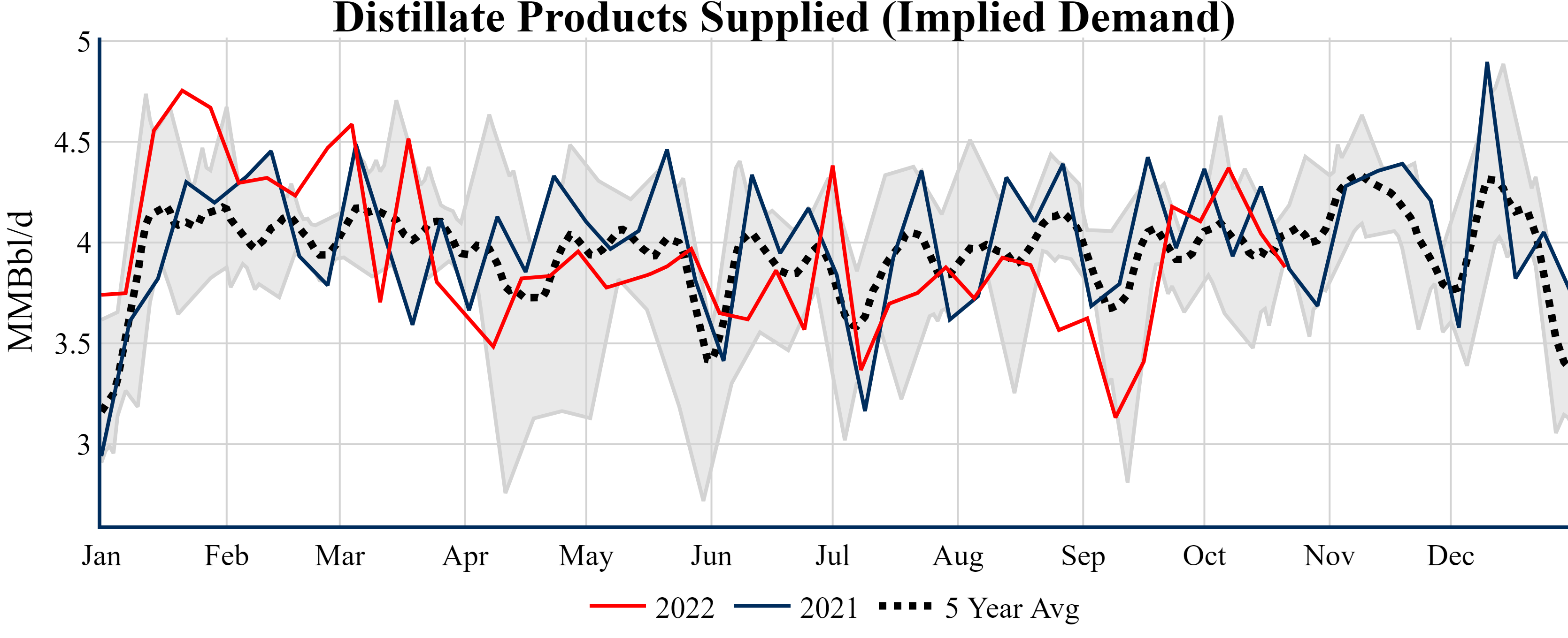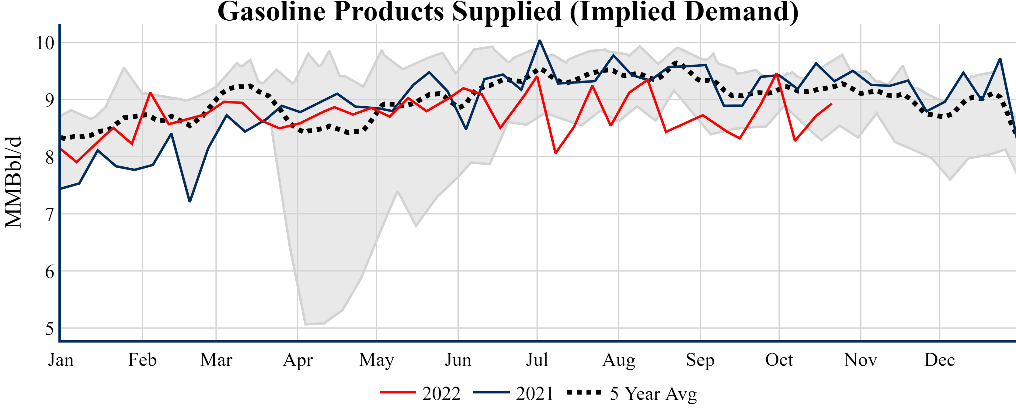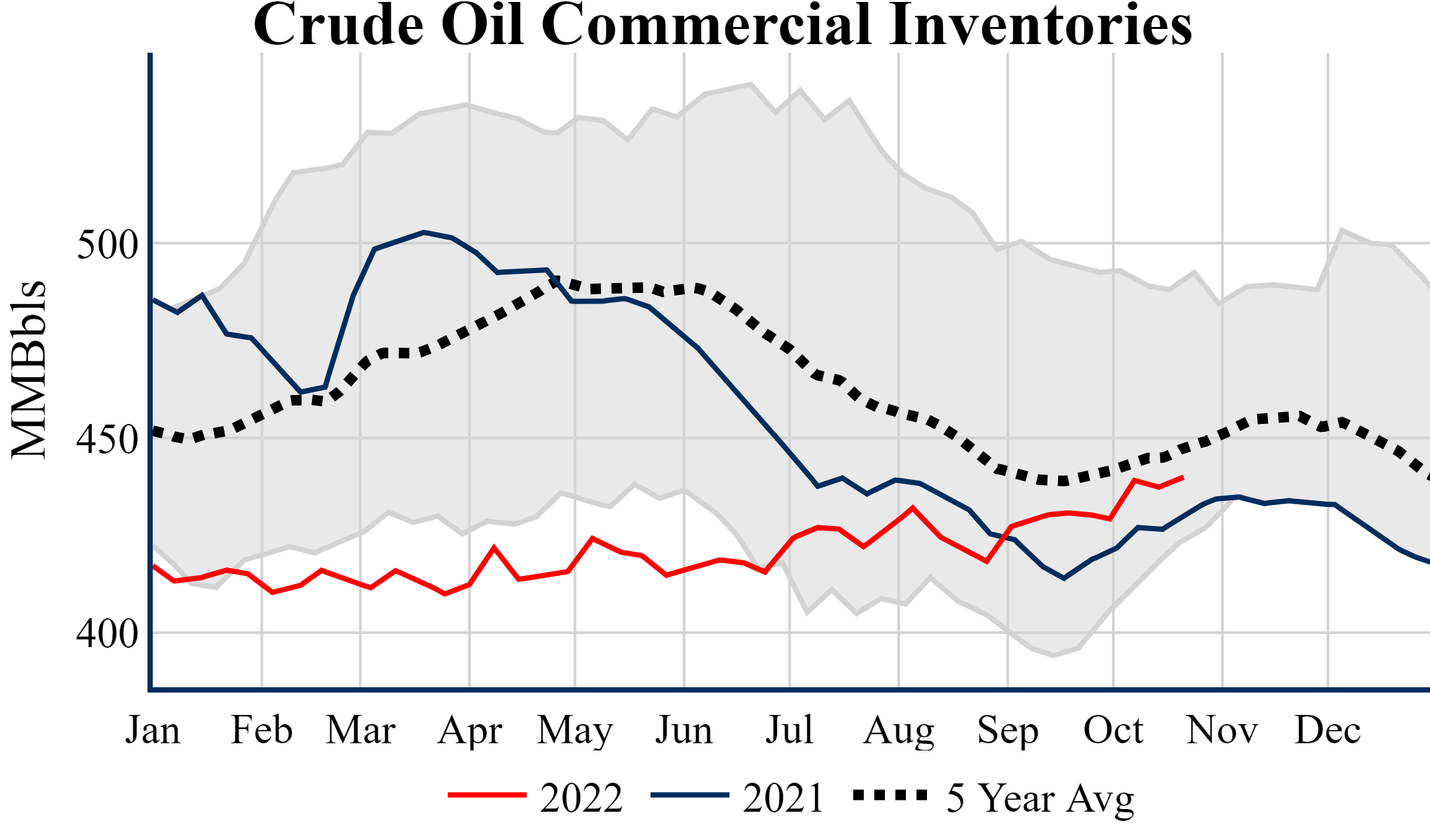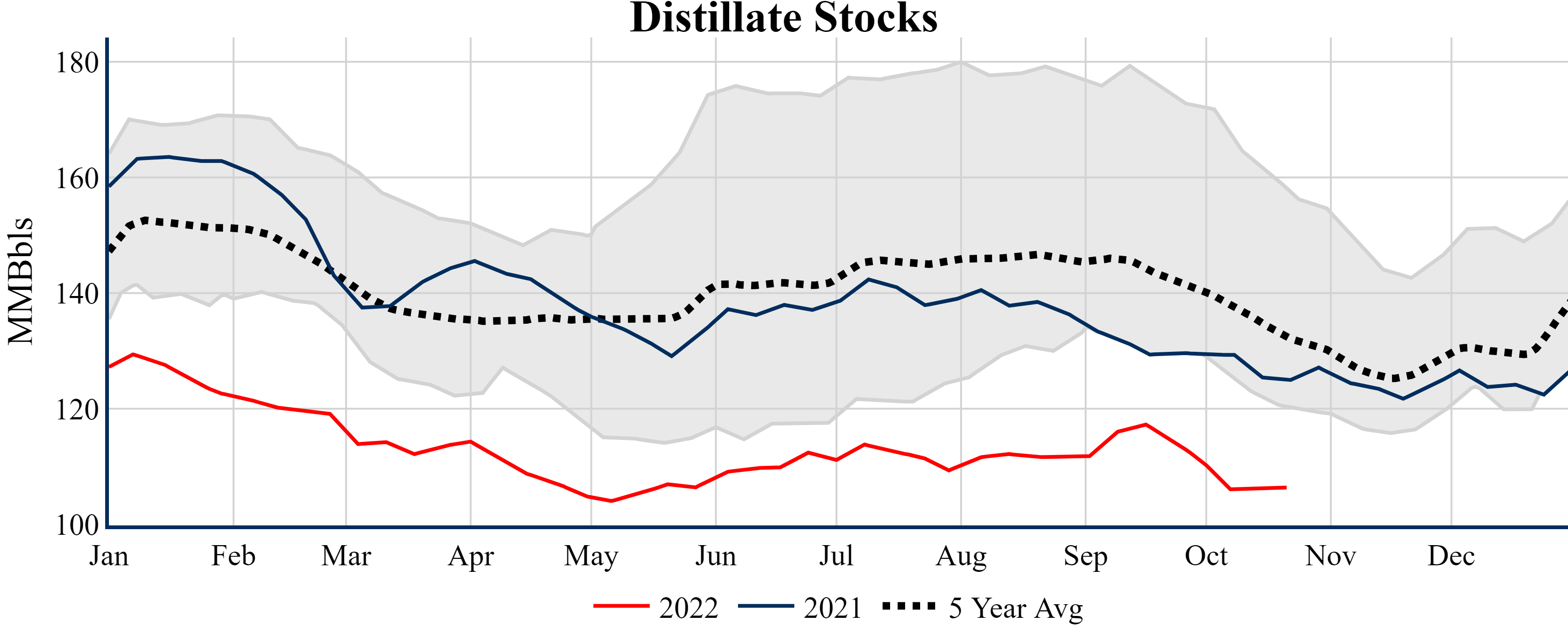 Inventories for the U.S. are now at a surplus of 9.70 MMBbls (2.3%) to last year, and a deficit of 7.50 MMBbls (-1.7%) to the five-year average.