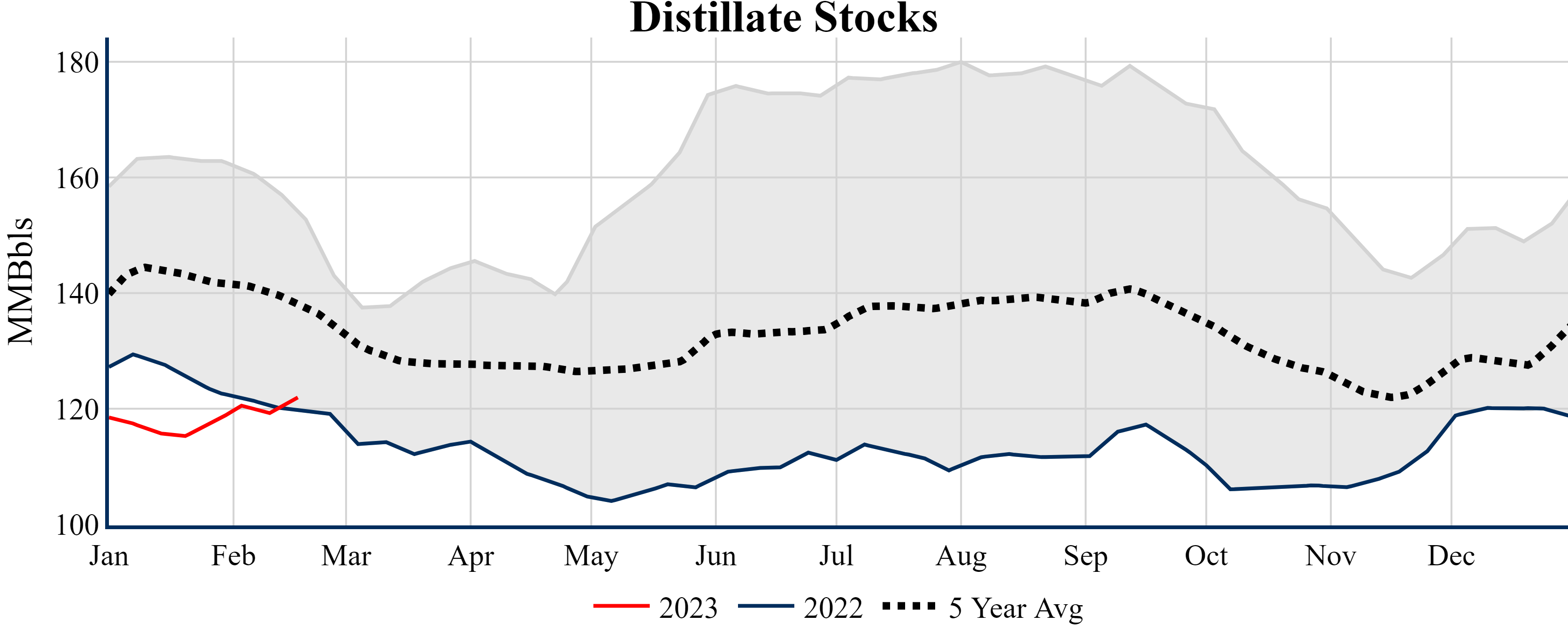 Inventories for the U.S. are now at a surplus of 63.70 MMBbls (15.3%) to last year, and a surplus of 40.20 MMBbls (9.2%) to the five-year average.