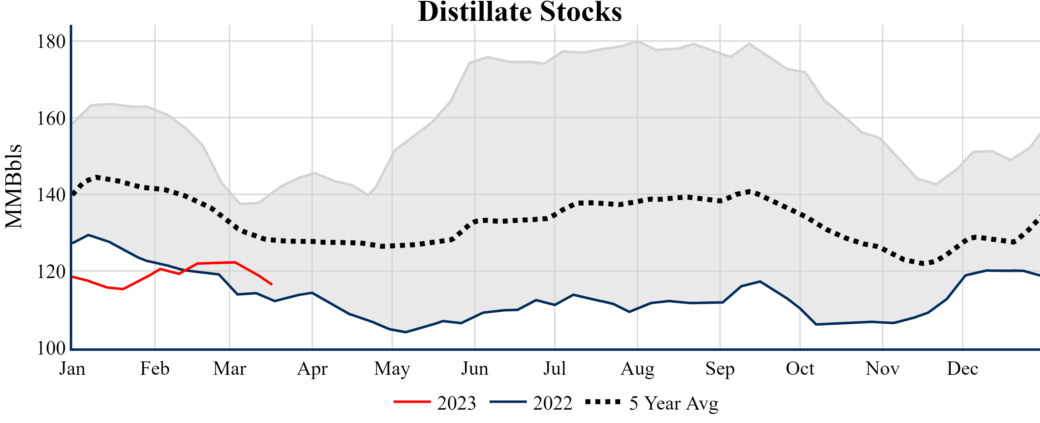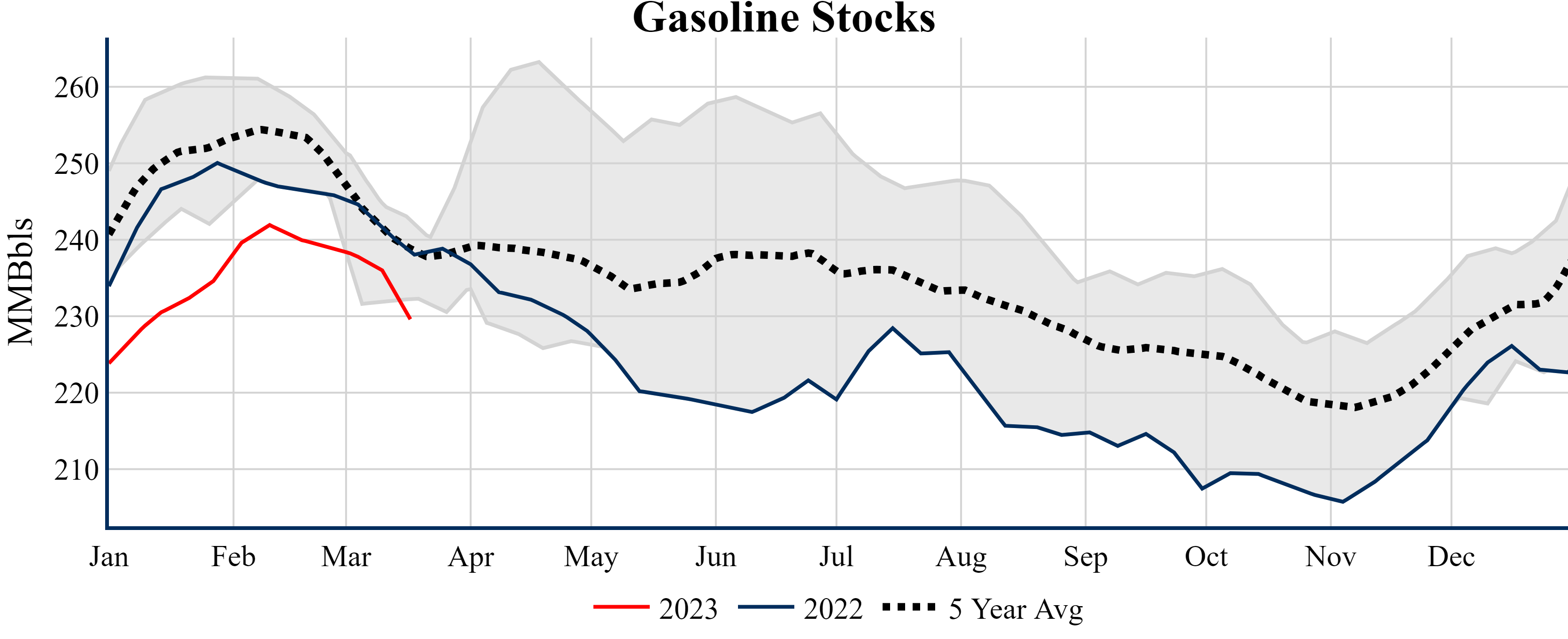 Inventories for the U.S. are now at a surplus of 67.40 MMBbls (16.3%) to last year, and a surplus of 33.30 MMBbls (7.4%) to the five-year average.