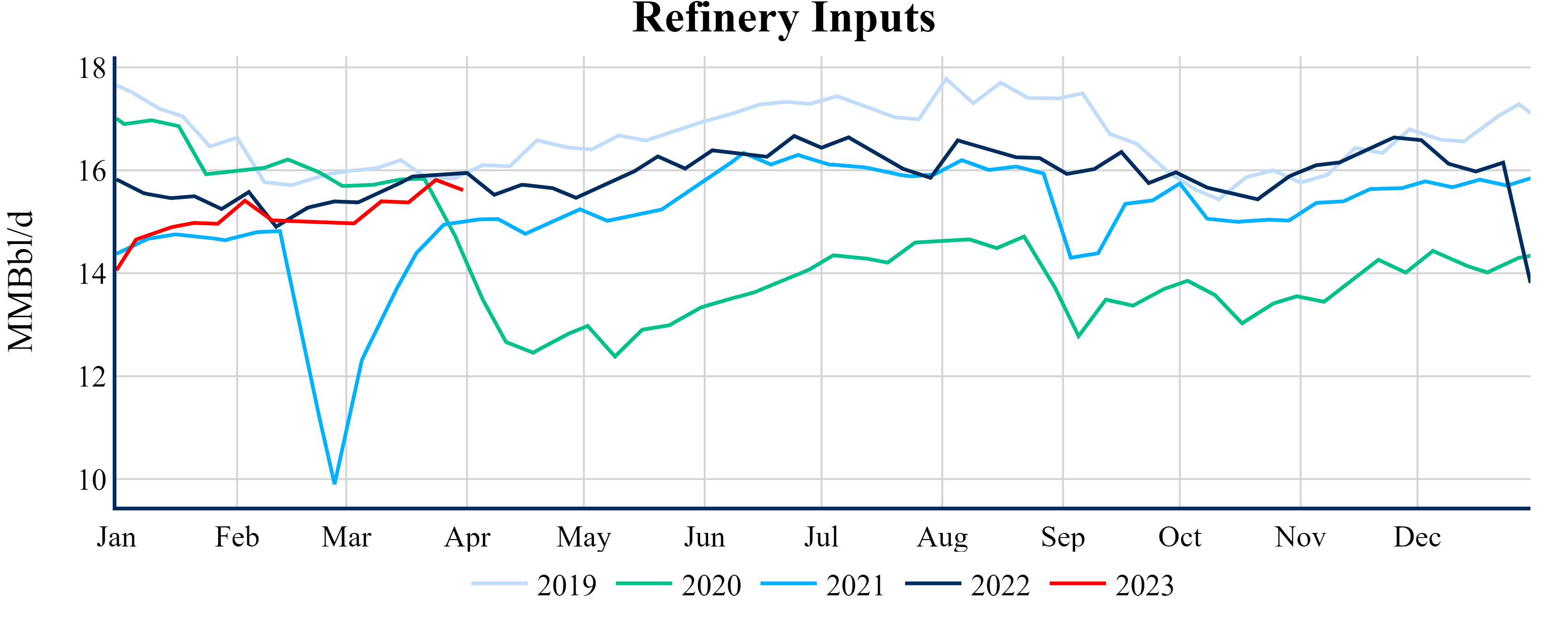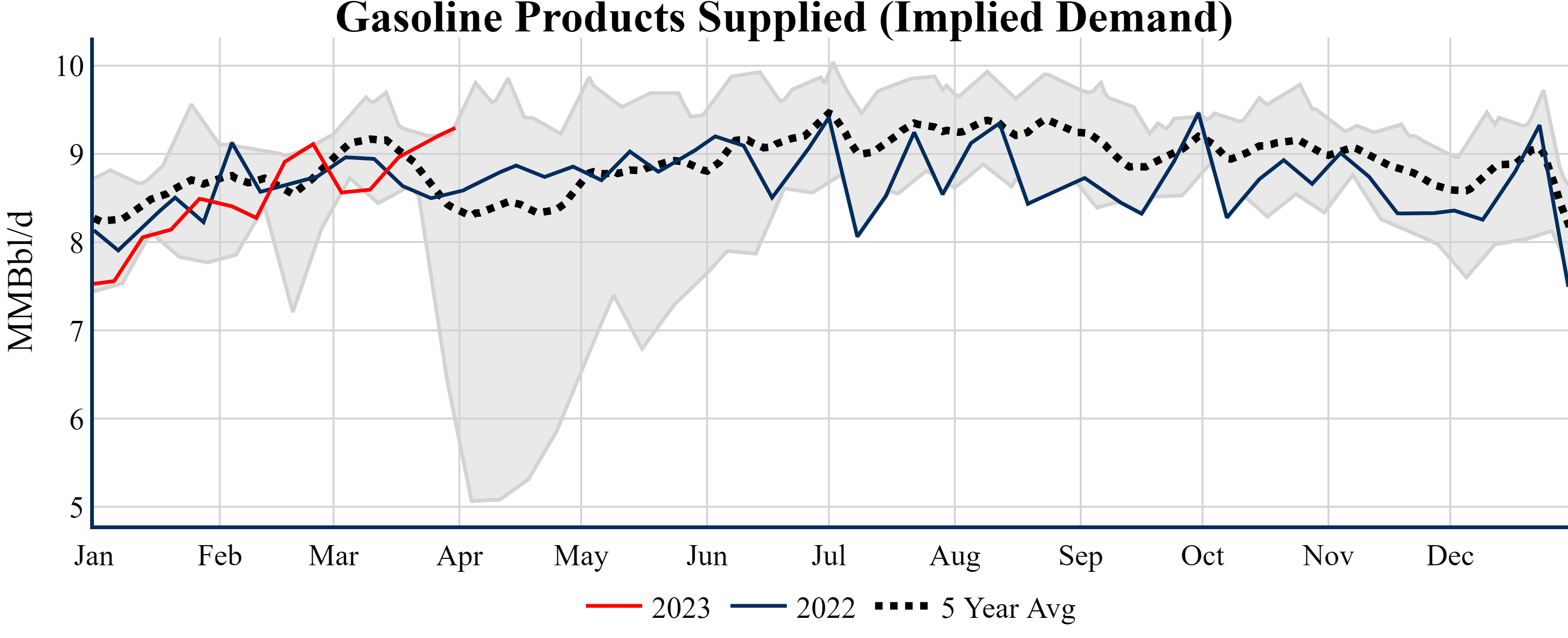 Inventories for the U.S. are now at a surplus of 57.90 MMBbls (14.1%) to last year, and a surplus of 17.10 MMBbls (3.8%) to the five-year average.