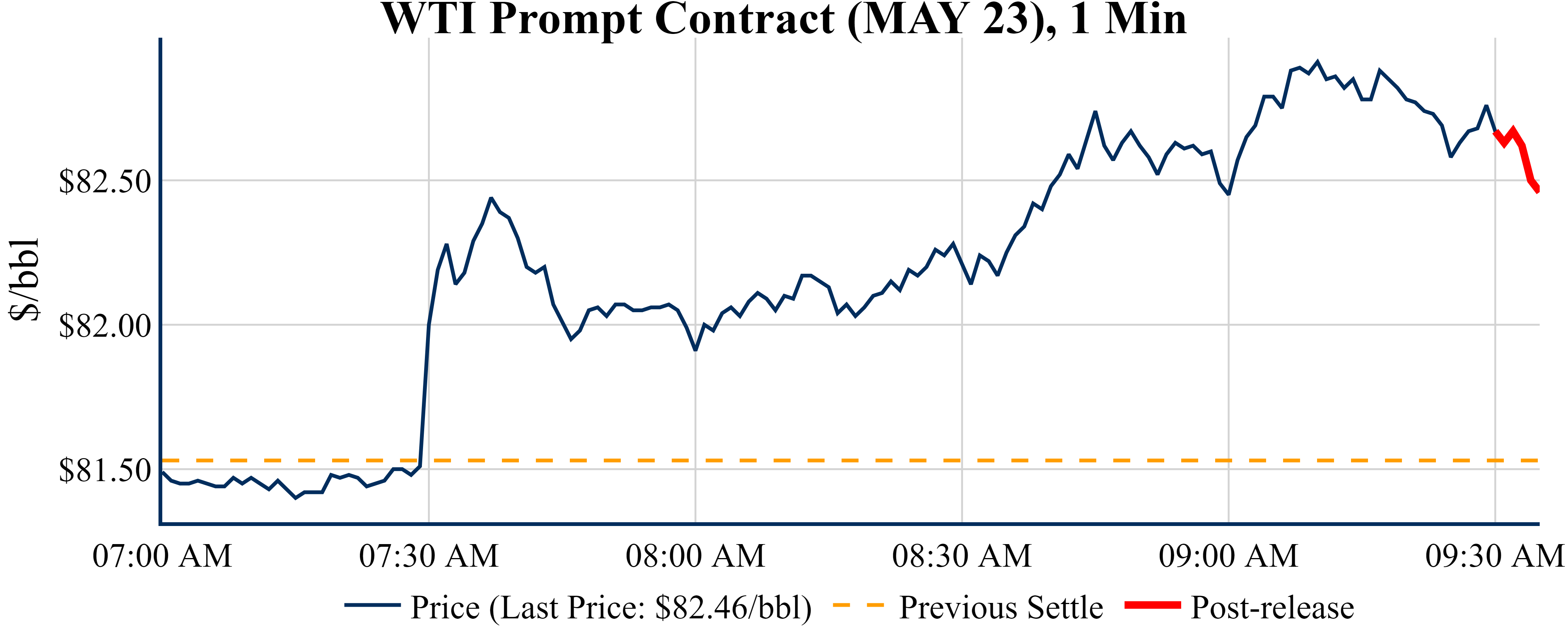 Prices were down in the five minutes following the announcement, to $82.46 from $82.67 just before 09:30 AM.