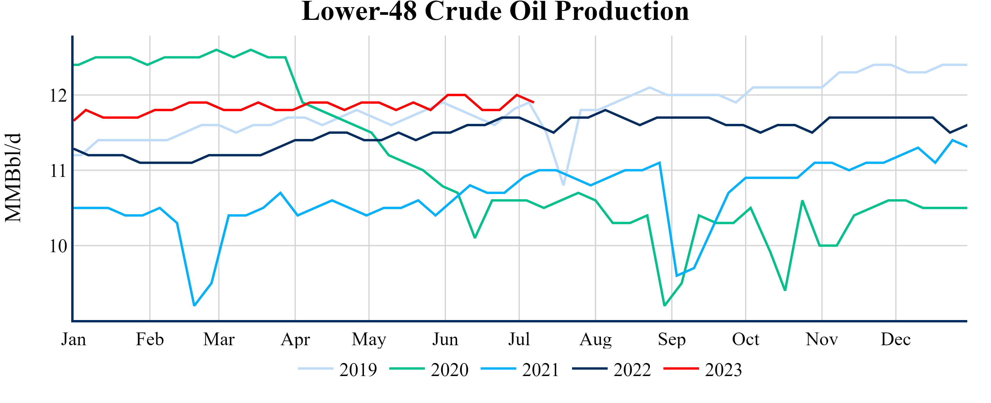 Inventories for the U.S. are now at a surplus of 31.50 MMBbls (7.4%) to last year, and a surplus of 4.80 MMBbls (1.1%) to the five-year average.