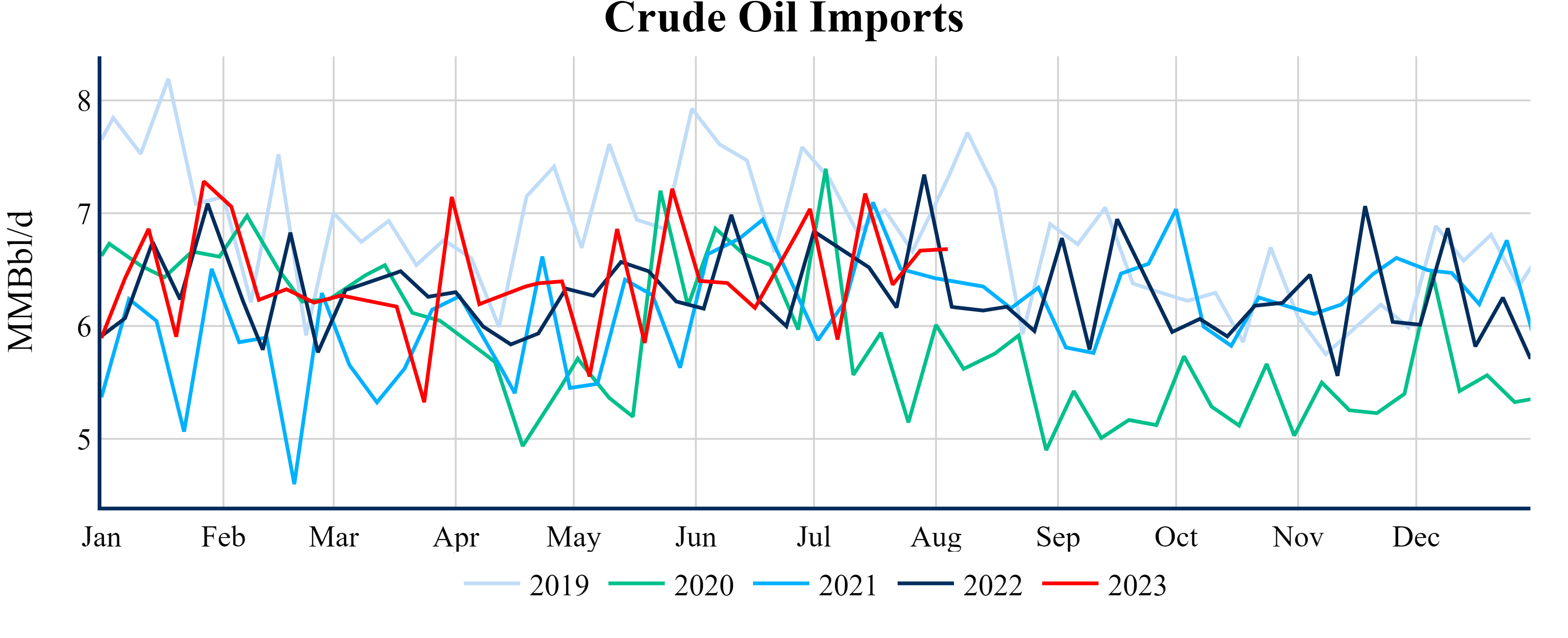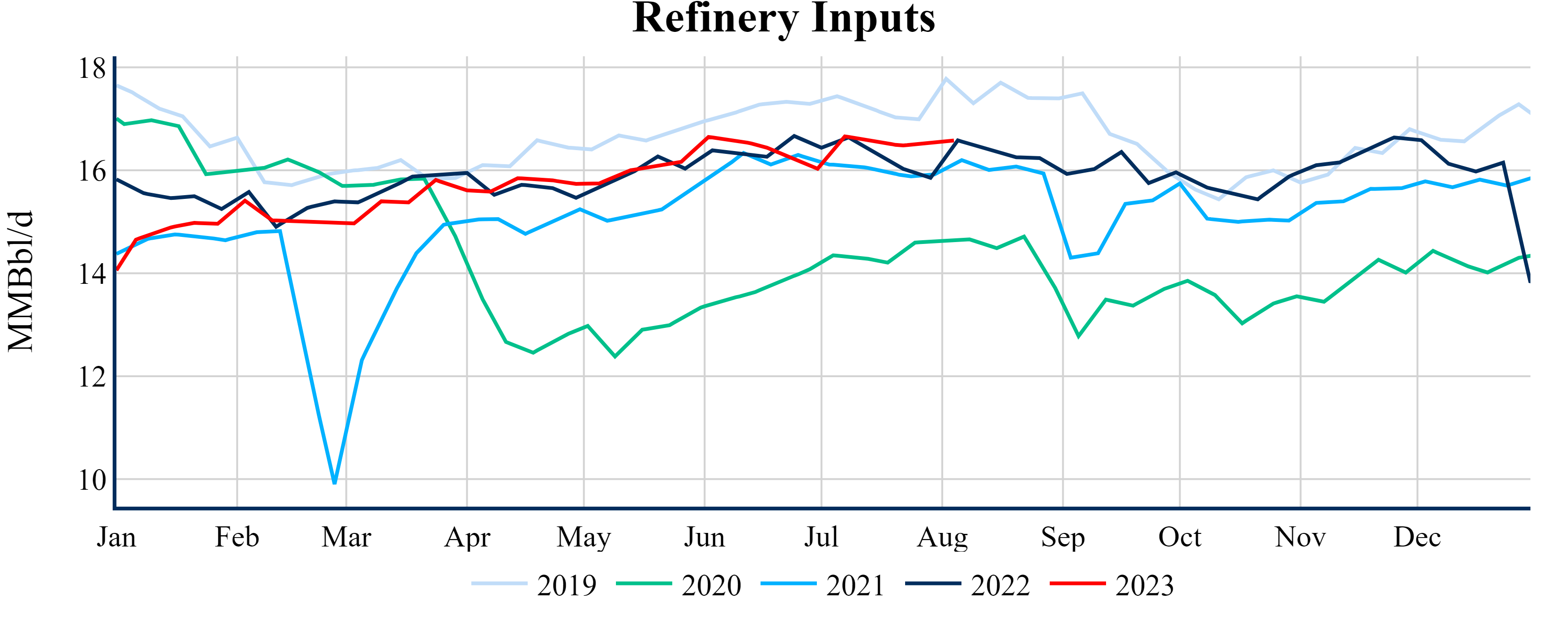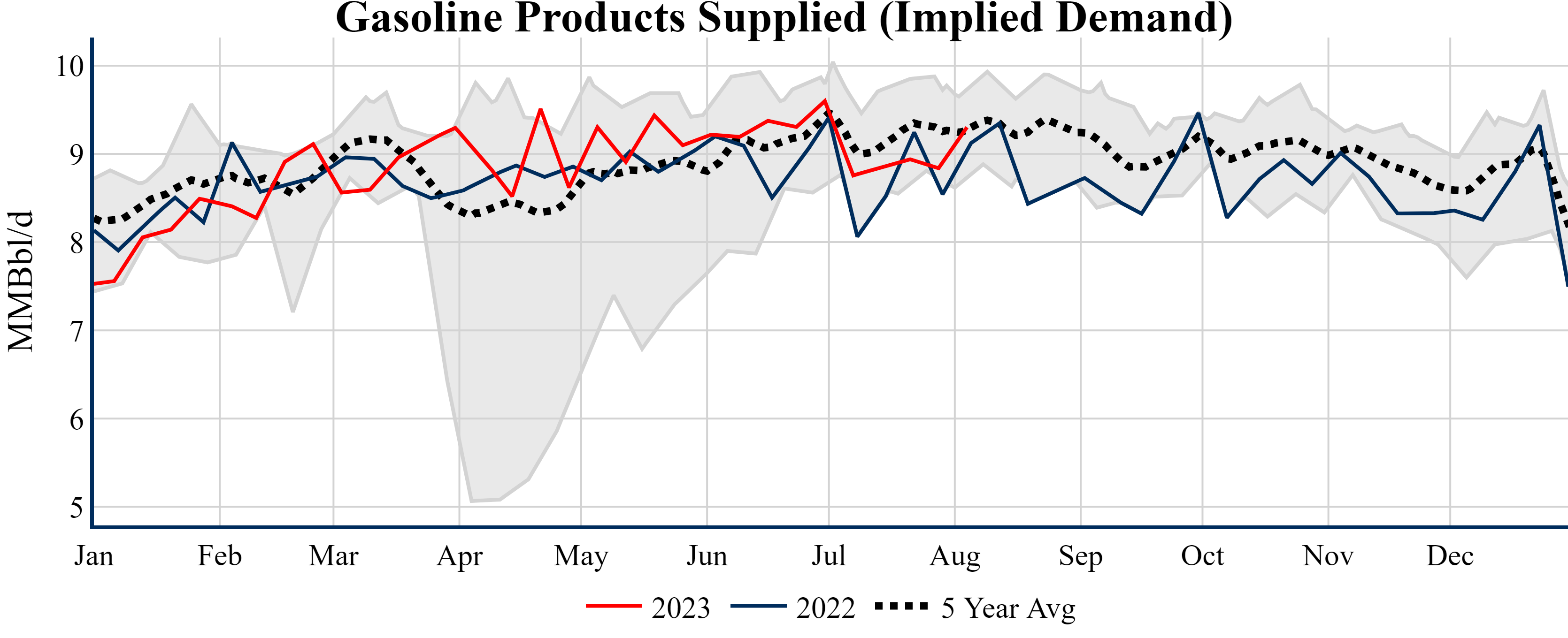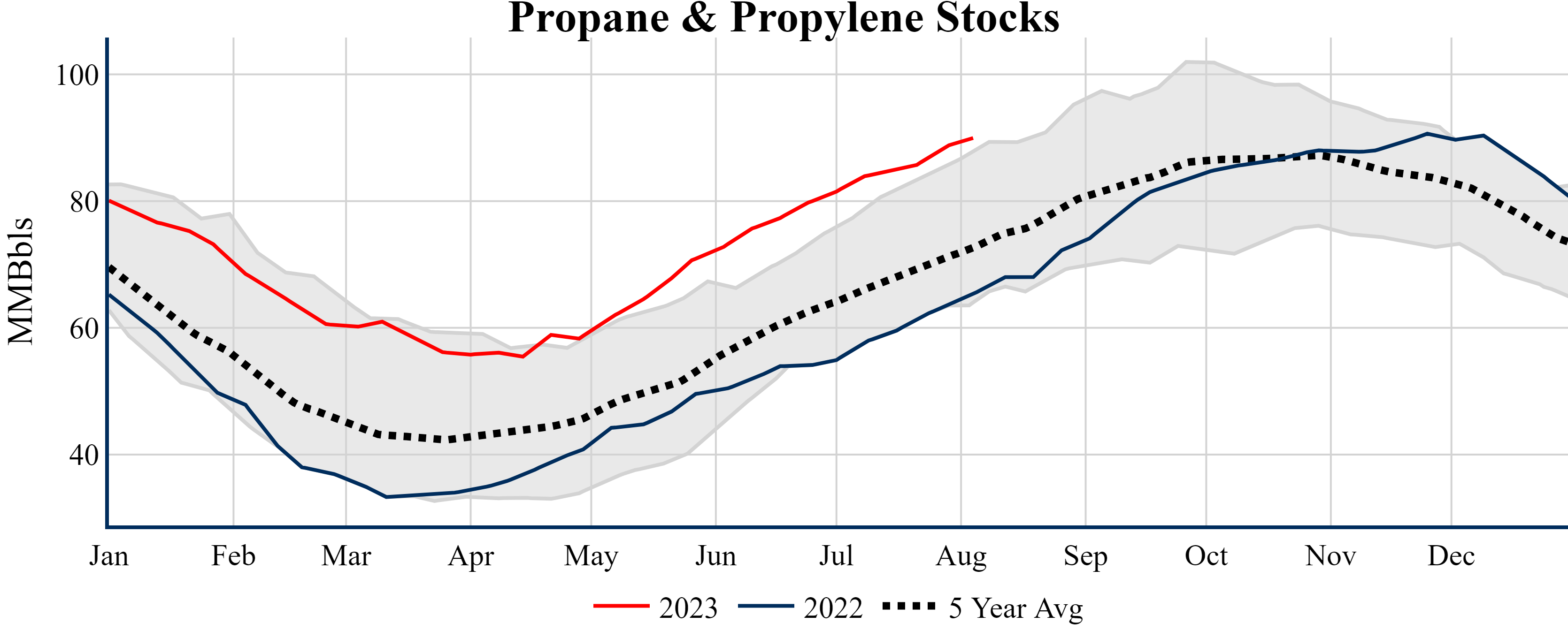 Inventories for the U.S. are now at a surplus of 14.40 MMBbls (3.3%) to last year, and a deficit of 1.30 MMBbls (-0.3%) to the five-year average.