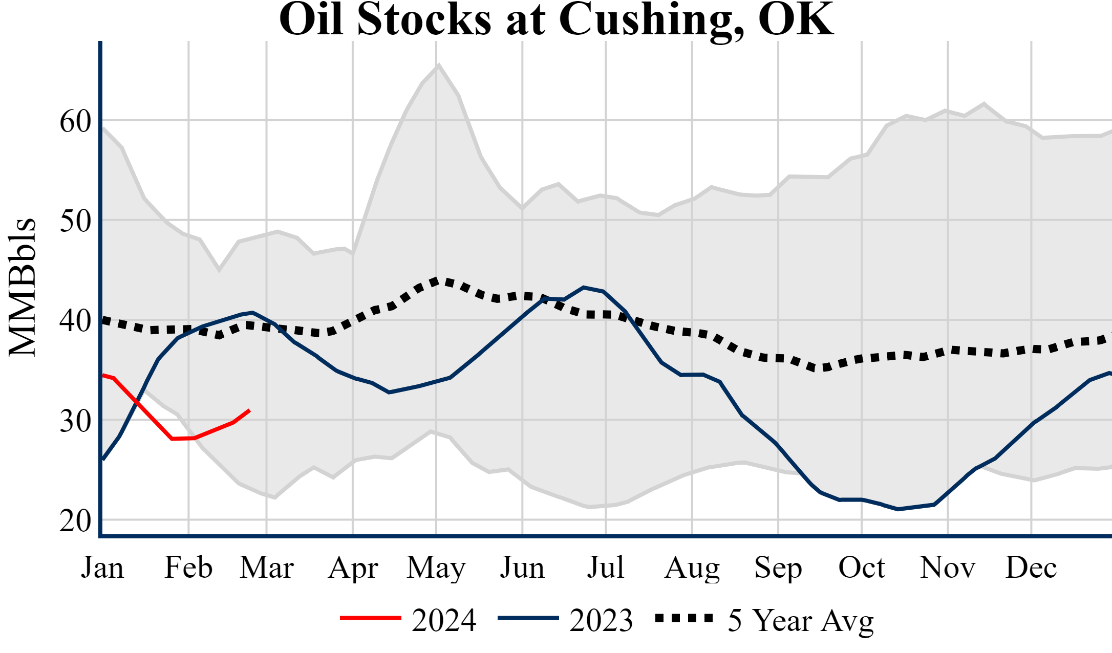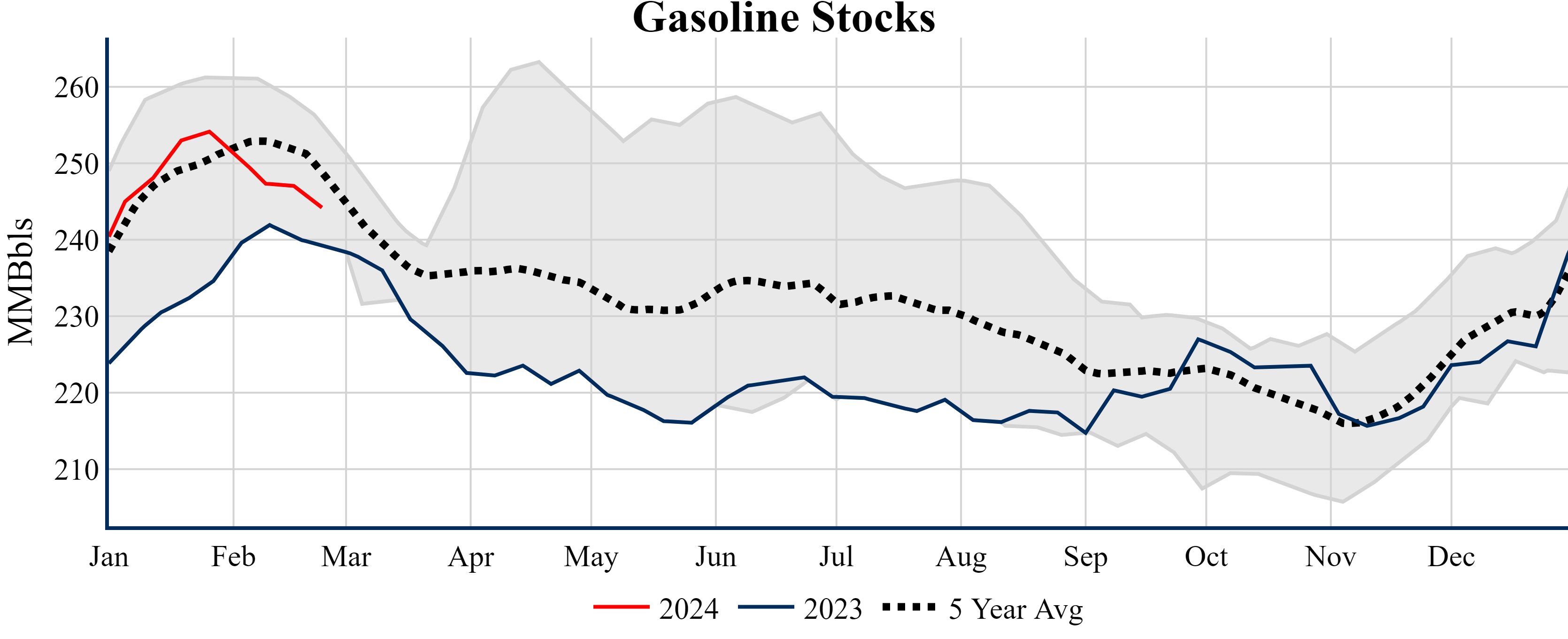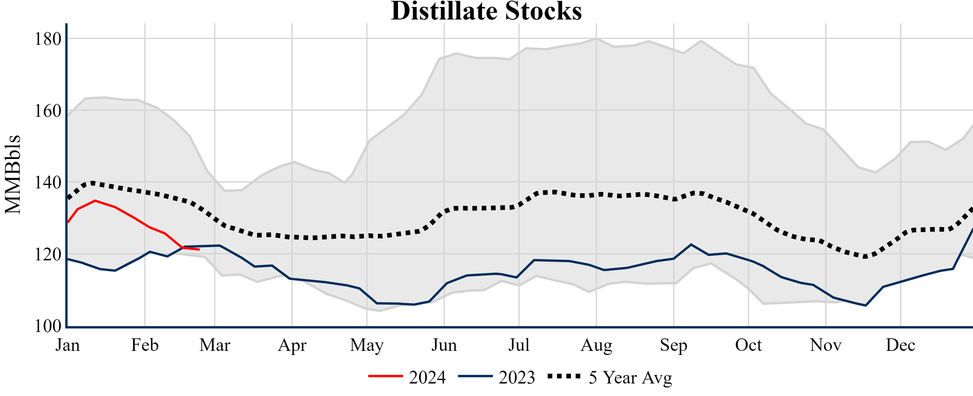 Inventories for the U.S. are now at a deficit of 32.90 MMBbls (-6.8%) to last year, and a deficit of 4.80 MMBbls (-1.1%) to the five-year average.