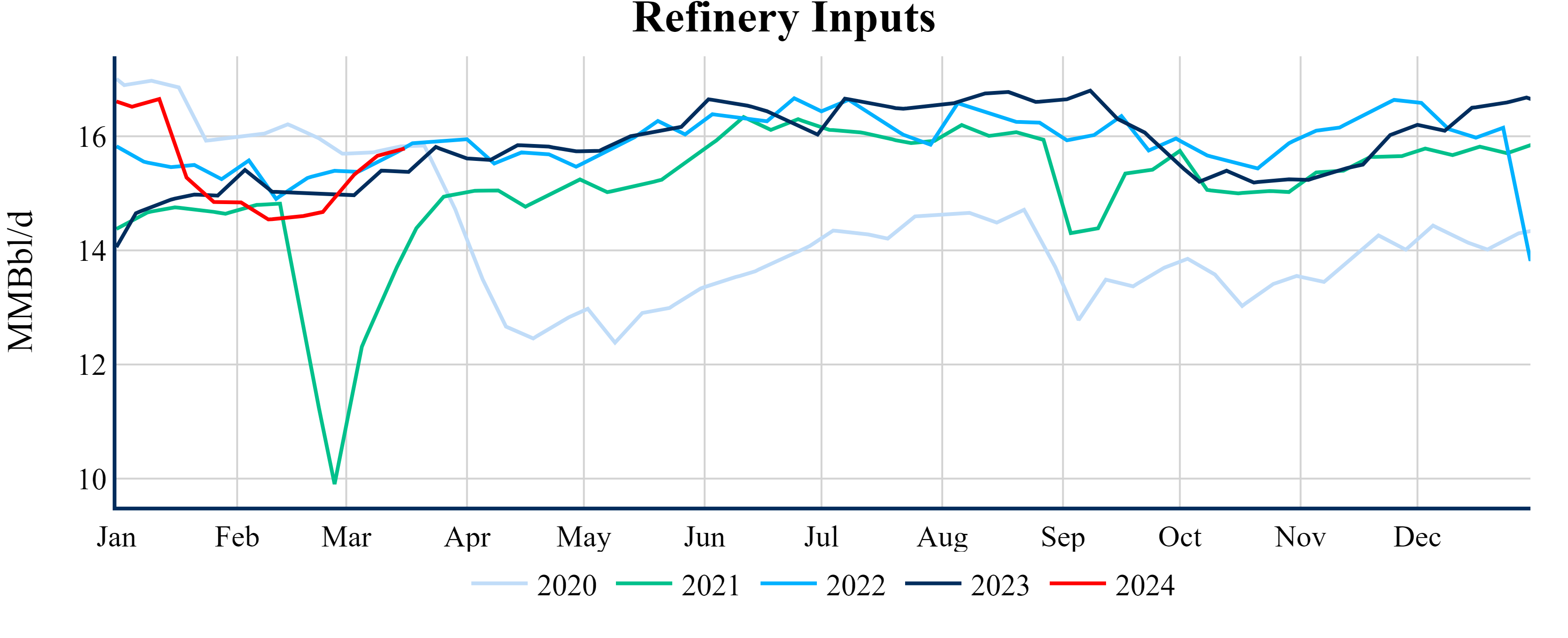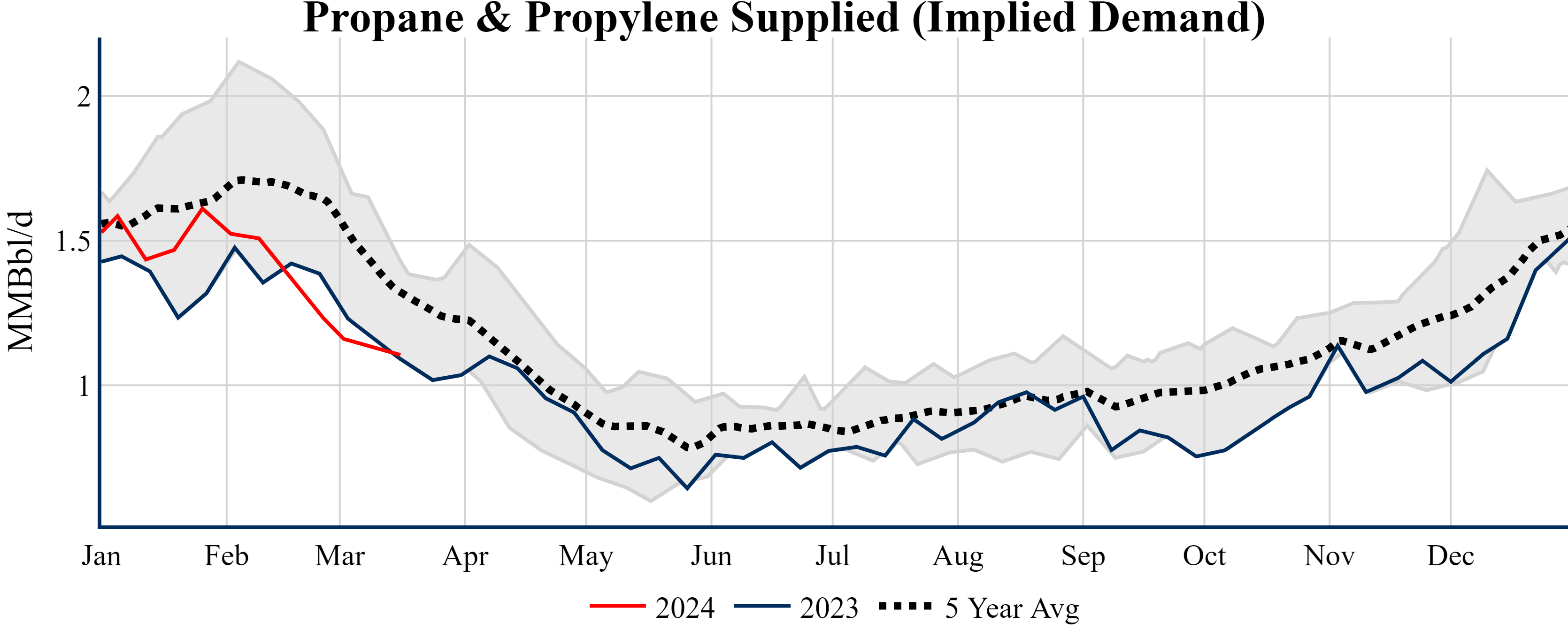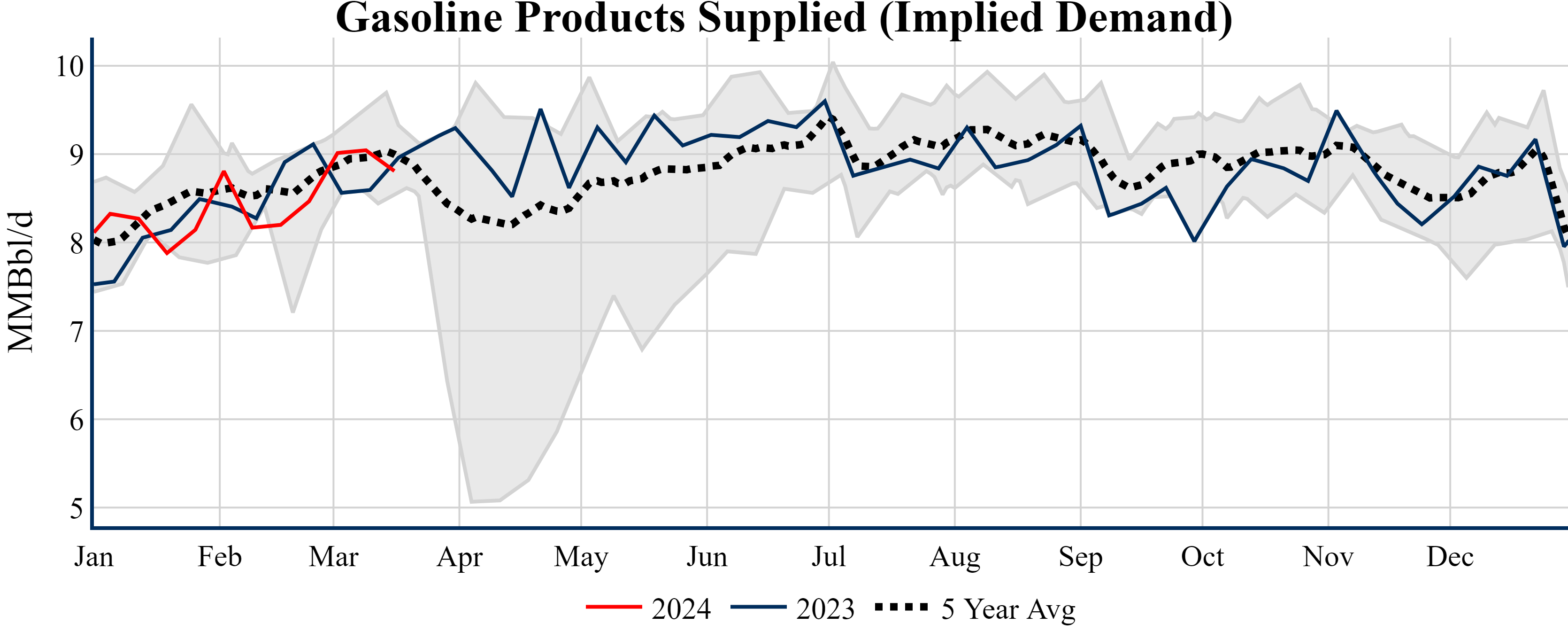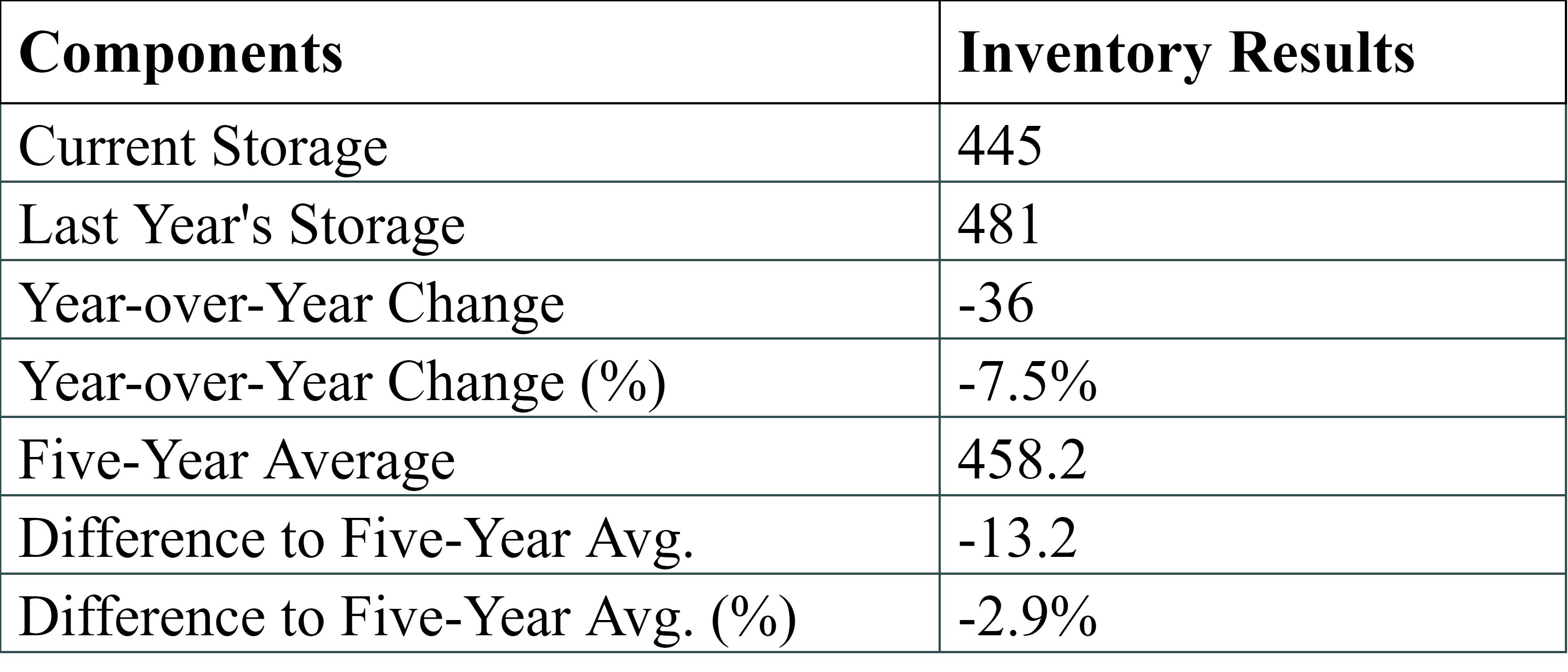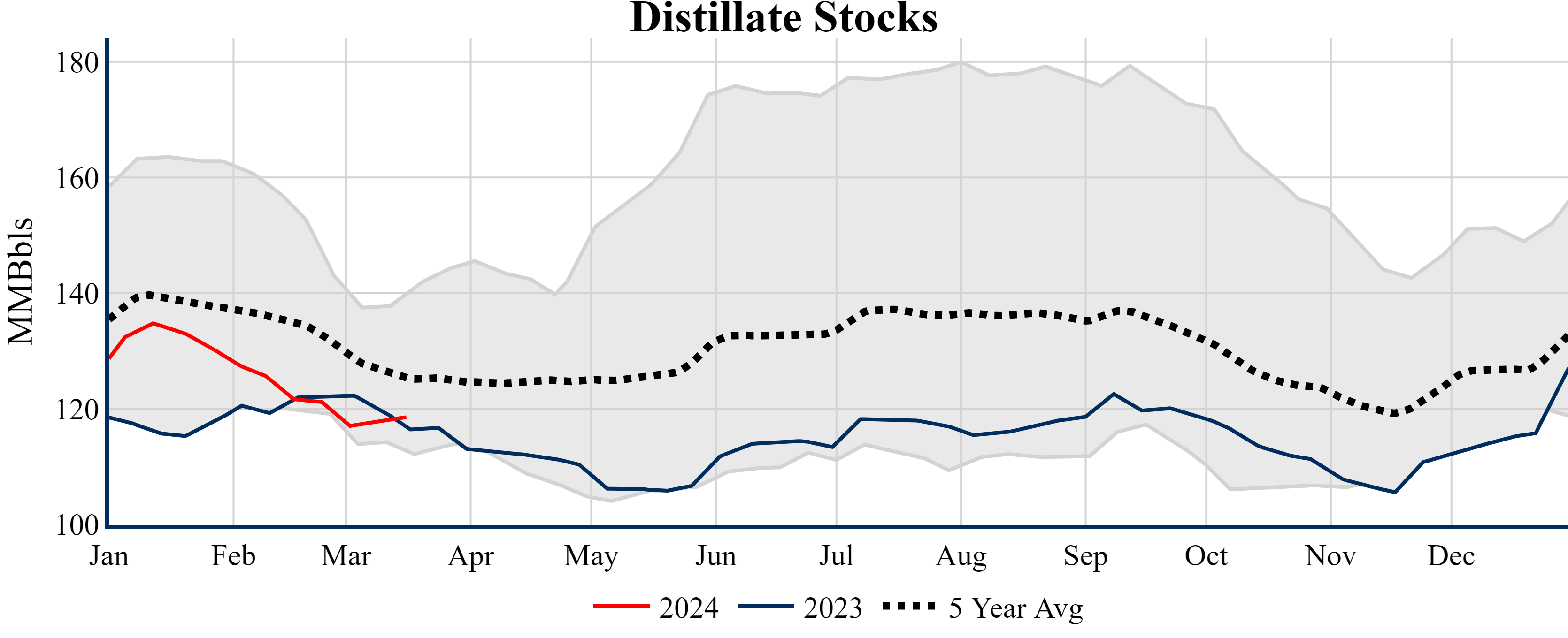 Inventories for the U.S. are now at a deficit of 36.00 MMBbls (-7.5%) to last year, and a deficit of 13.20 MMBbls (-2.9%) to the five-year average.