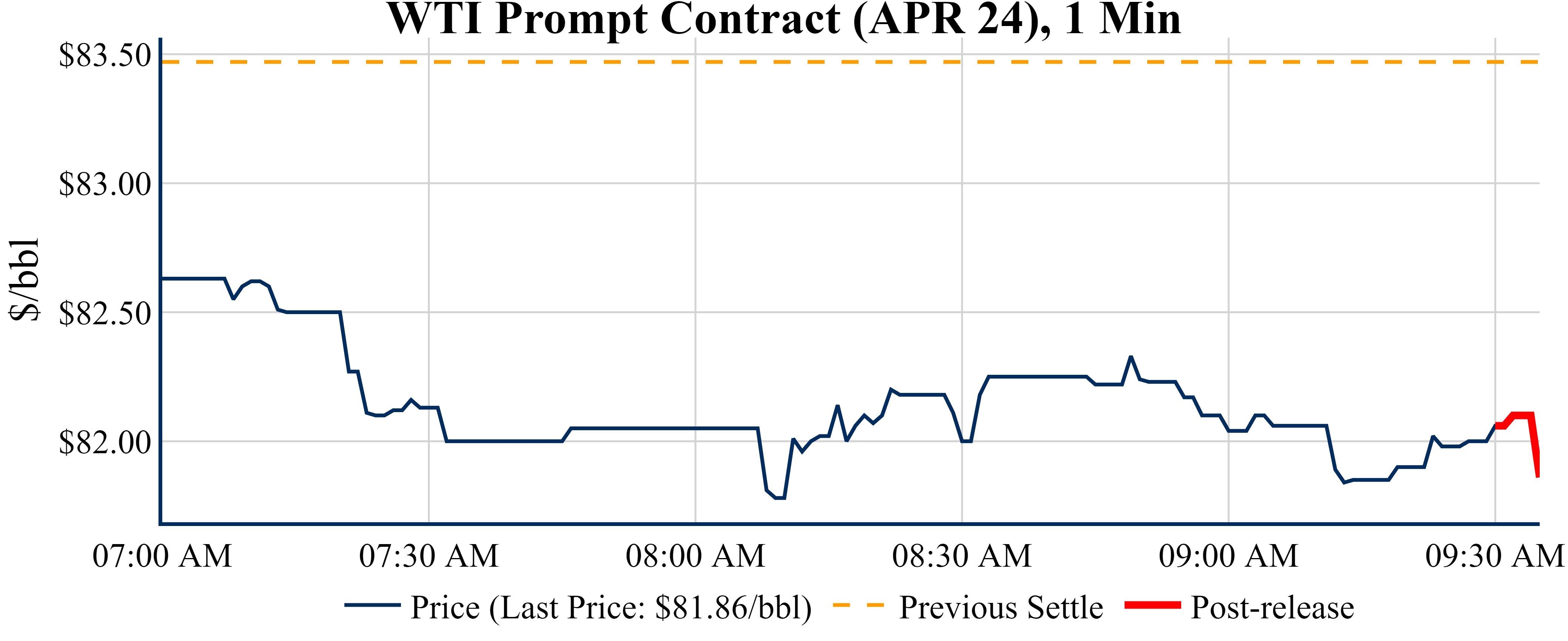 Prices were down in the five minutes following the announcement, to $81.86 from $82.06 just before 09:30 AM.