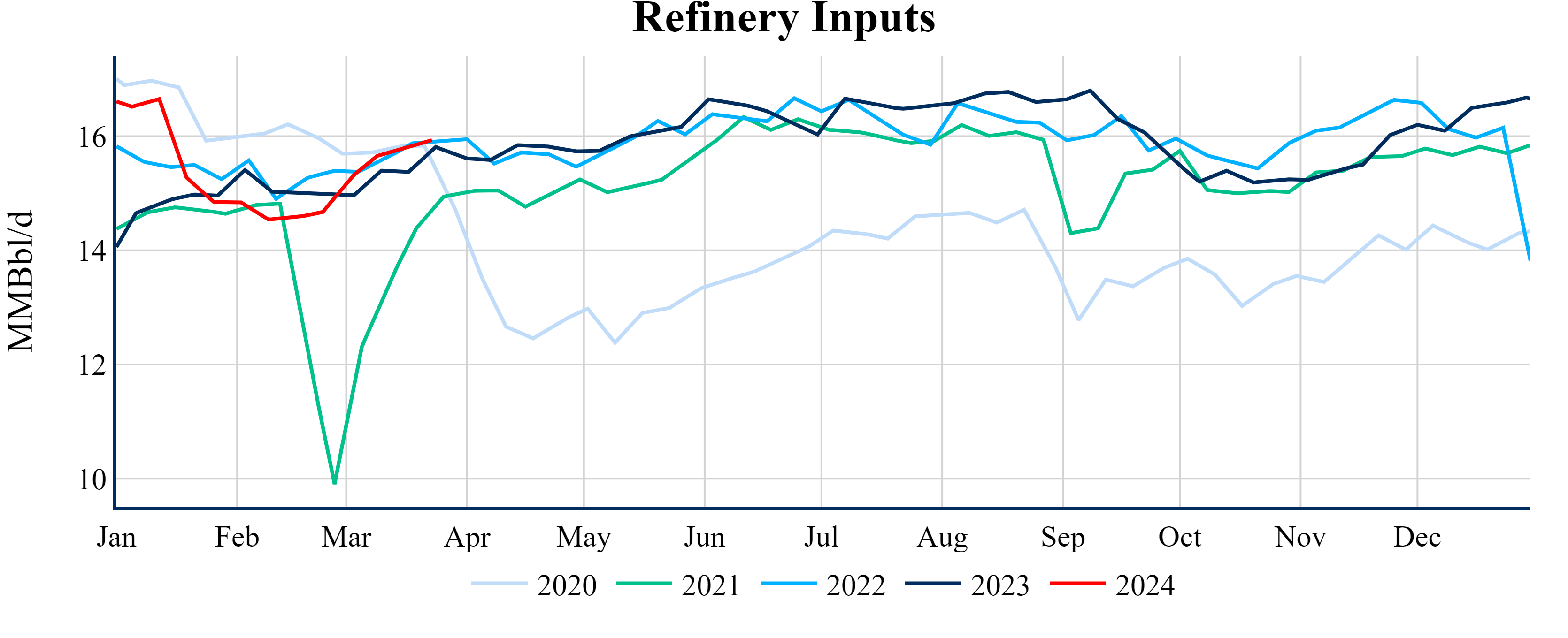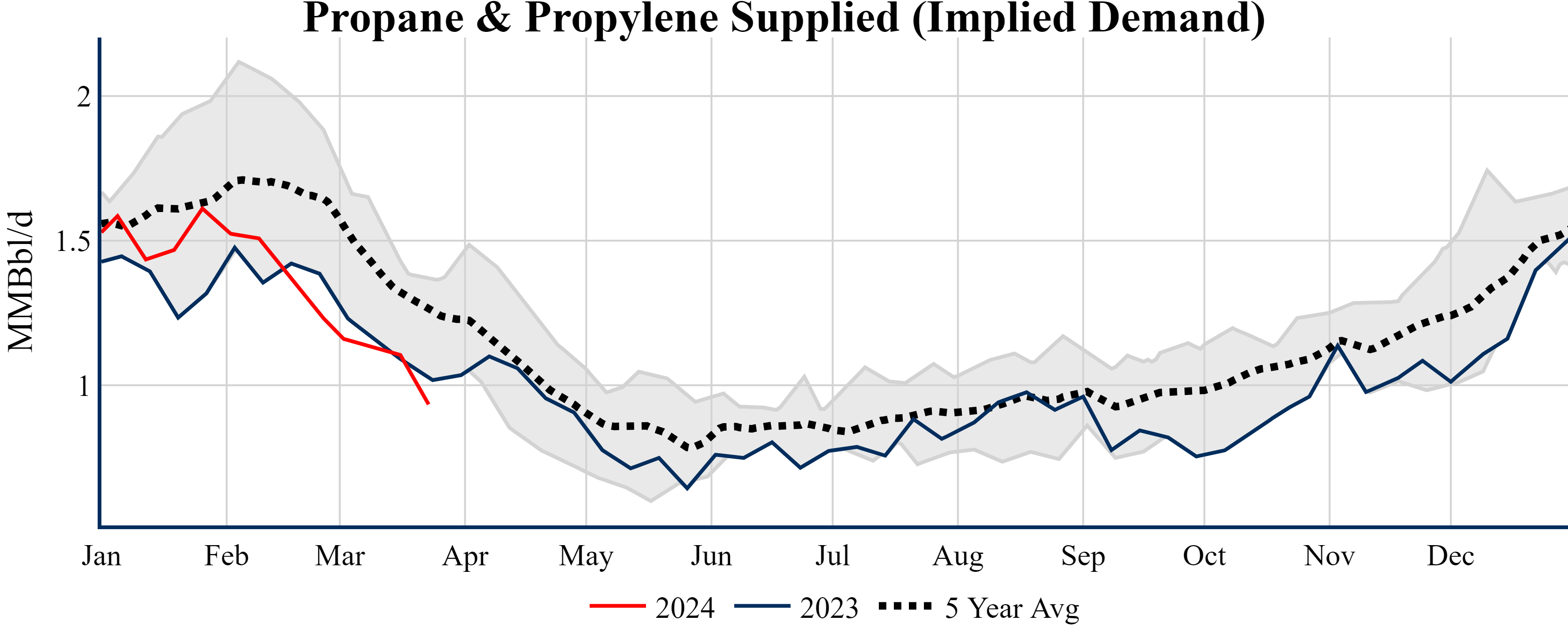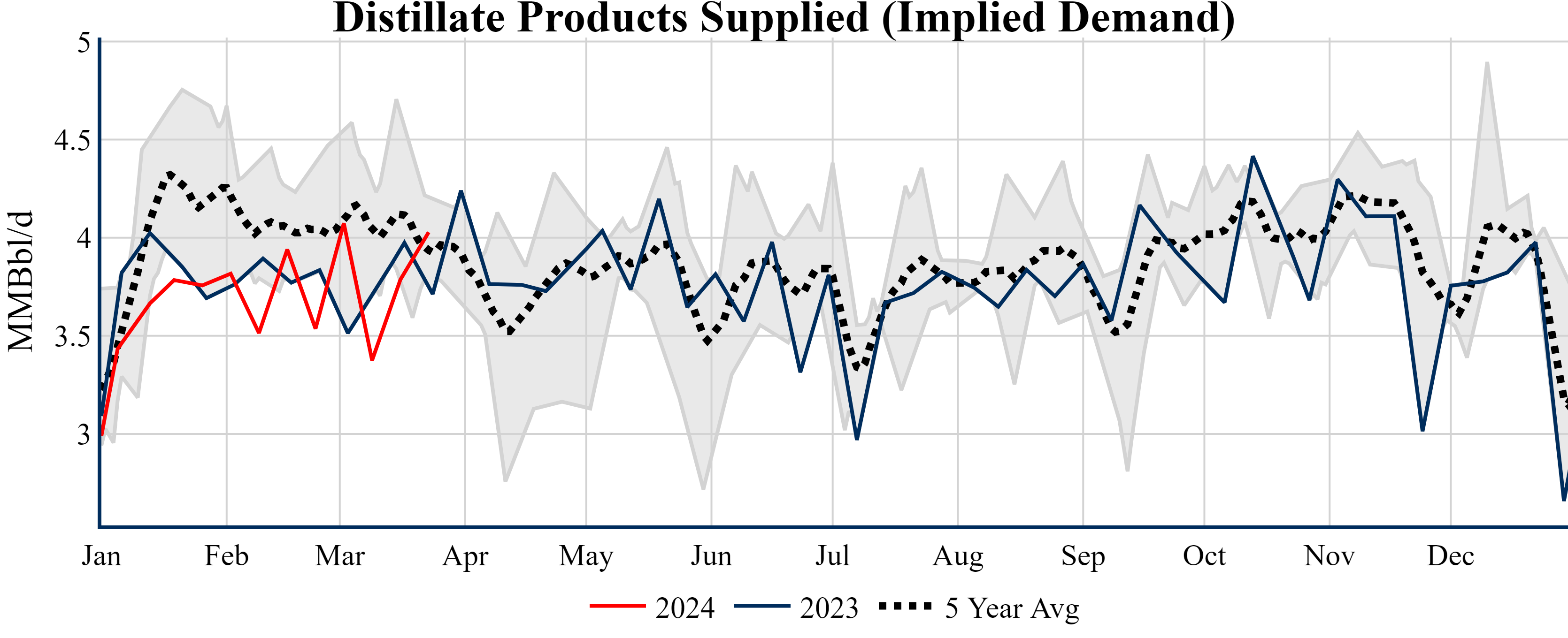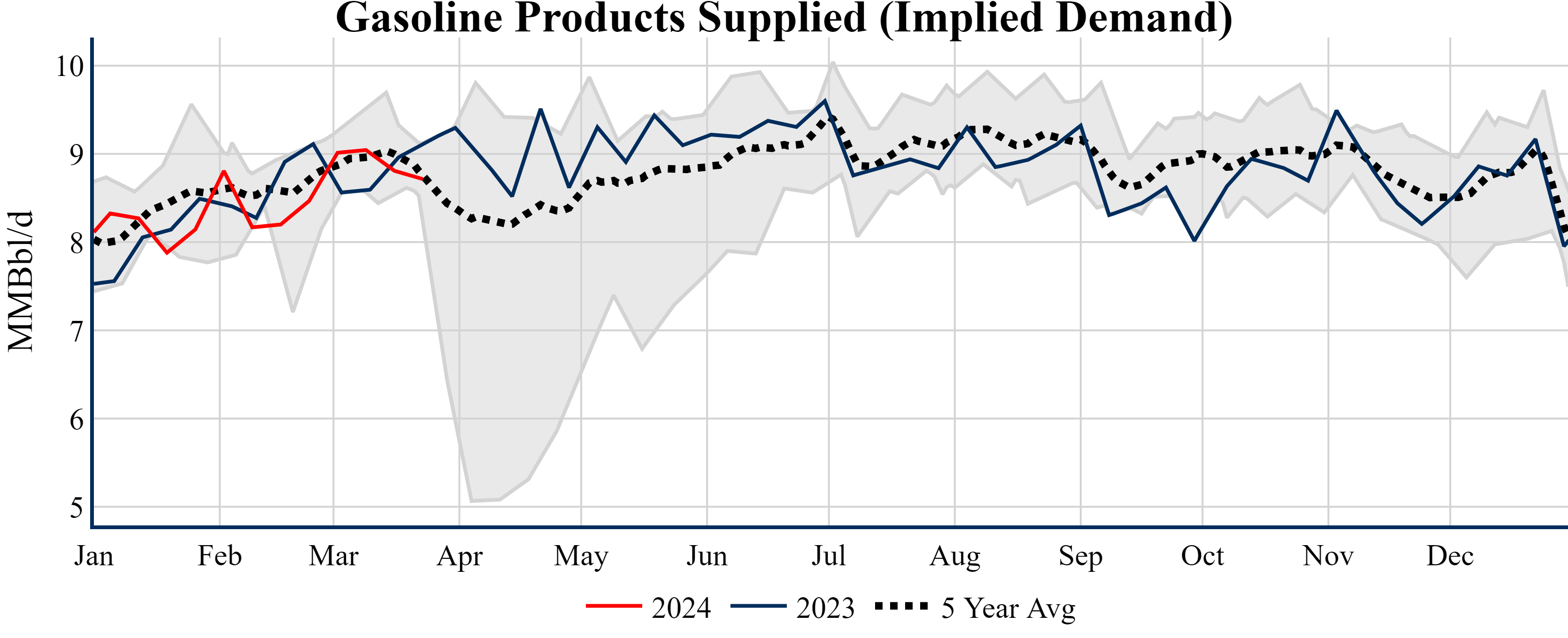 Inventories for the U.S. are now at a deficit of 26.60 MMBbls (-5.6%) to last year, and a deficit of 9.90 MMBbls (-2.2%) to the five-year average.