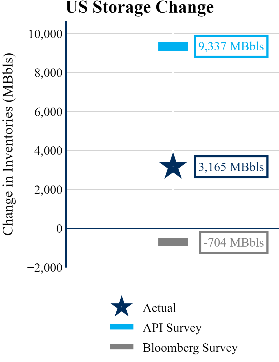 The EIA reported a build of +3,165 MBbls in U.S. crude-oil inventories. In contrast, the market expected a draw of -704 MBbls as reported by Bloomberg.