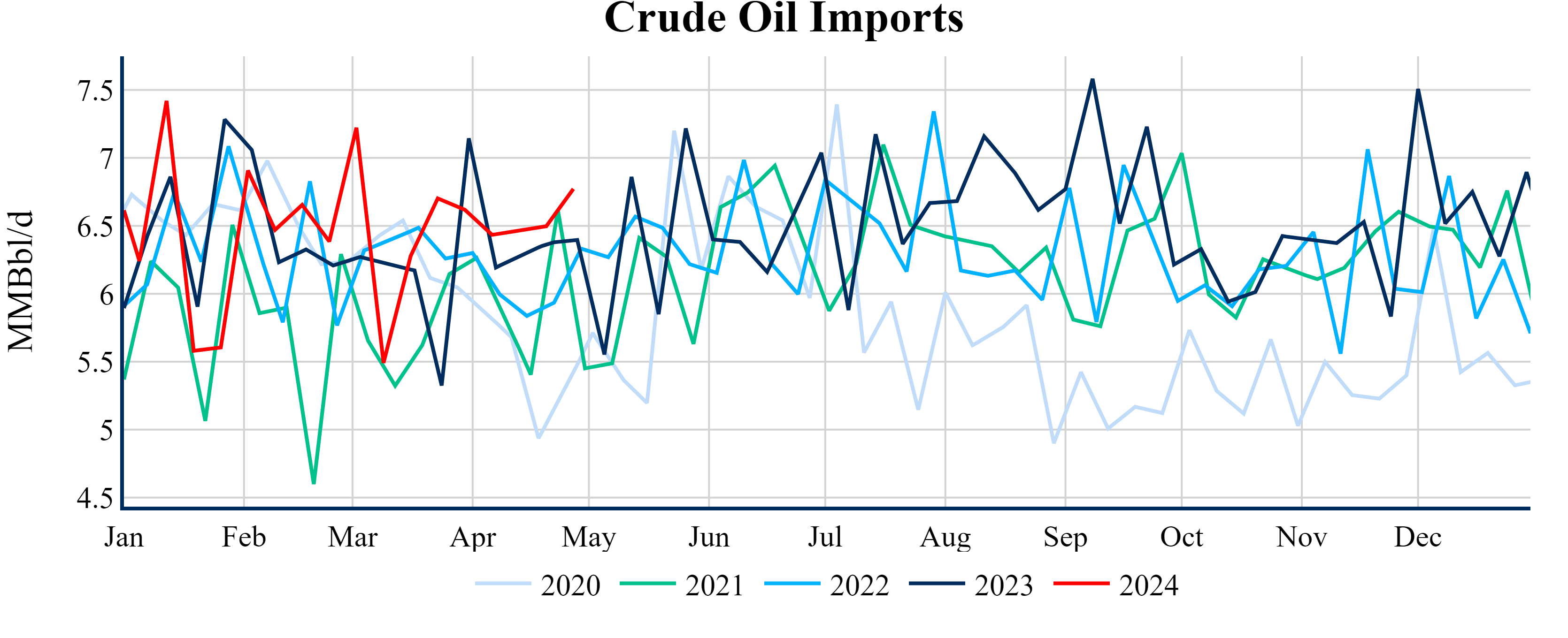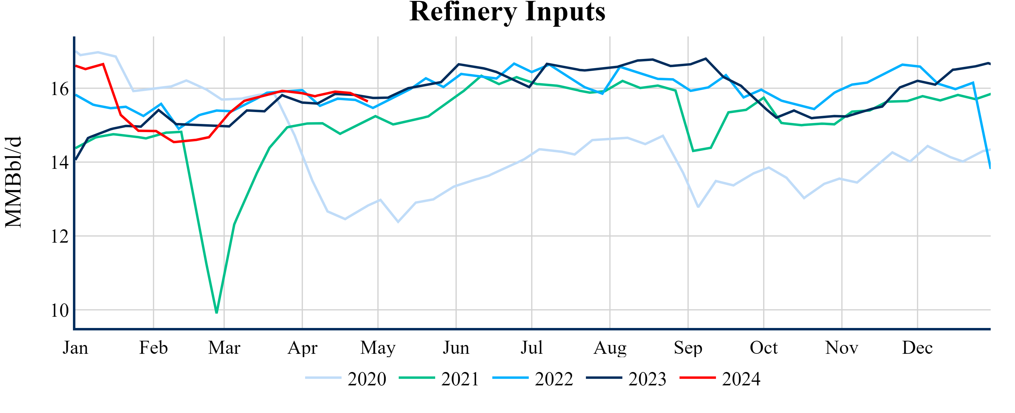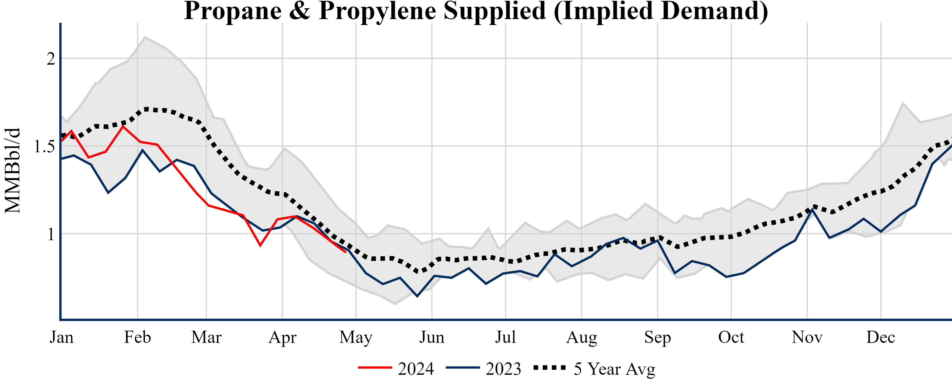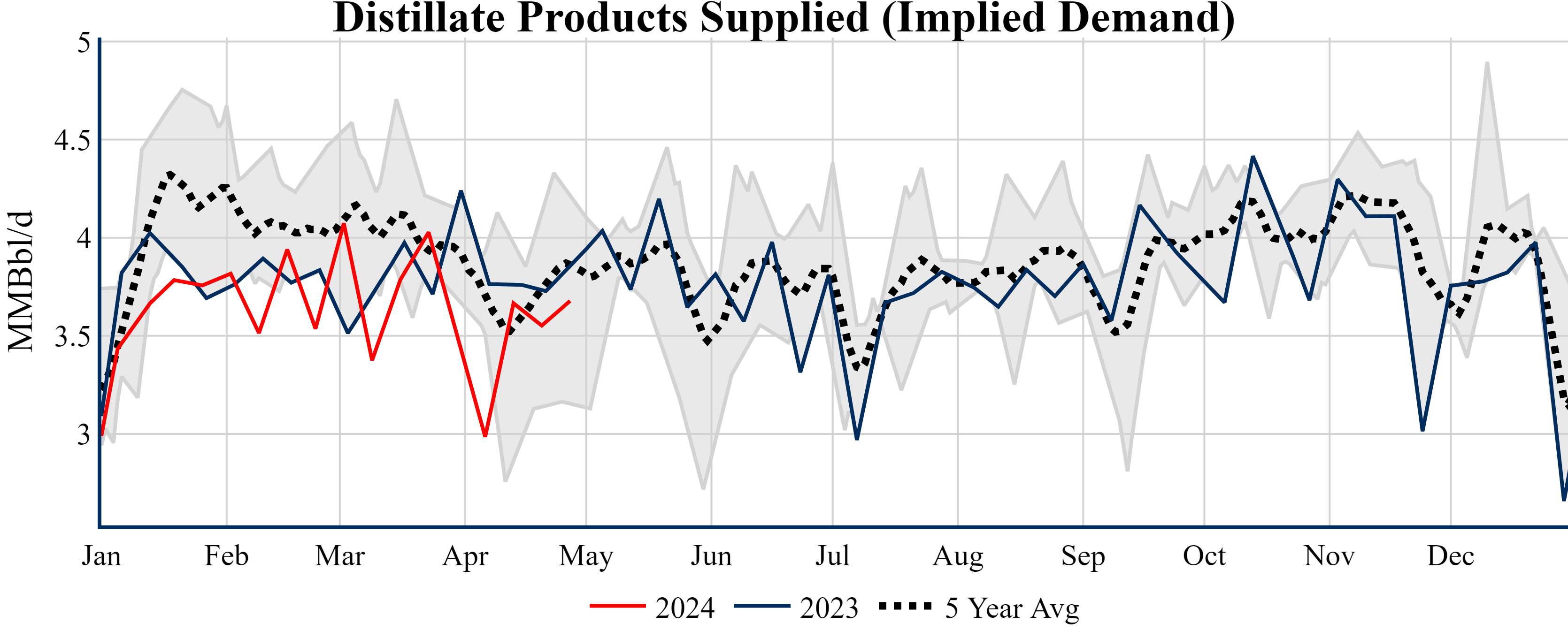 Inventories for the U.S. are now at a surplus of 1.10 MMBbls (0.2%) to last year, and a deficit of 11.60 MMBbls (-2.5%) to the five-year average.