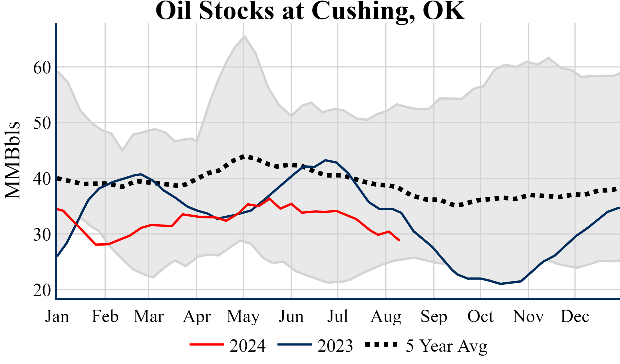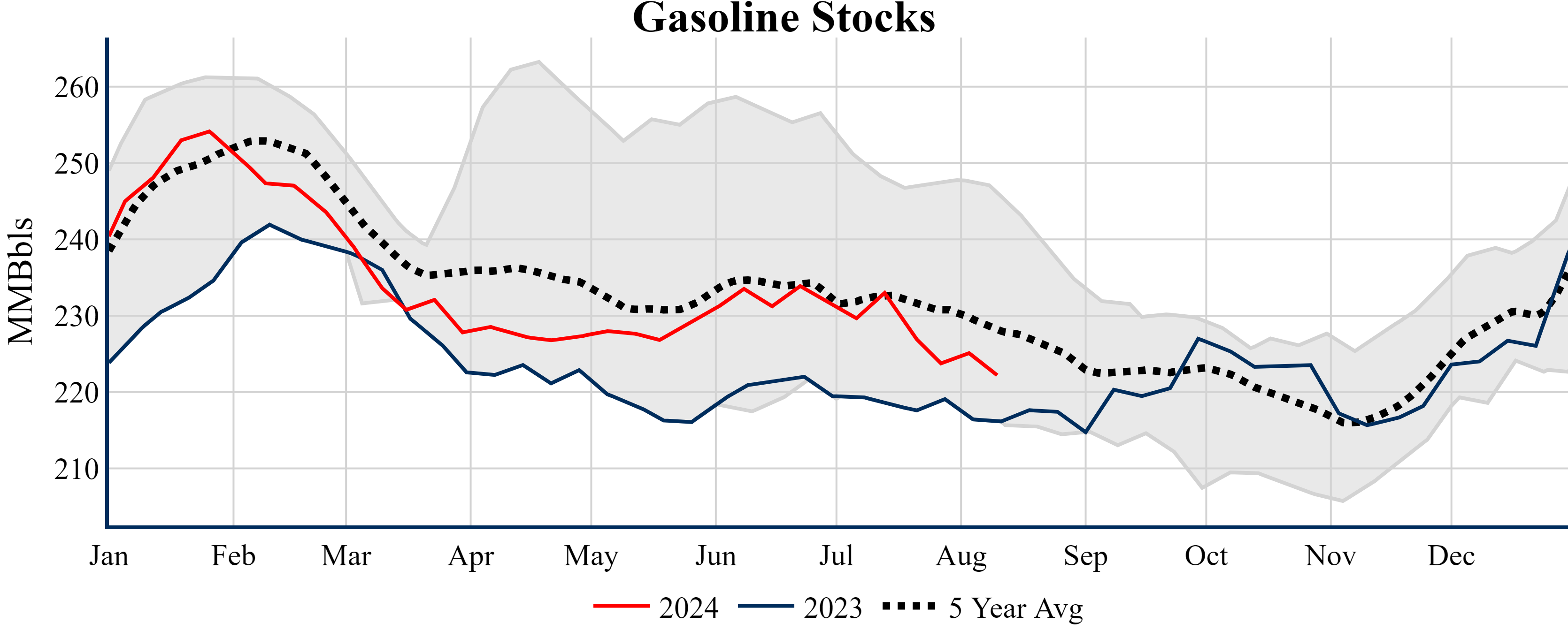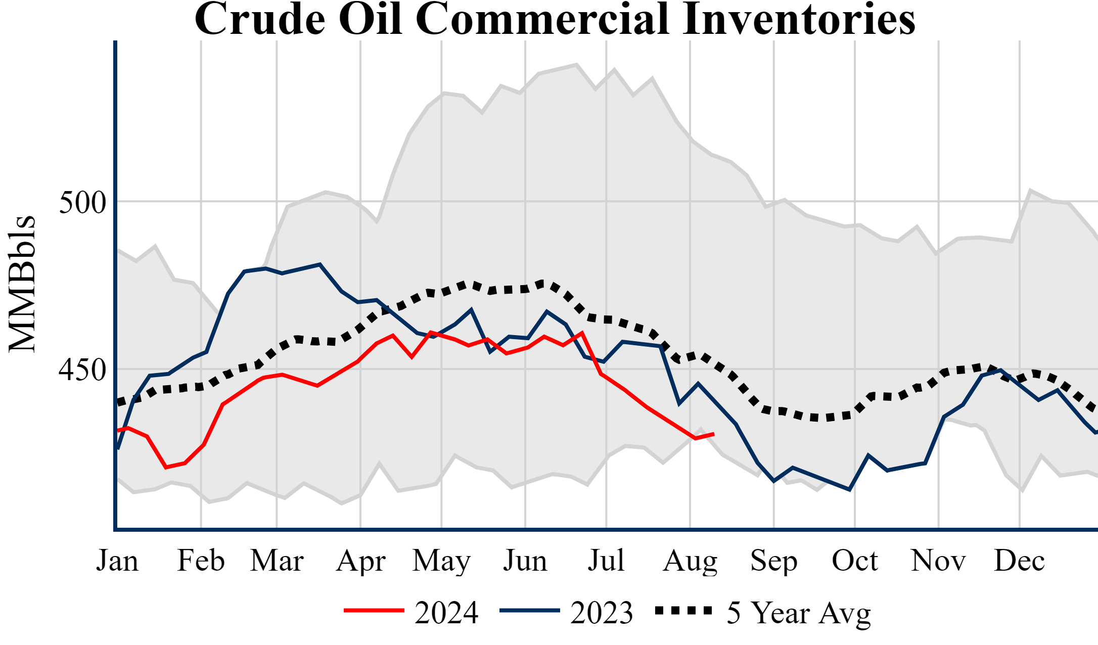 Inventories for the U.S. are now at a deficit of 9.80 MMBbls (-2.2%) to last year, and a deficit of 21.00 MMBbls (-4.6%) to the five-year average.