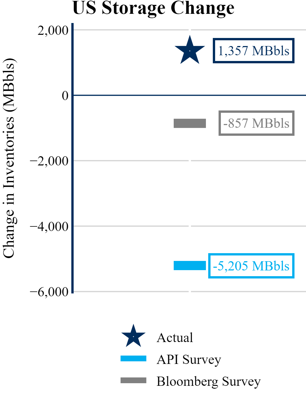 The EIA reported a build of +1,357 MBbls in U.S. crude-oil inventories. In contrast, the market expected a draw of -857 MBbls as reported by Bloomberg.
