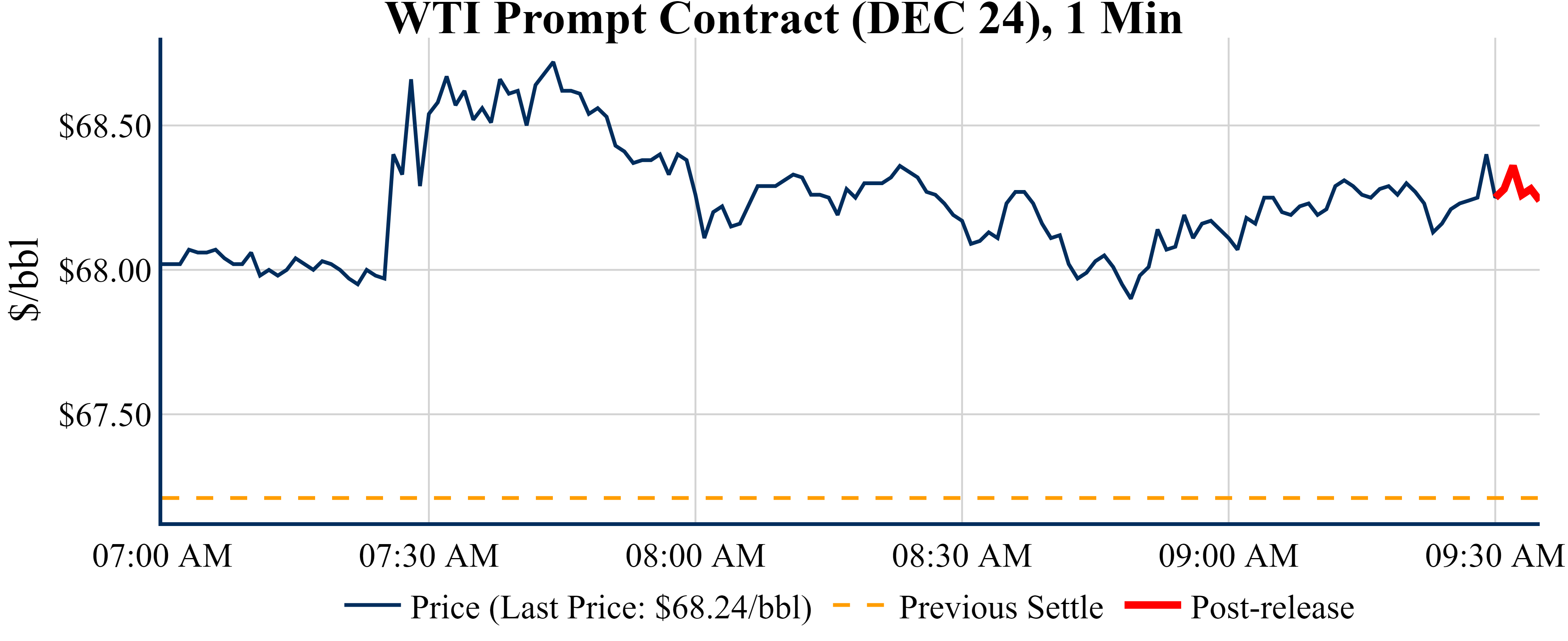Prices were down in the five minutes following the announcement, to $68.24 from $68.25 just before 09:30 AM.