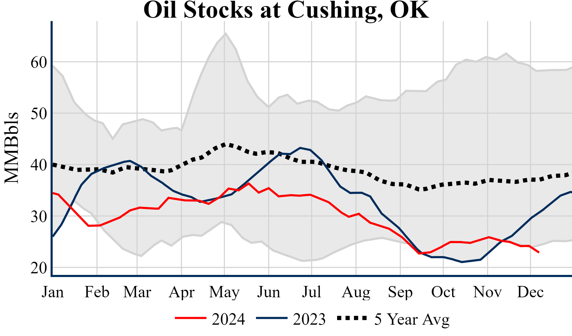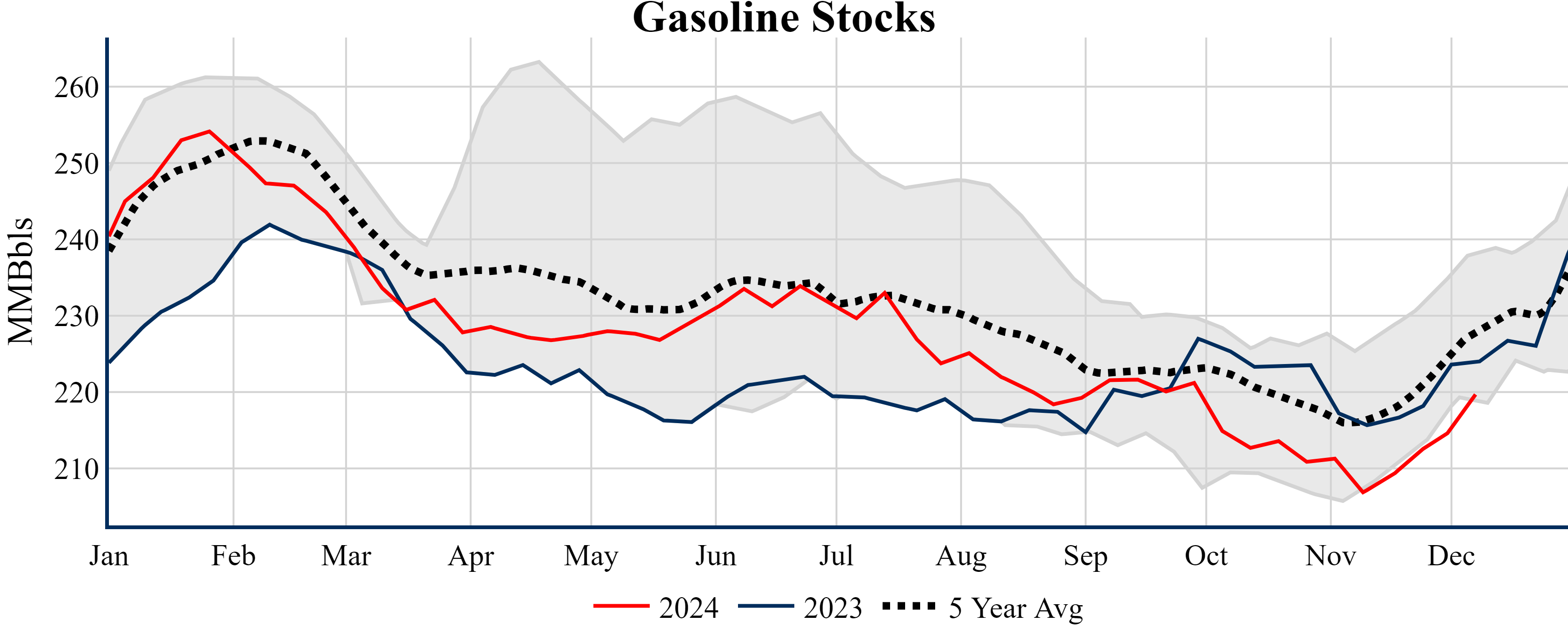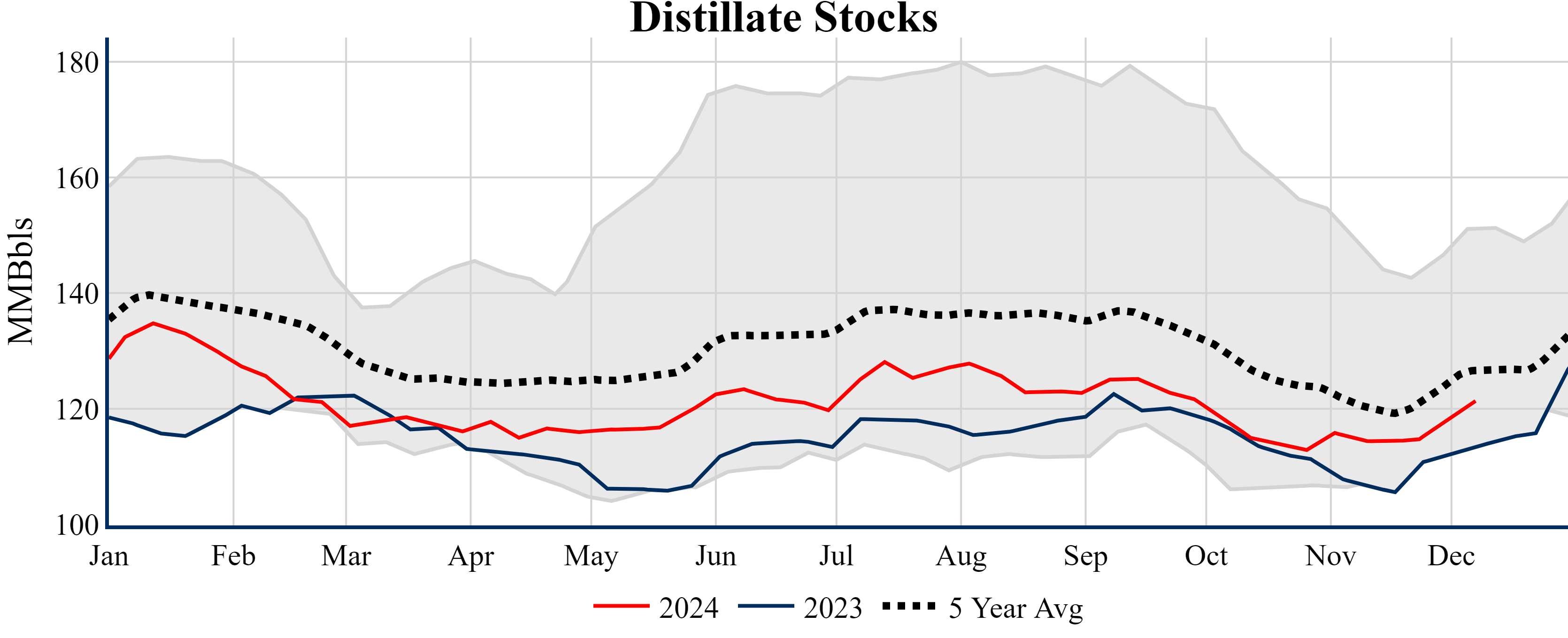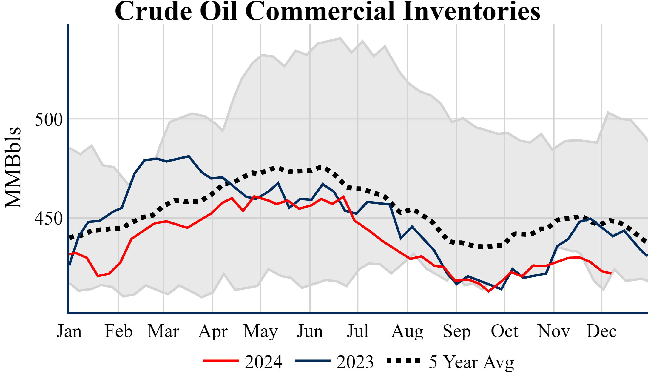 Inventories for the U.S. are now at a deficit of 19.40 MMBbls (-4.4%) to last year, and a deficit of 26.60 MMBbls (-5.9%) to the five-year average.