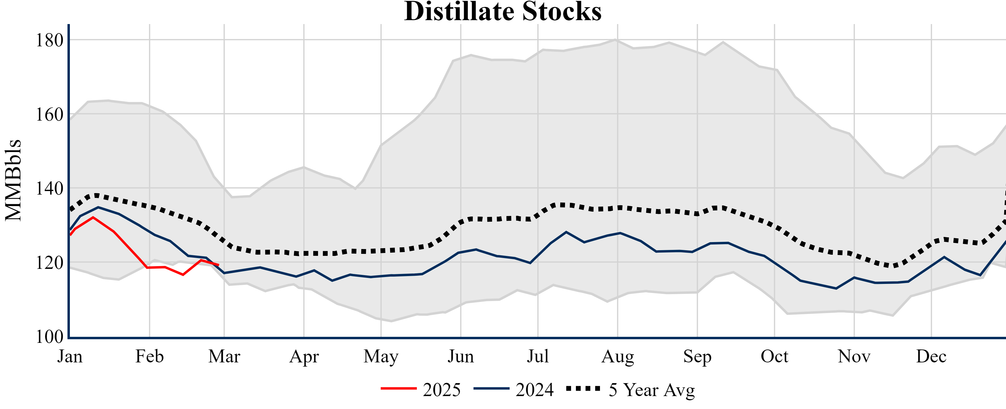 Inventories for the U.S. are now at a deficit of 14.40 MMBbls (-3.2%) to last year, and a deficit of 20.80 MMBbls (-4.6%) to the five-year average.