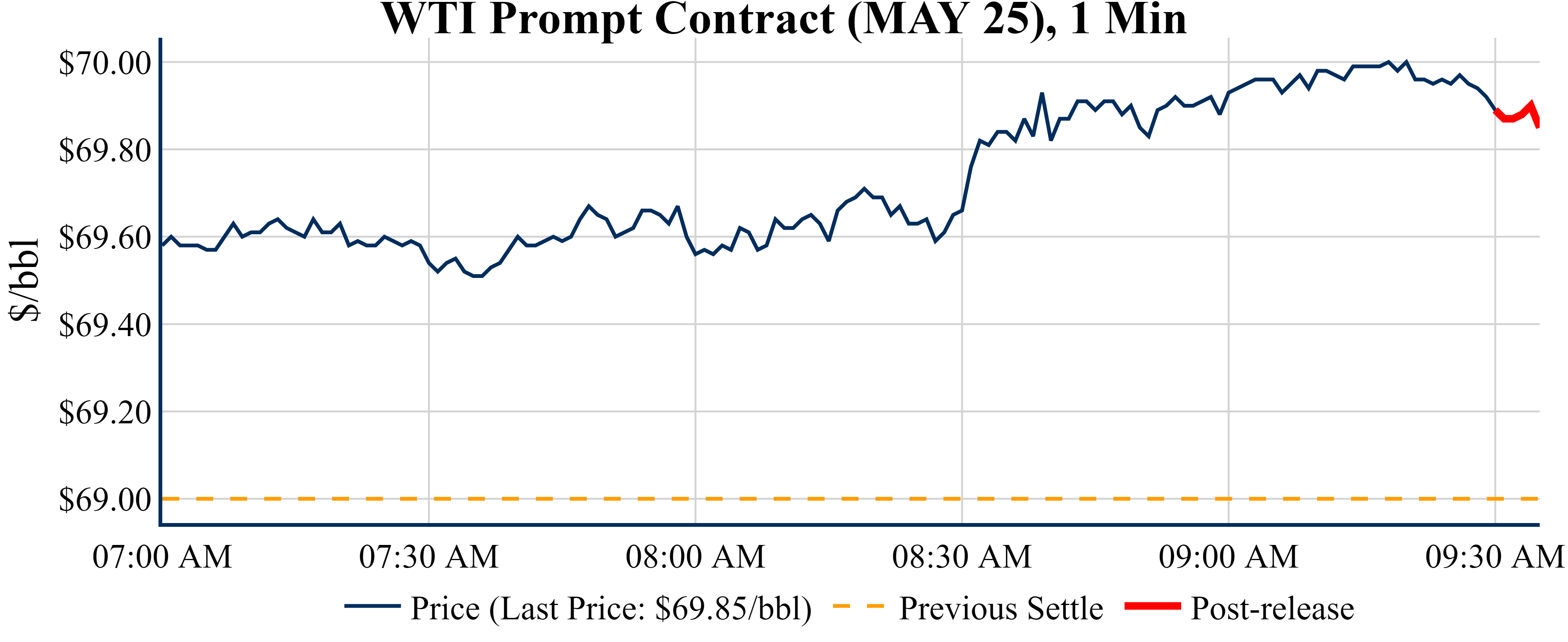 Prices were down in the five minutes following the announcement, to $69.85 from $69.89 just before 09:30 AM.