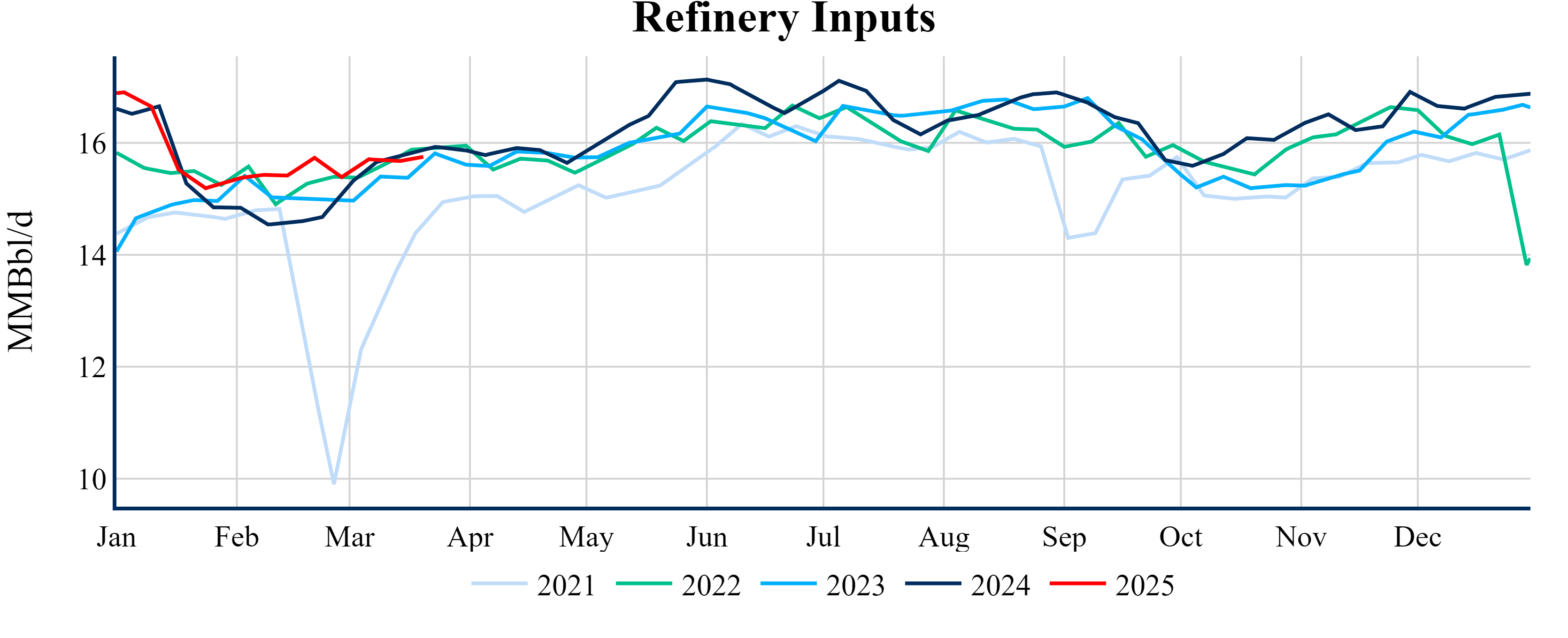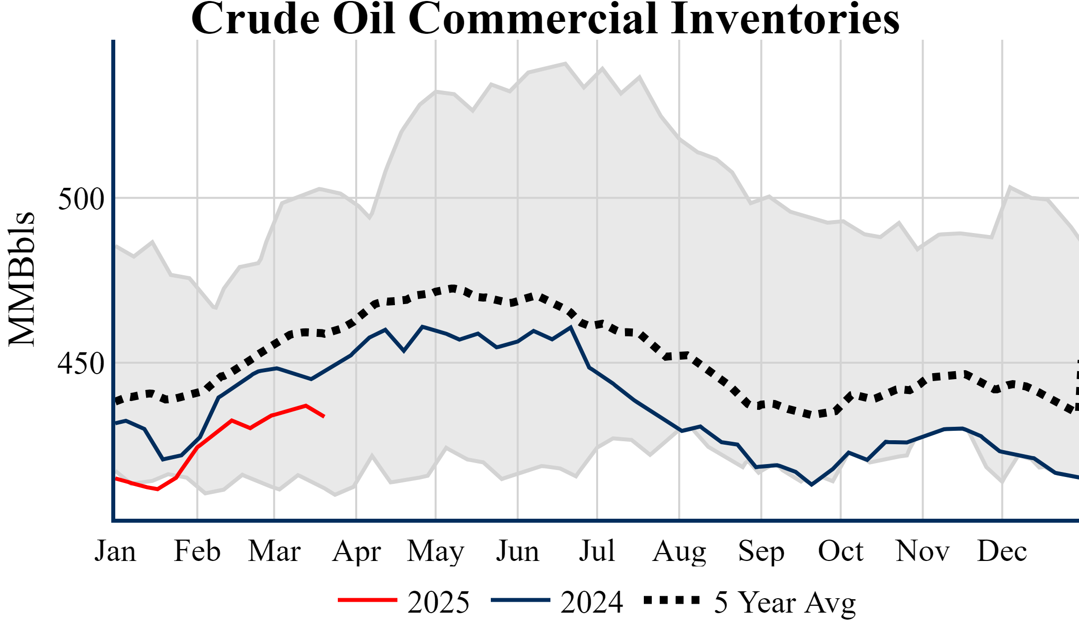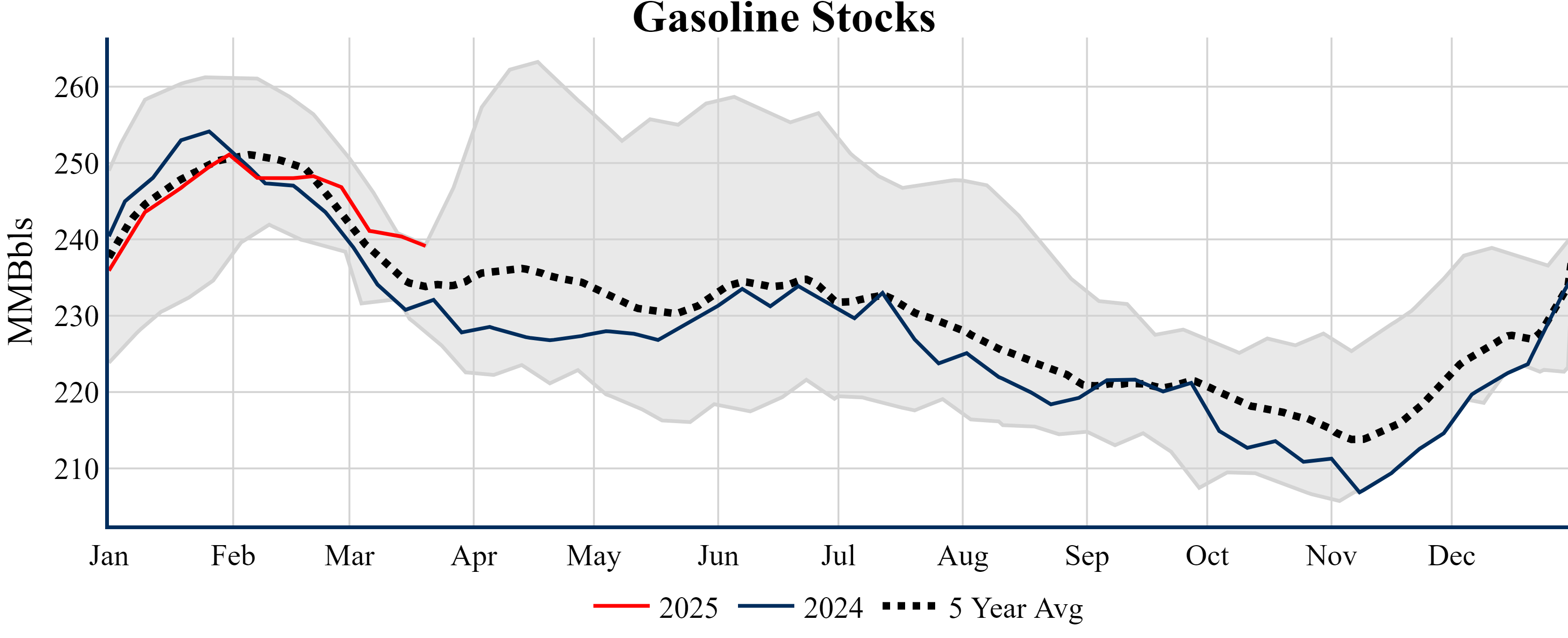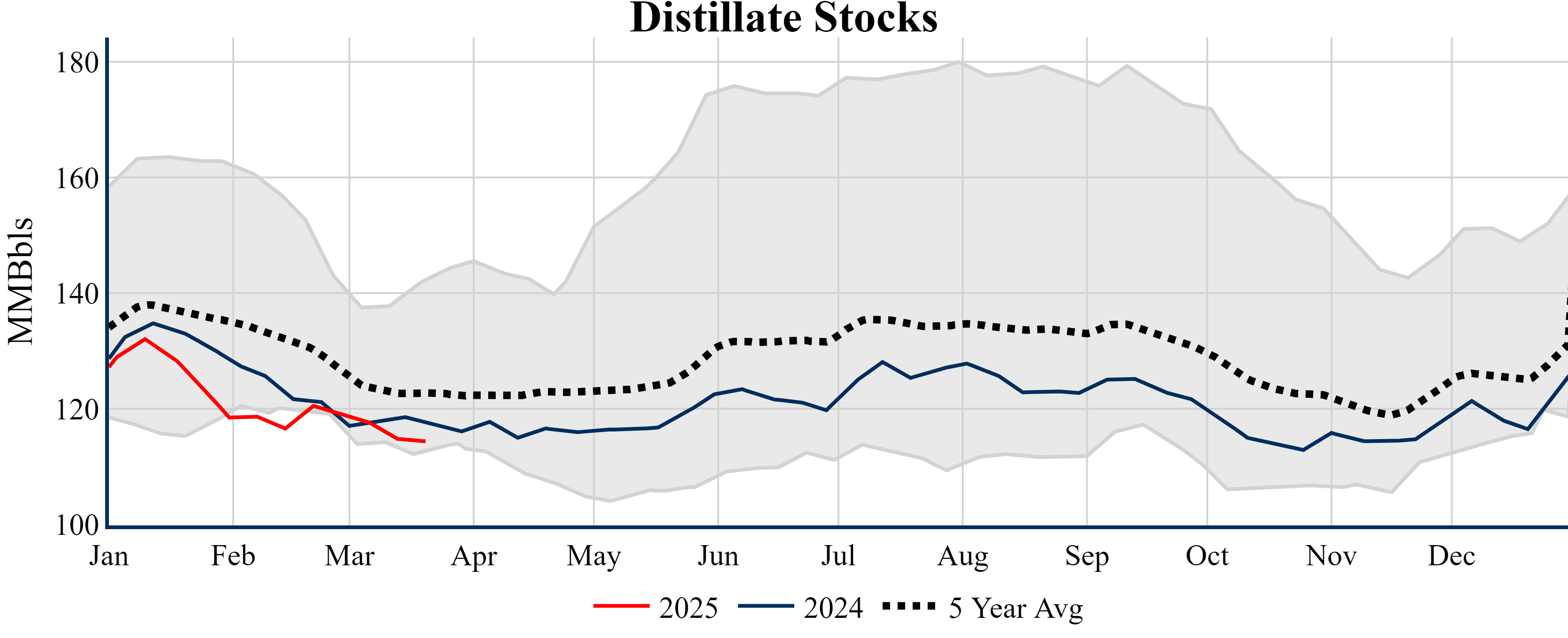 Inventories for the U.S. are now at a deficit of 13.70 MMBbls (-3.1%) to last year, and a deficit of 25.20 MMBbls (-5.5%) to the five-year average.