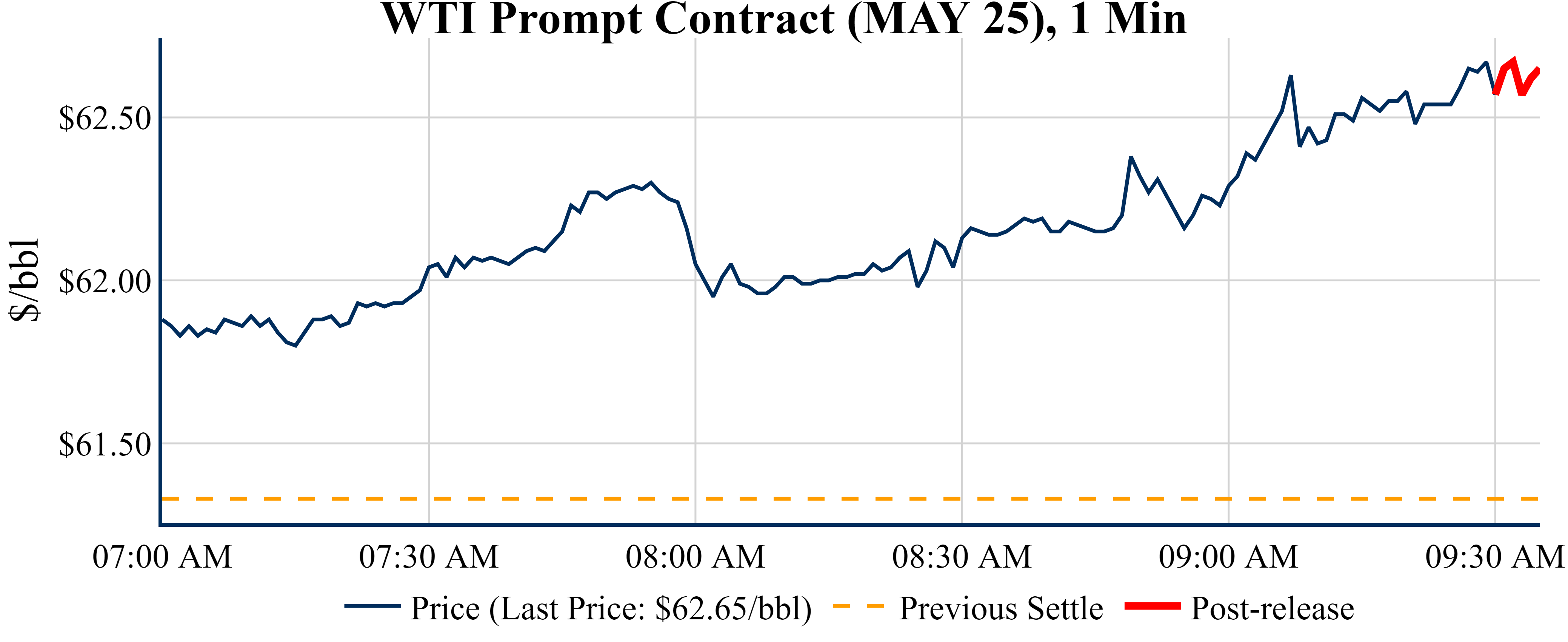 Prices were up in the five minutes following the announcement, to $62.65 from $62.57 just before 09:30 AM.