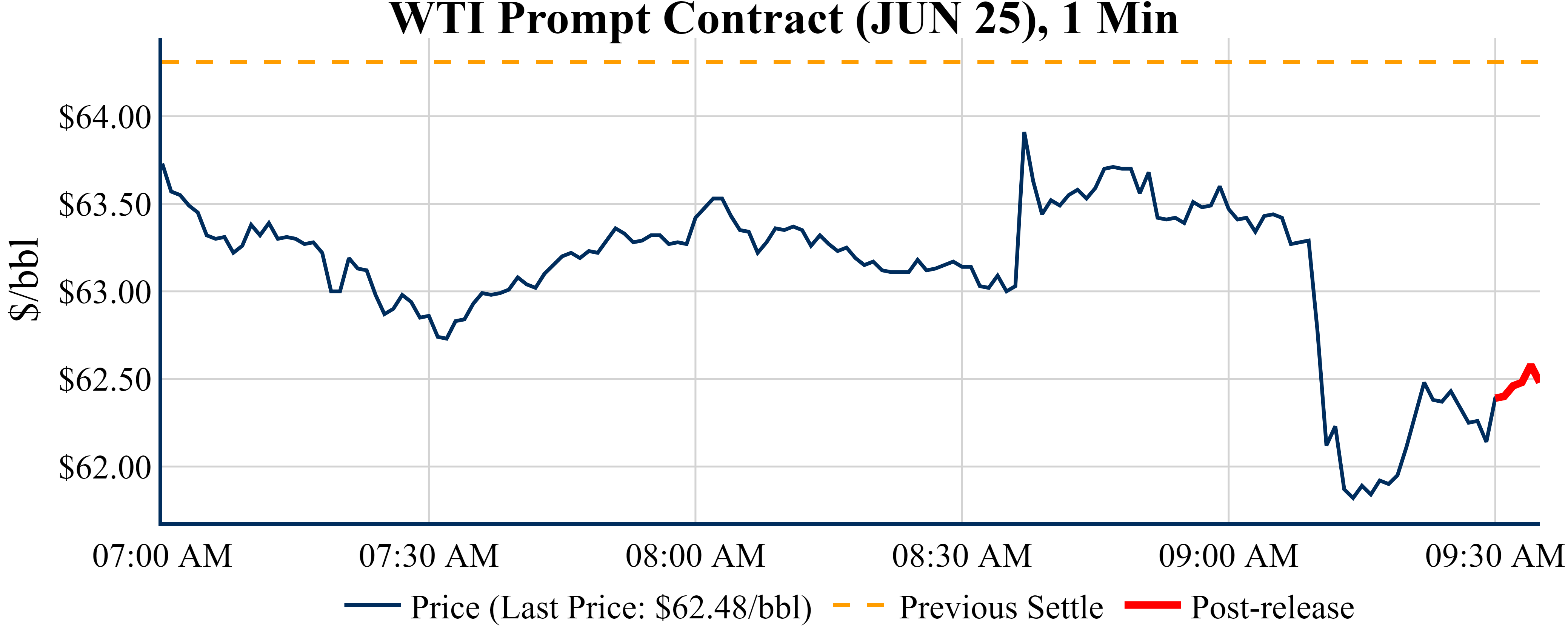Prices were up in the five minutes following the announcement, to $62.48 from $62.39 just before 09:30 AM.