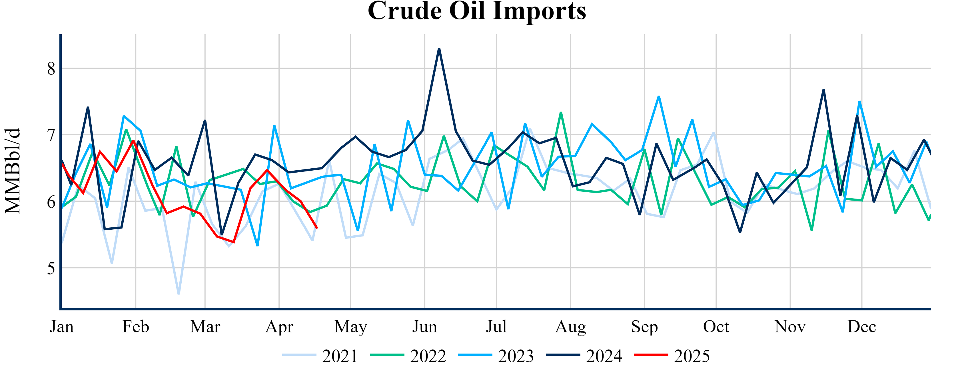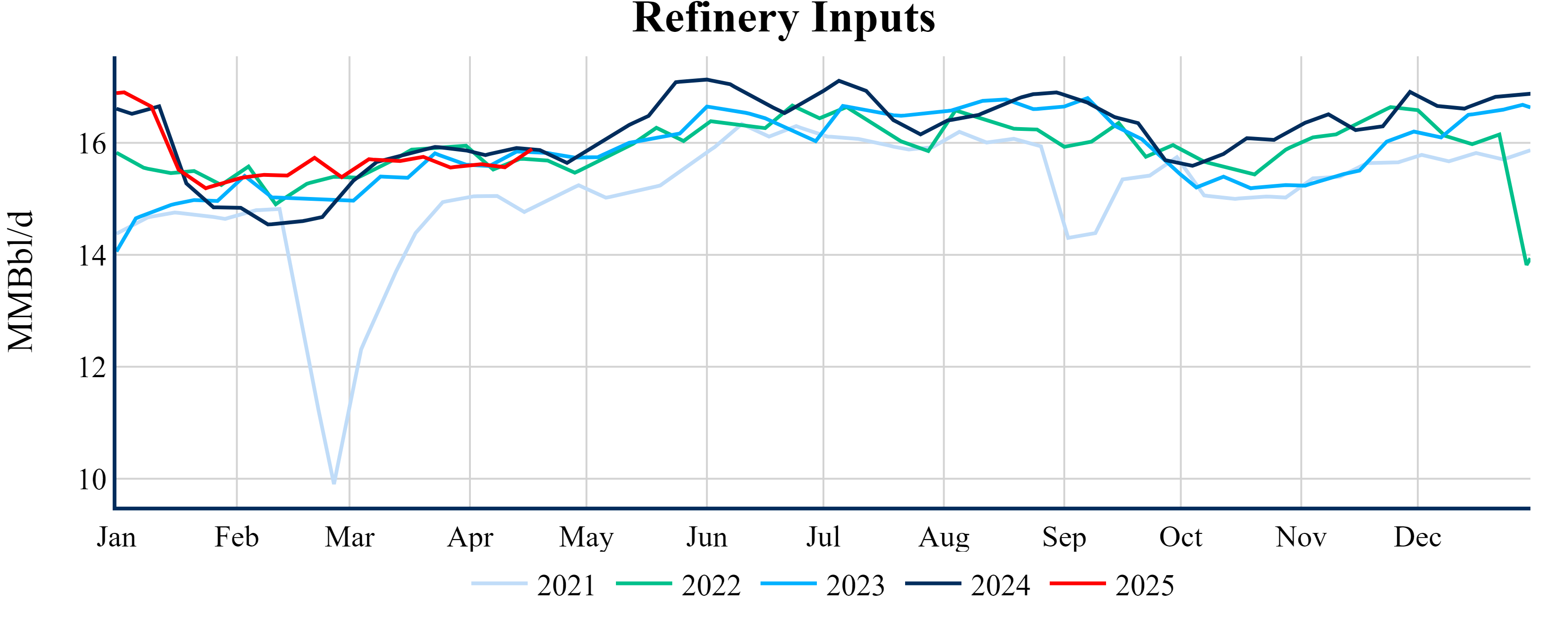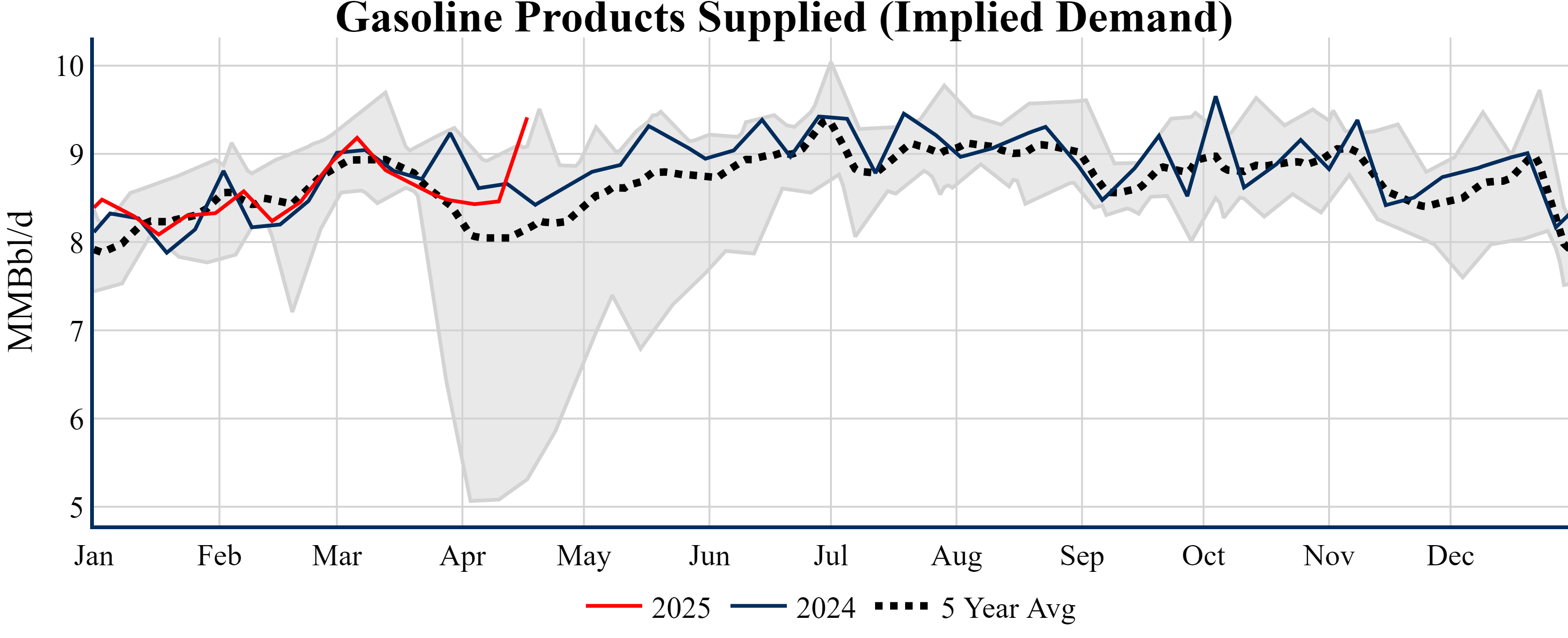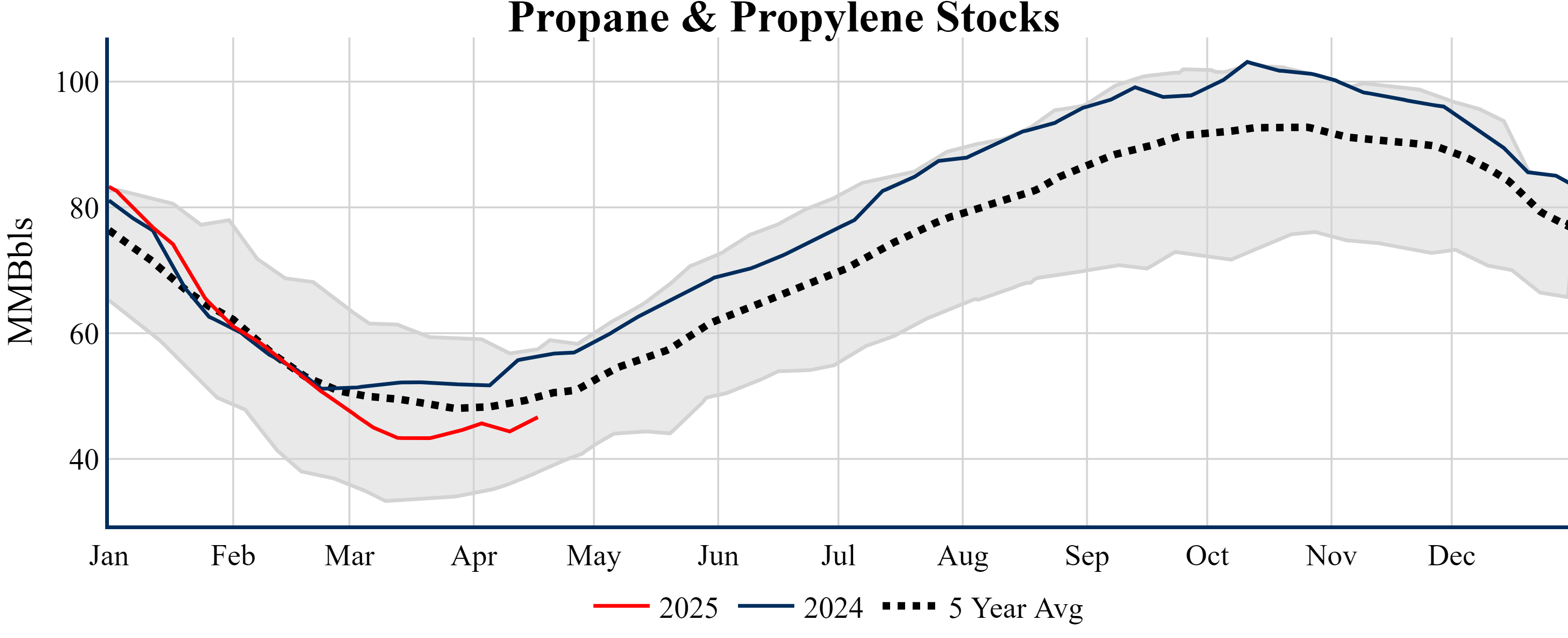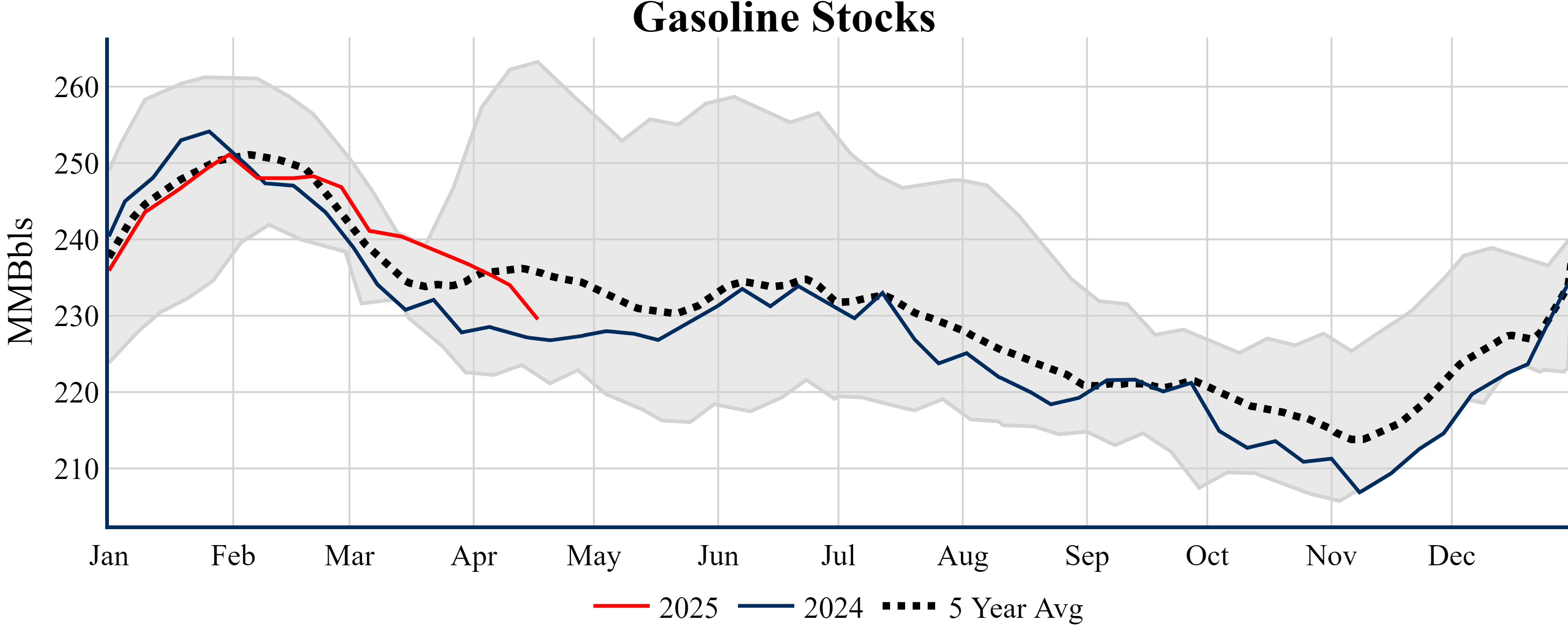 Inventories for the U.S. are now at a deficit of 12.30 MMBbls (-2.7%) to last year, and a deficit of 25.70 MMBbls (-5.5%) to the five-year average.