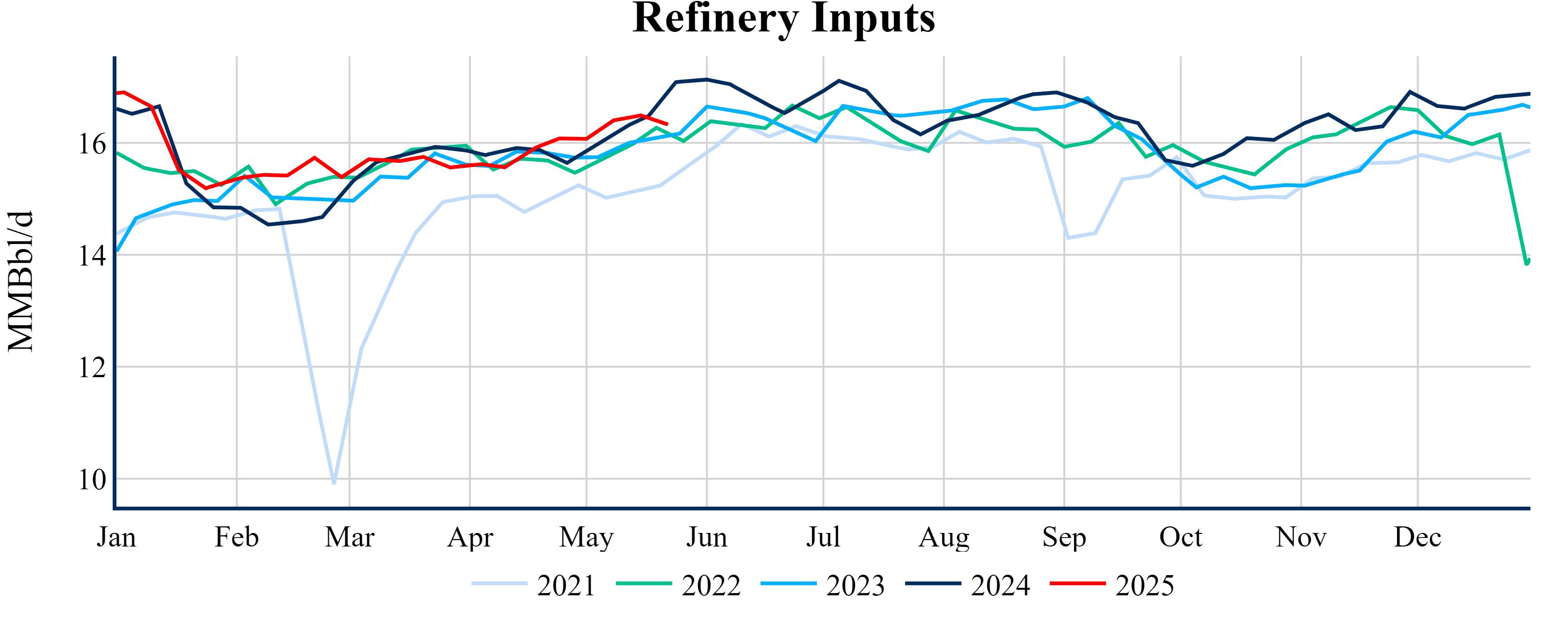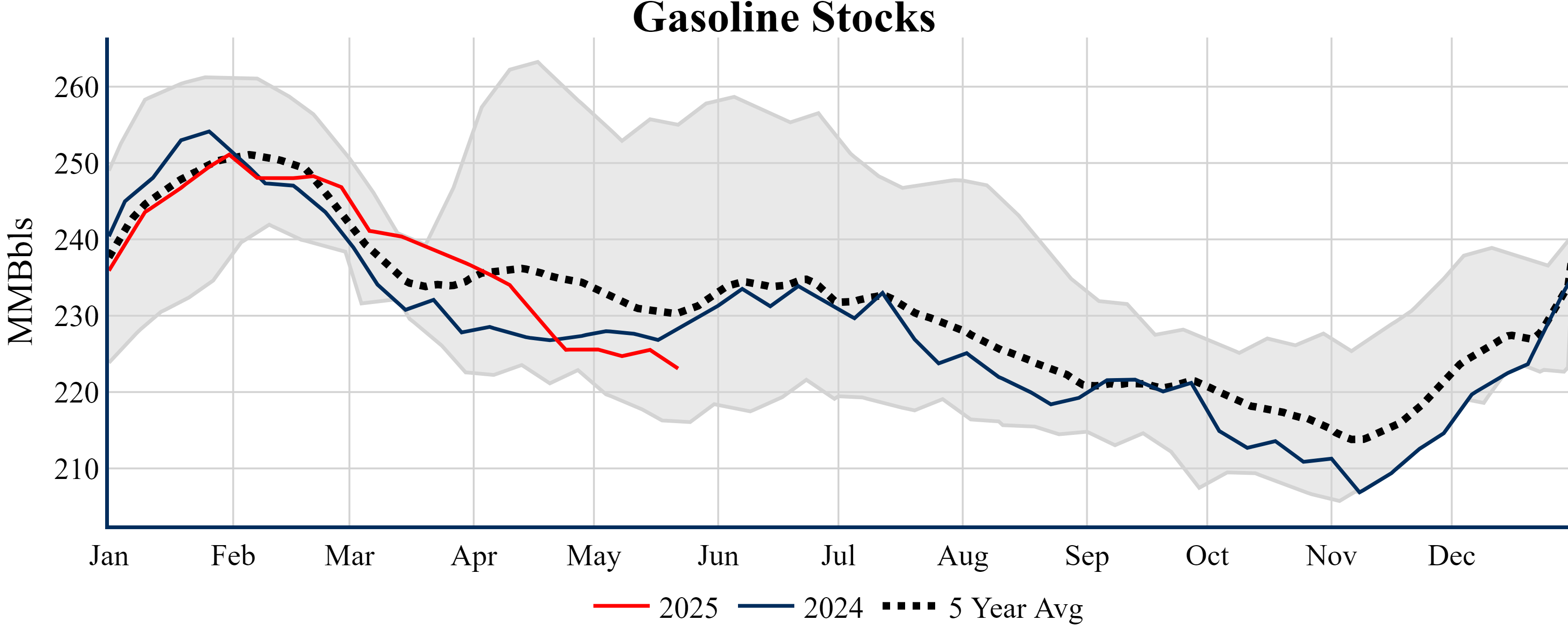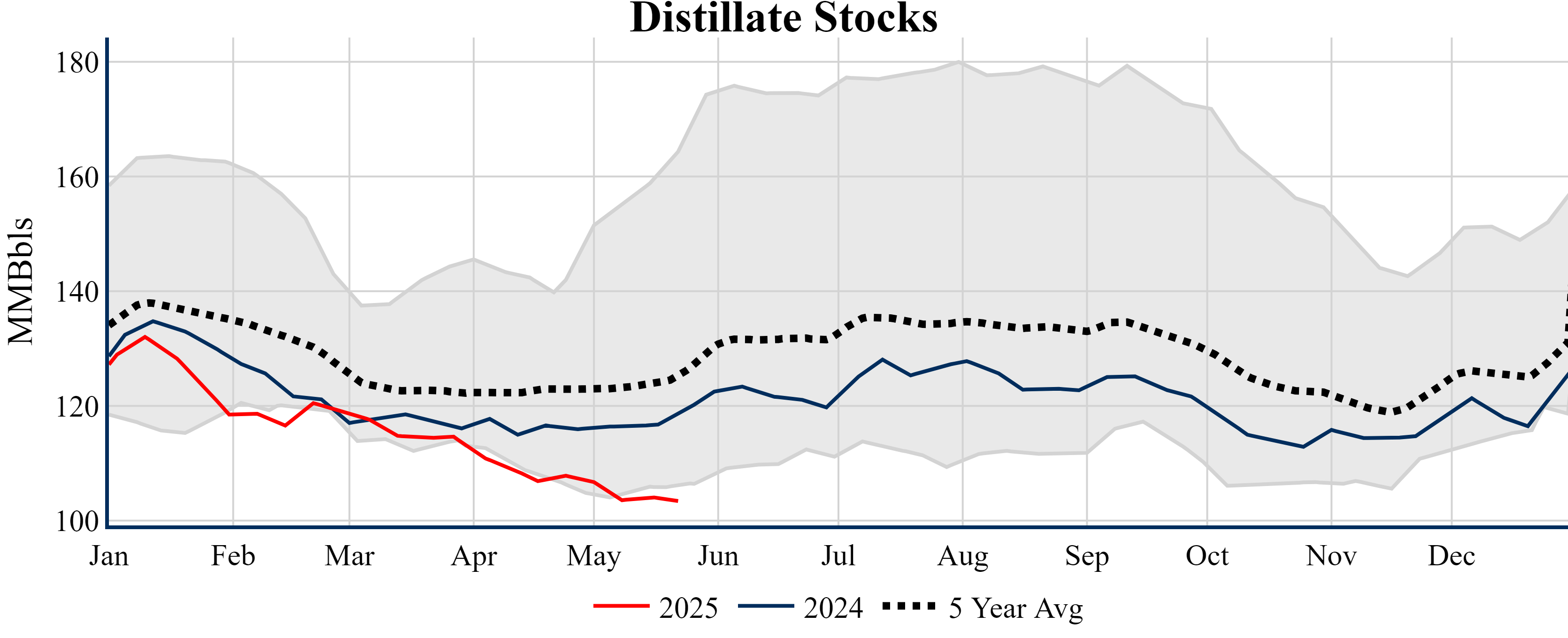 Inventories for the U.S. are now at a deficit of 15.50 MMBbls (-3.4%) to last year, and a deficit of 29.30 MMBbls (-6.2%) to the five-year average.