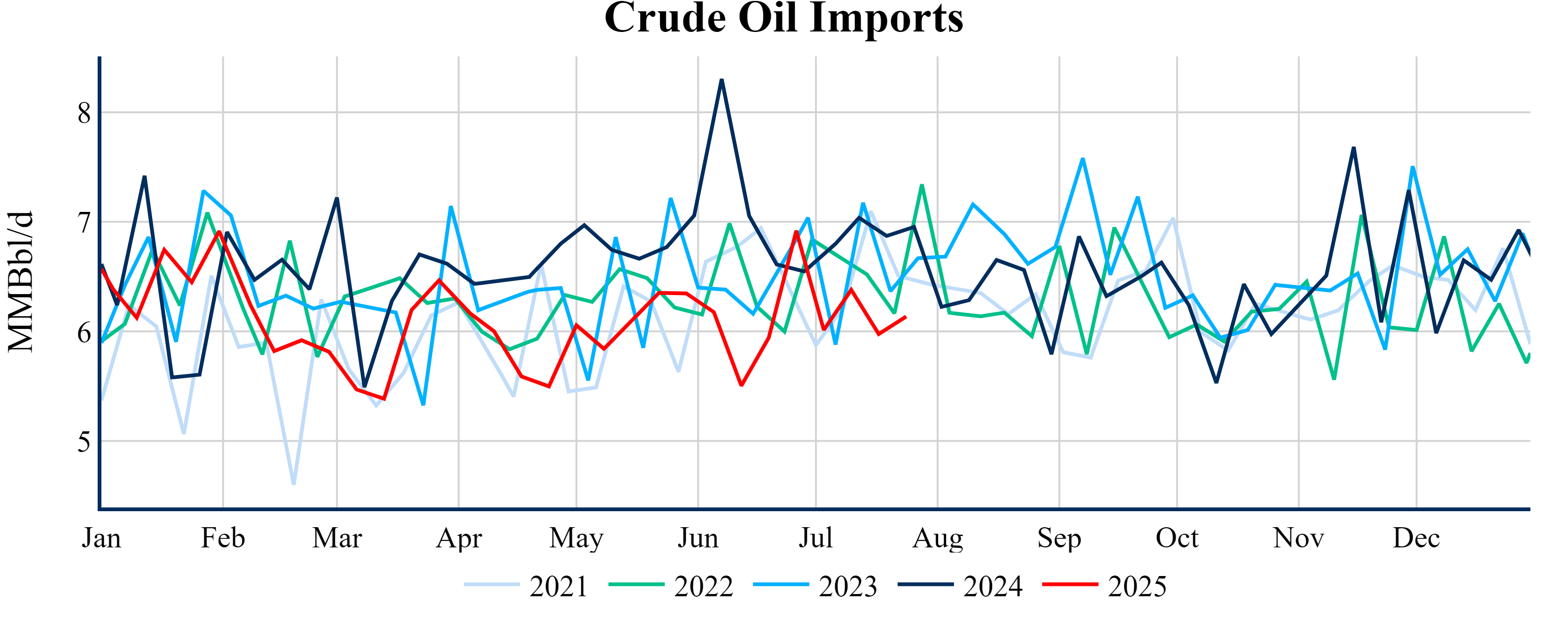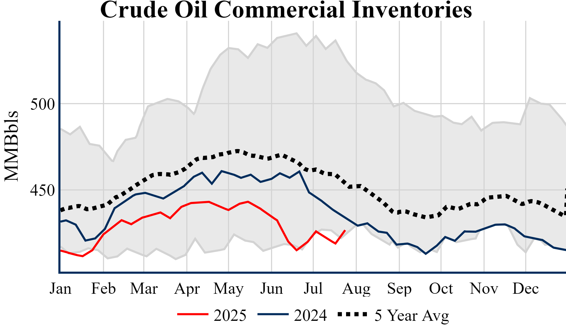 Inventories for the U.S. are now at a deficit of 7.30 MMBbls (-1.7%) to last year, and a deficit of 26.90 MMBbls (-5.9%) to the five-year average.