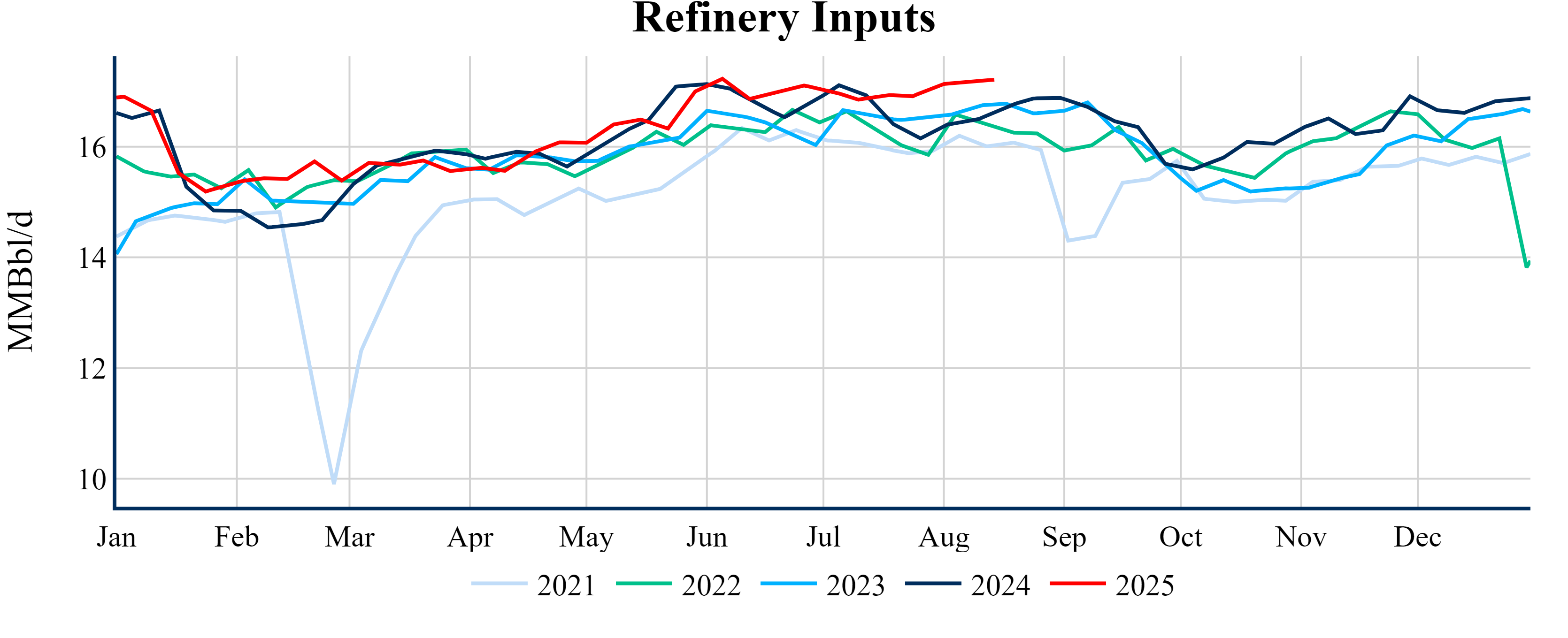 Inventories for the U.S. are now at a deficit of 6.70 MMBbls (-1.6%) to last year, and a deficit of 26.20 MMBbls (-5.9%) to the five-year average.