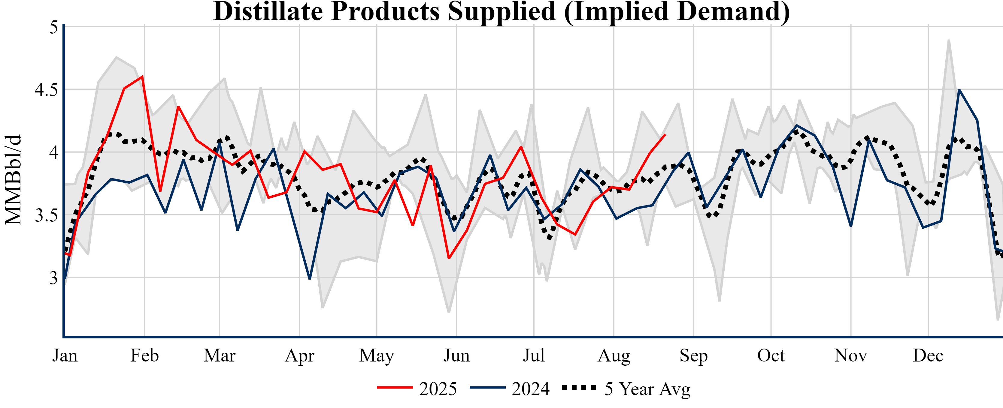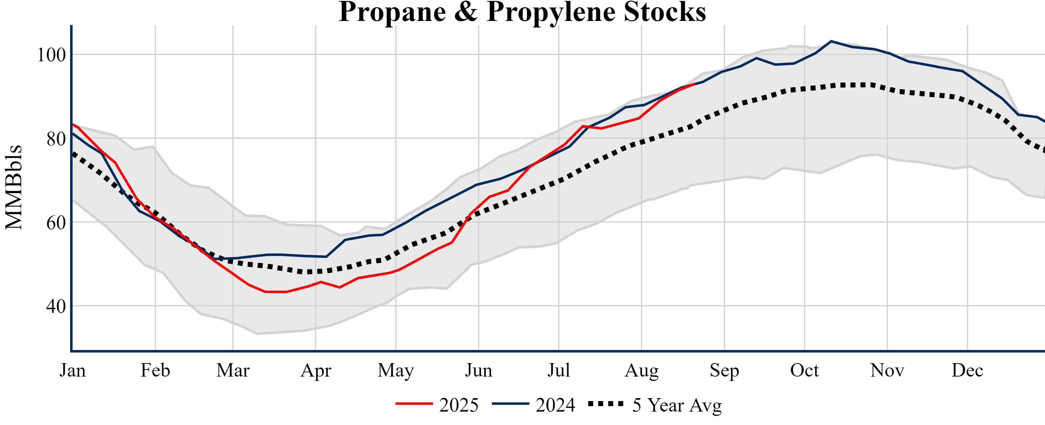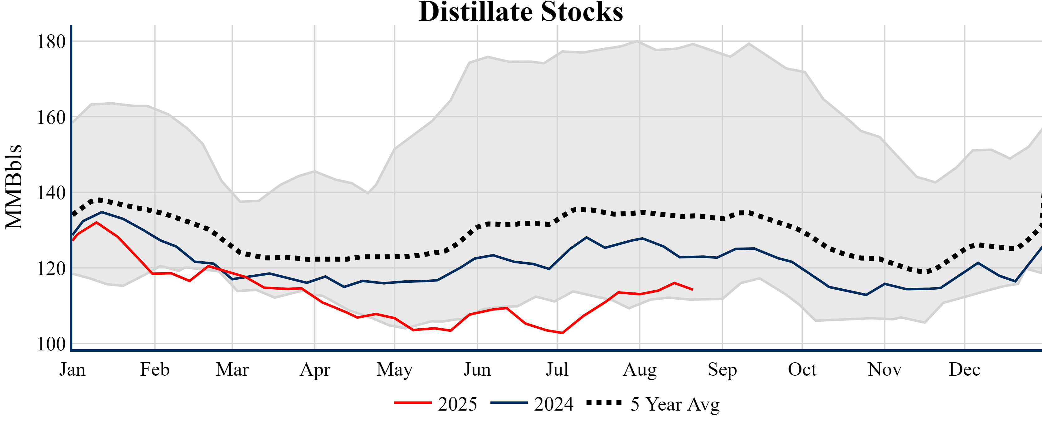 Inventories for the U.S. are now at a deficit of 7.10 MMBbls (-1.7%) to last year, and a deficit of 24.00 MMBbls (-5.4%) to the five-year average.