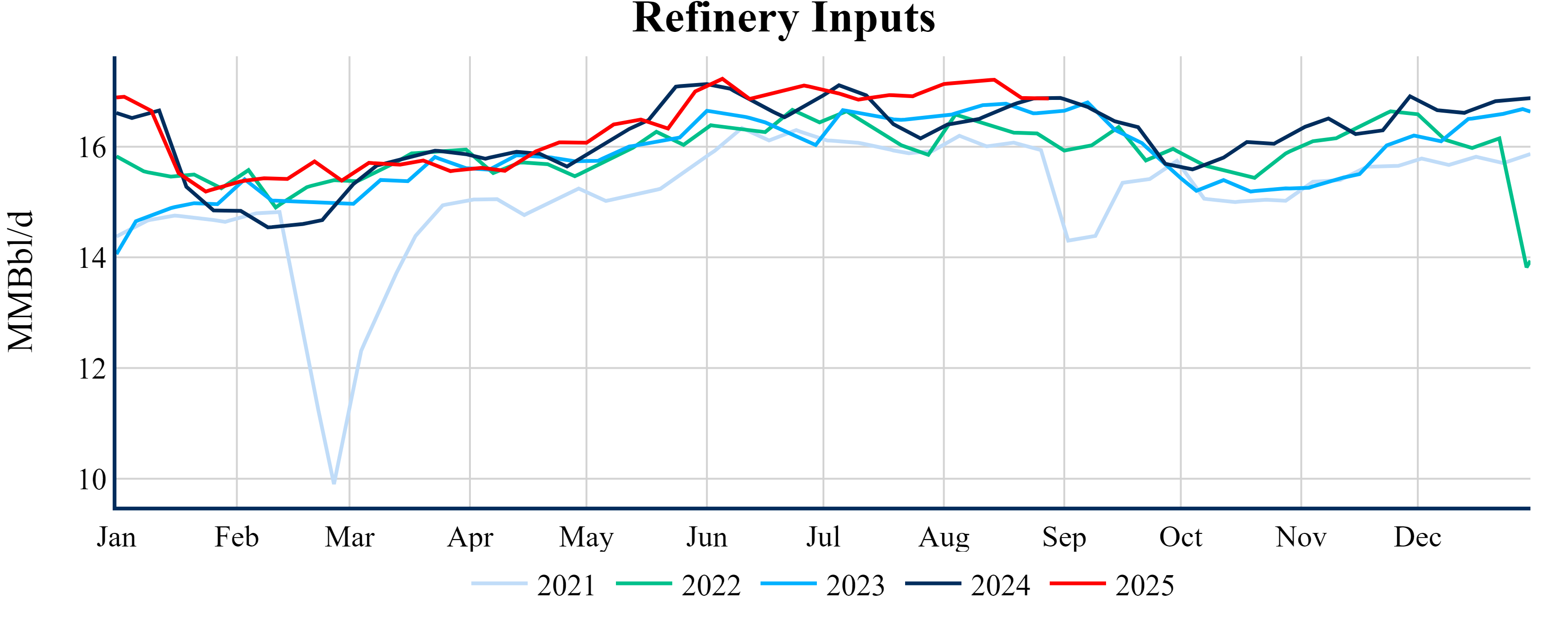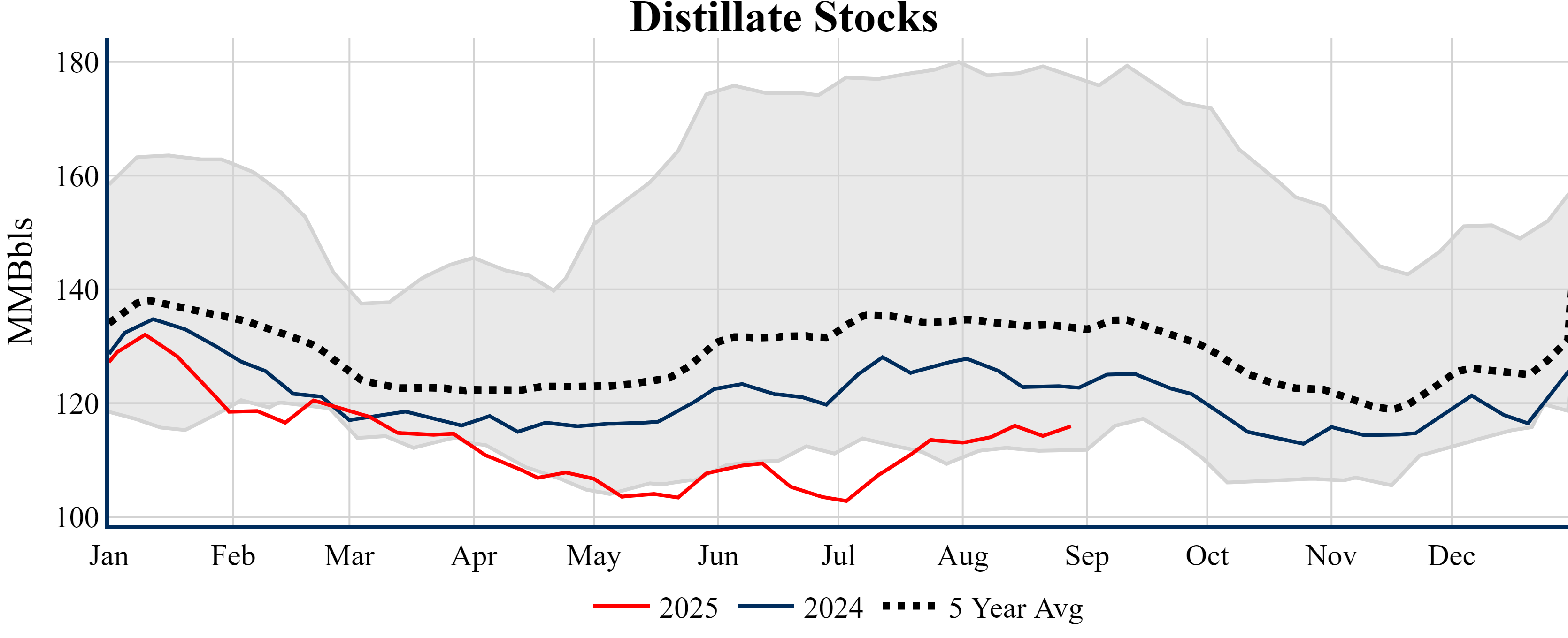 Inventories for the U.S. are now at a deficit of 0.40 MMBbls (-0.1%) to last year, and a deficit of 16.30 MMBbls (-3.7%) to the five-year average.