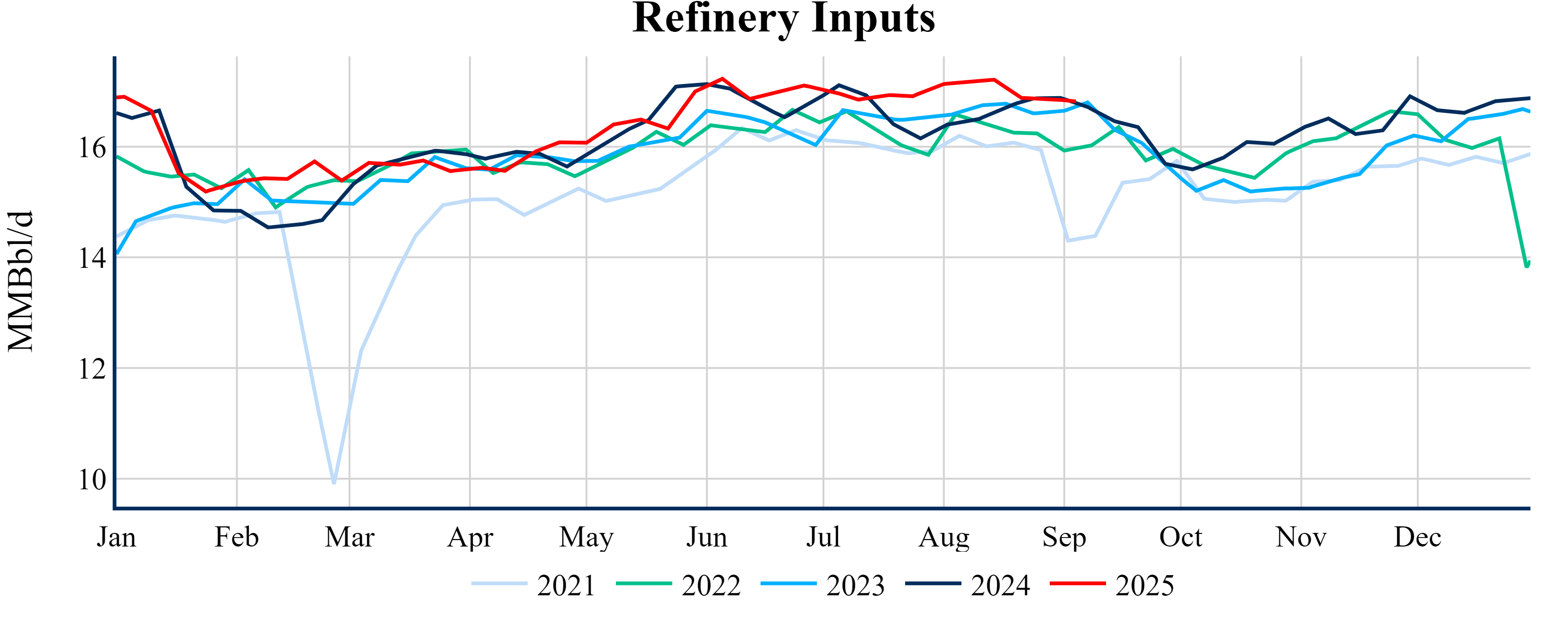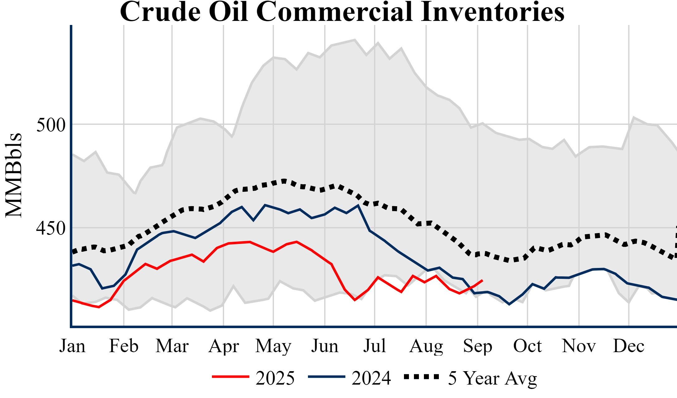 Inventories for the U.S. are now at a deficit of 5.70 MMBbls (-1.4%) to last year, and a deficit of 13.10 MMBbls (-3.0%) to the five-year average.