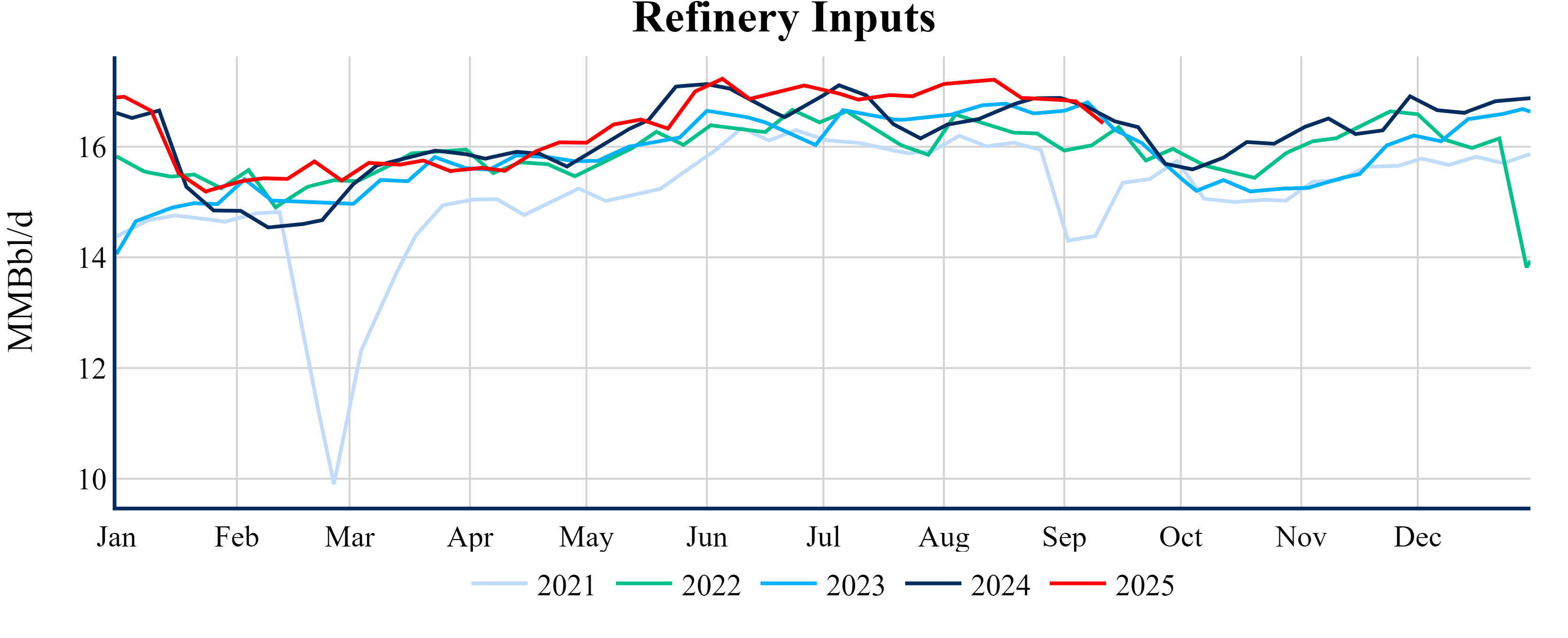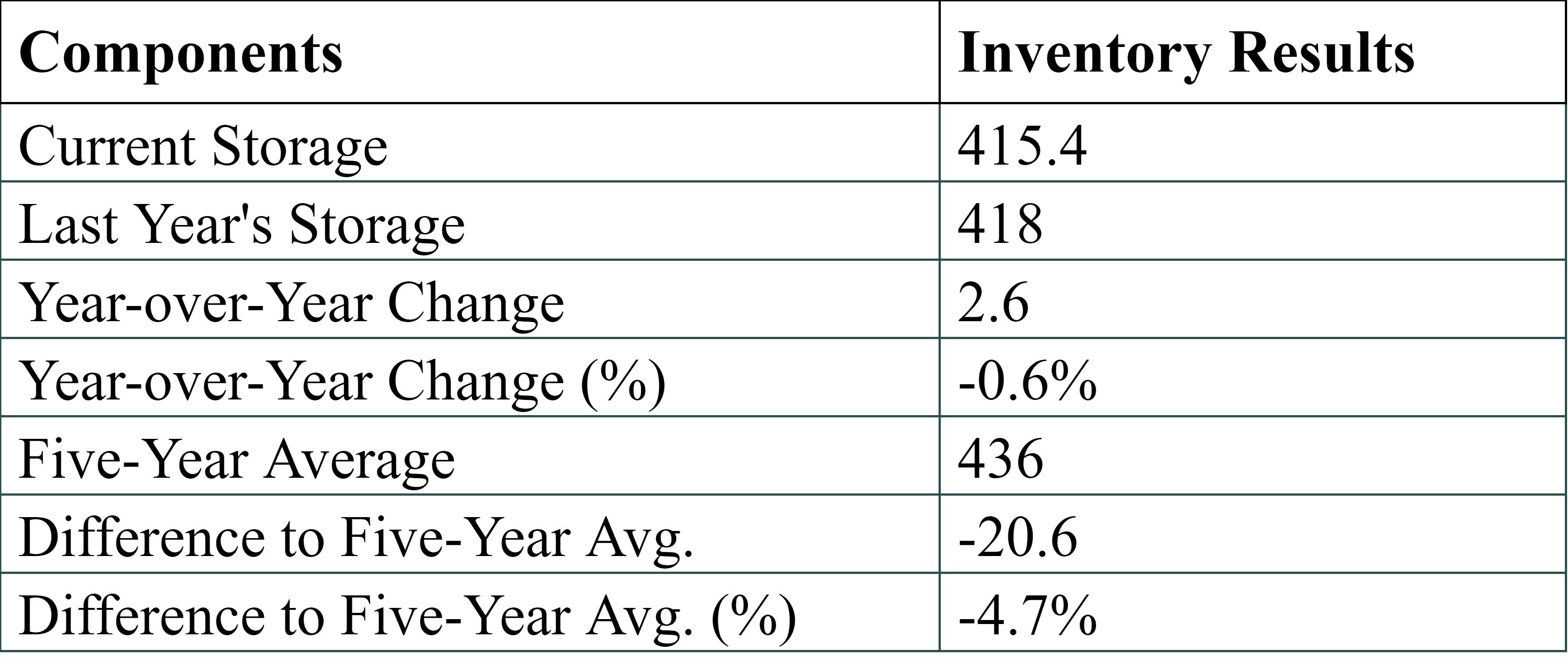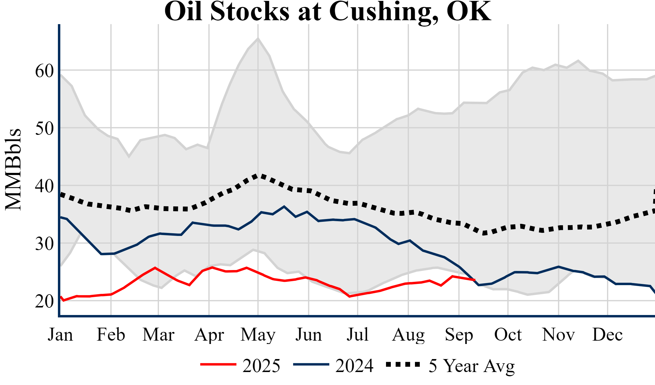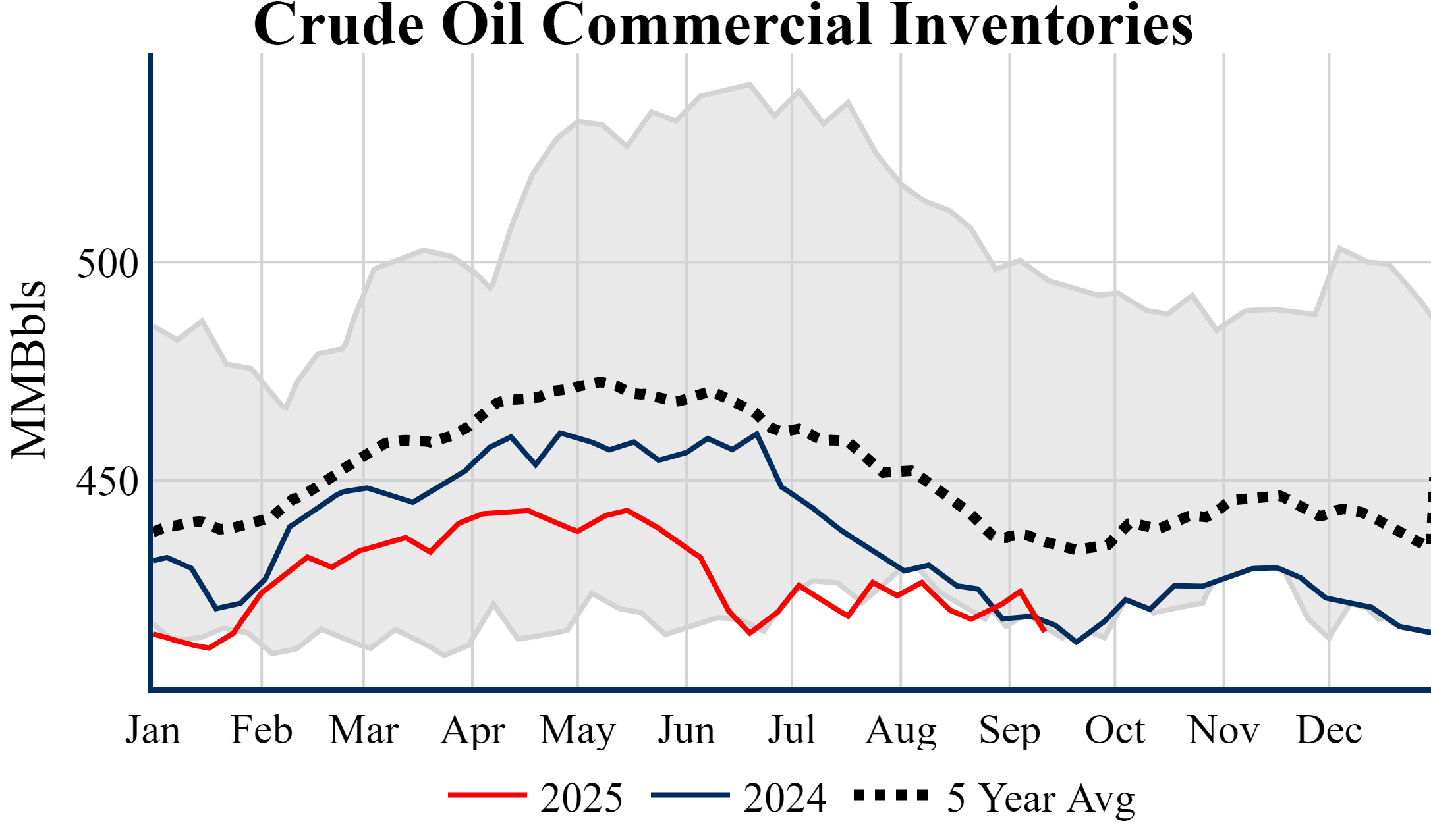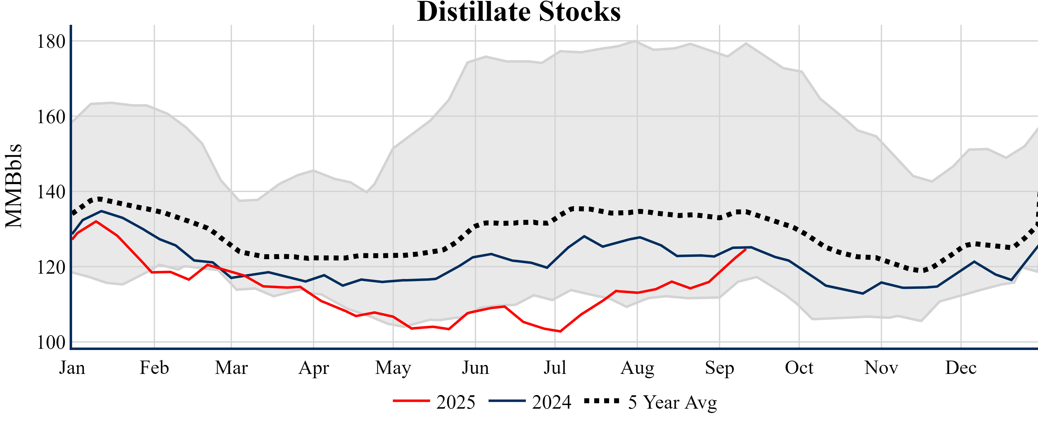 Inventories for the U.S. are now at a deficit of 2.60 MMBbls (-0.6%) to last year, and a deficit of 20.60 MMBbls (-4.7%) to the five-year average.