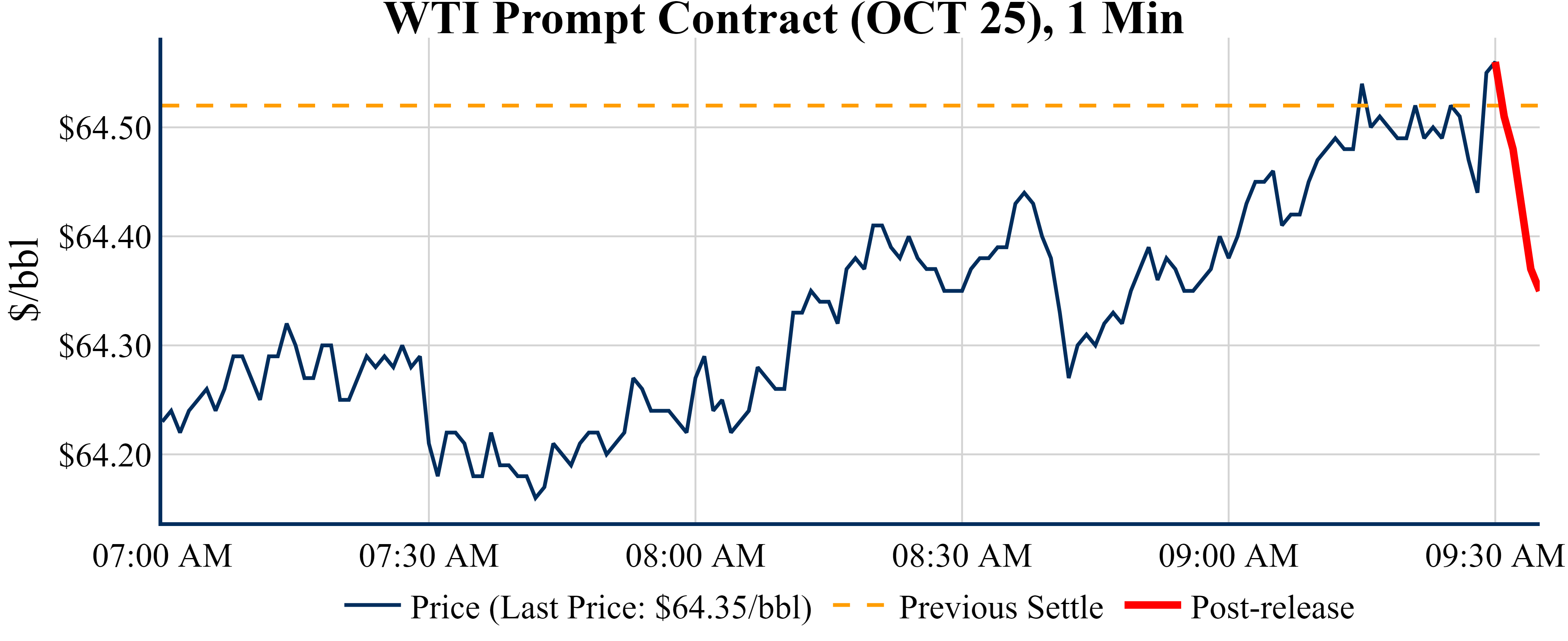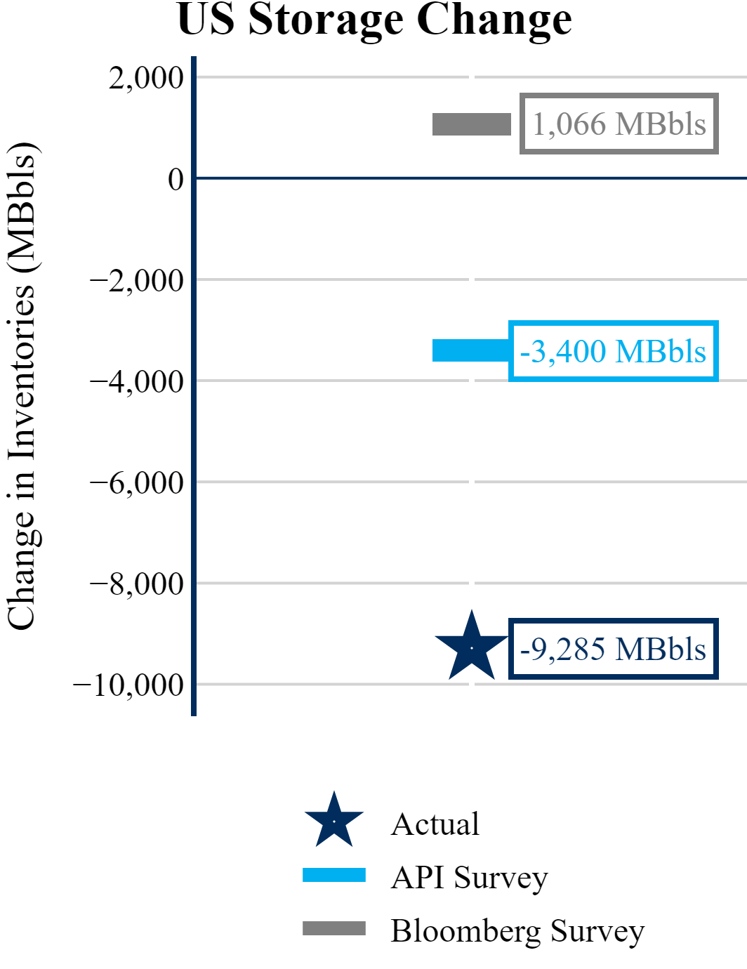 The EIA reported a draw of -9,285 MBbls in U.S. crude-oil inventories. In contrast, the market expected a build of +1,066 MBbls as reported by Bloomberg.