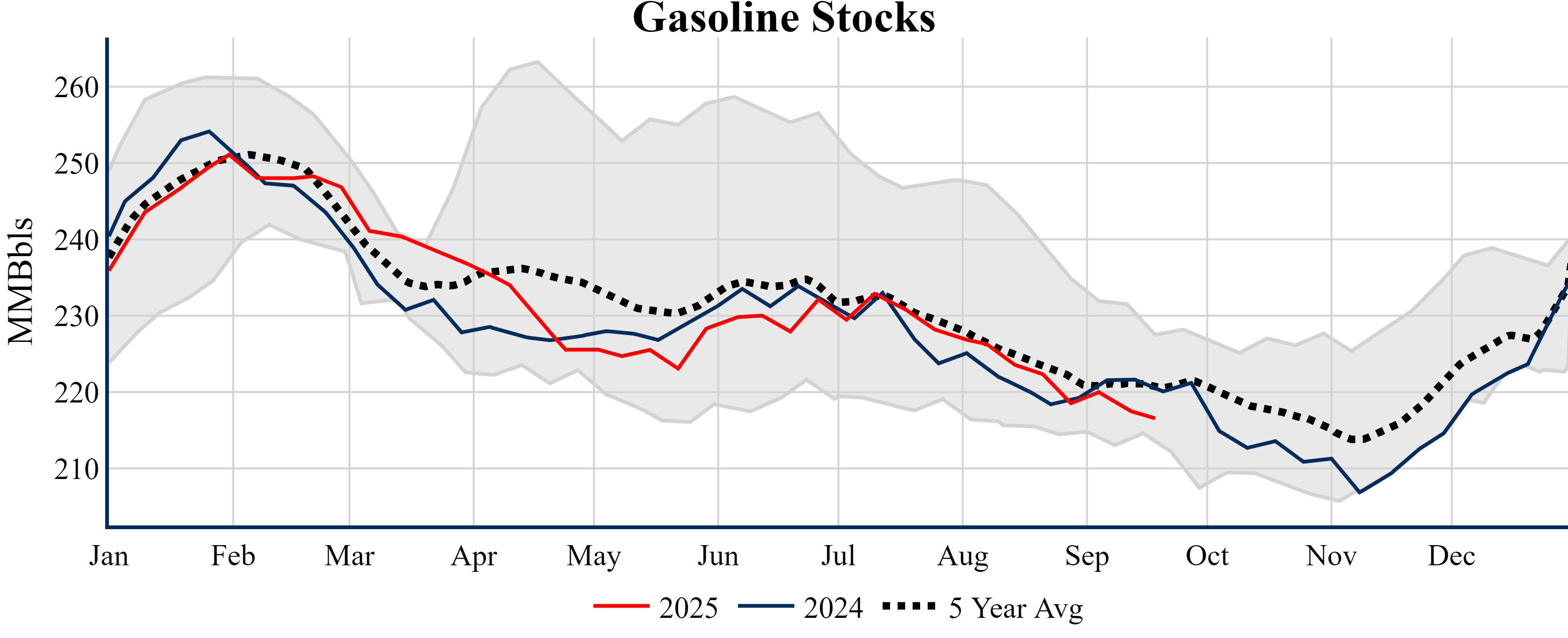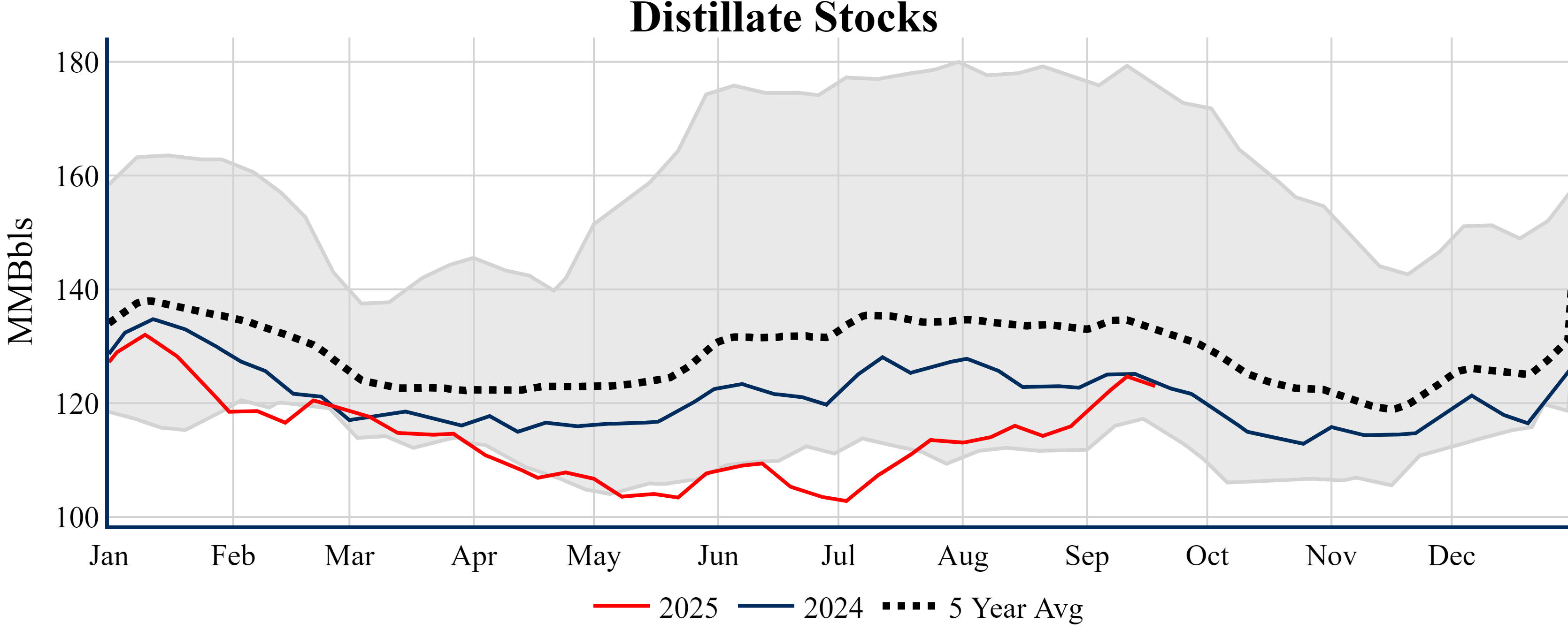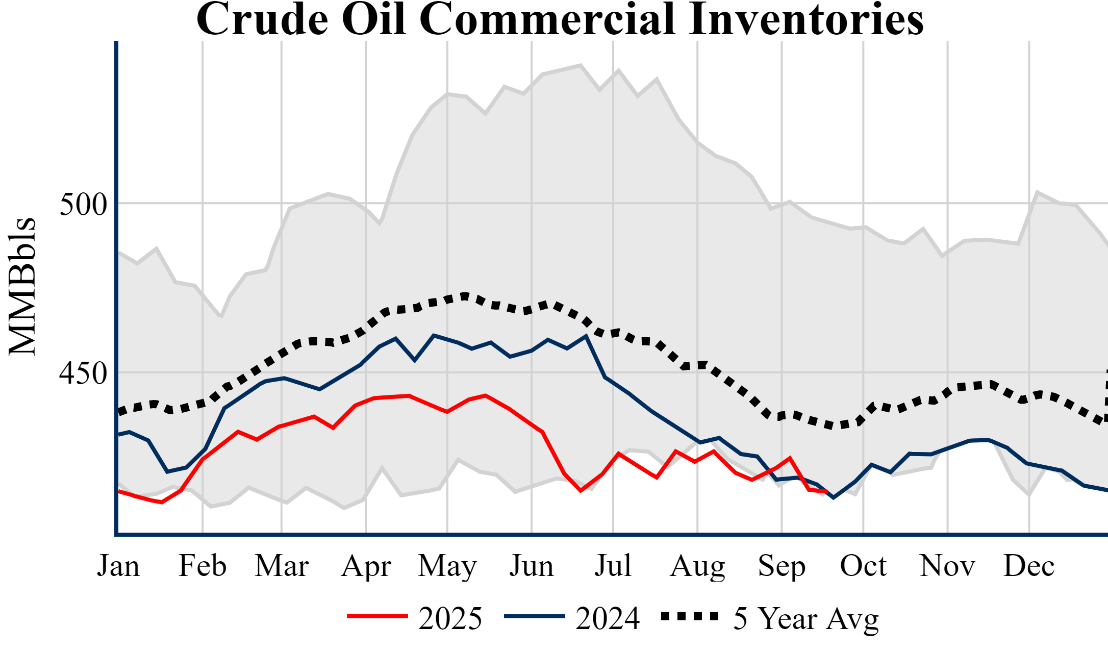 Inventories for the U.S. are now at a deficit of 0.40 MMBbls (-0.1%) to last year, and a deficit of 19.60 MMBbls (-4.5%) to the five-year average.