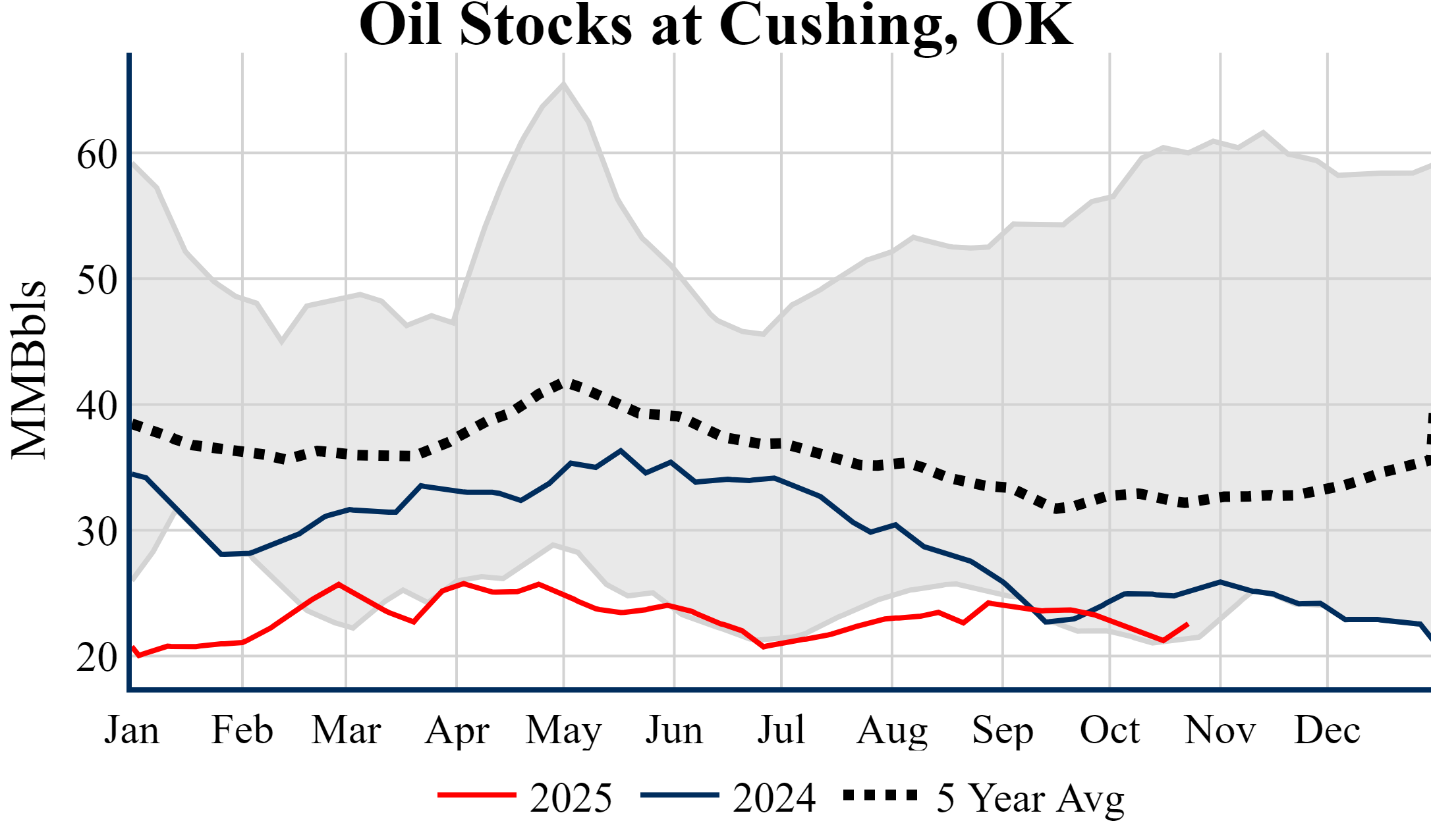Inventories for the U.S. are now at a deficit of 9.70 MMBbls (-2.3%) to last year, and a deficit of 26.00 MMBbls (-5.9%) to the five-year average.