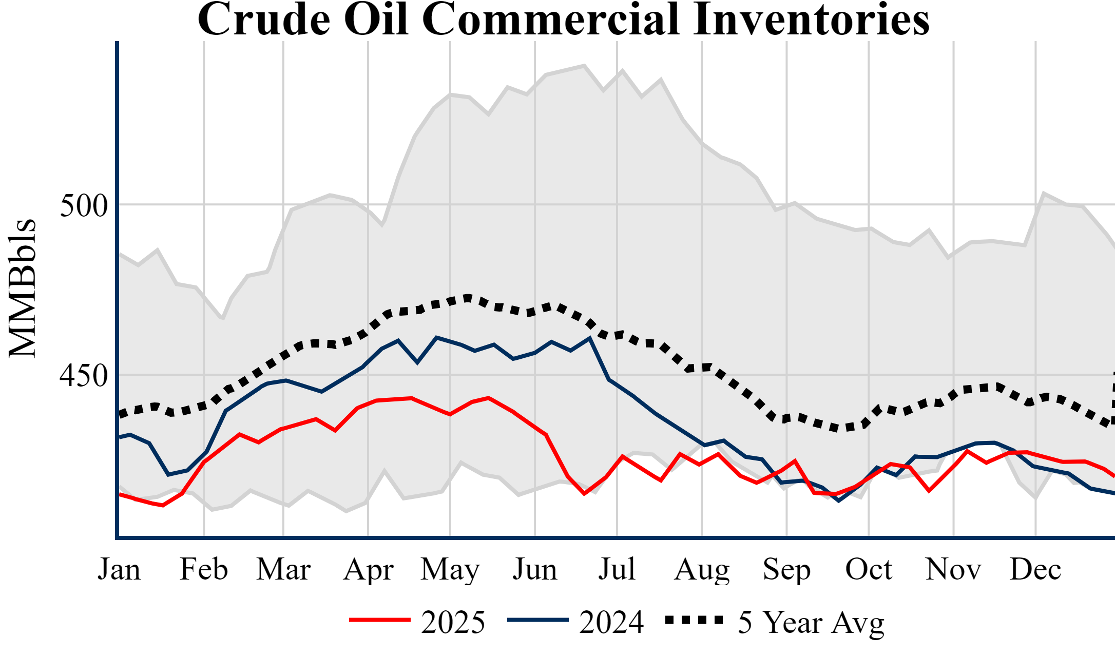 The EIA reported a draw of -2,295 MBbls in U.S. crude-oil inventories. In contrast, the market expected a build of +771 MBbls as reported by Bloomberg. Inventories for the U.S. are now at a deficit of 6.80 MMBbls (-1.6%) to last year, and a deficit of 24.40 MMBbls (-5.6%) to the five-year average.